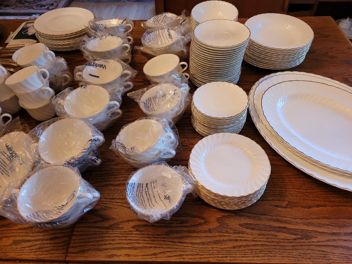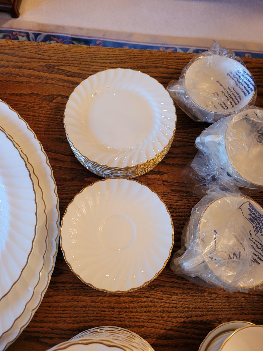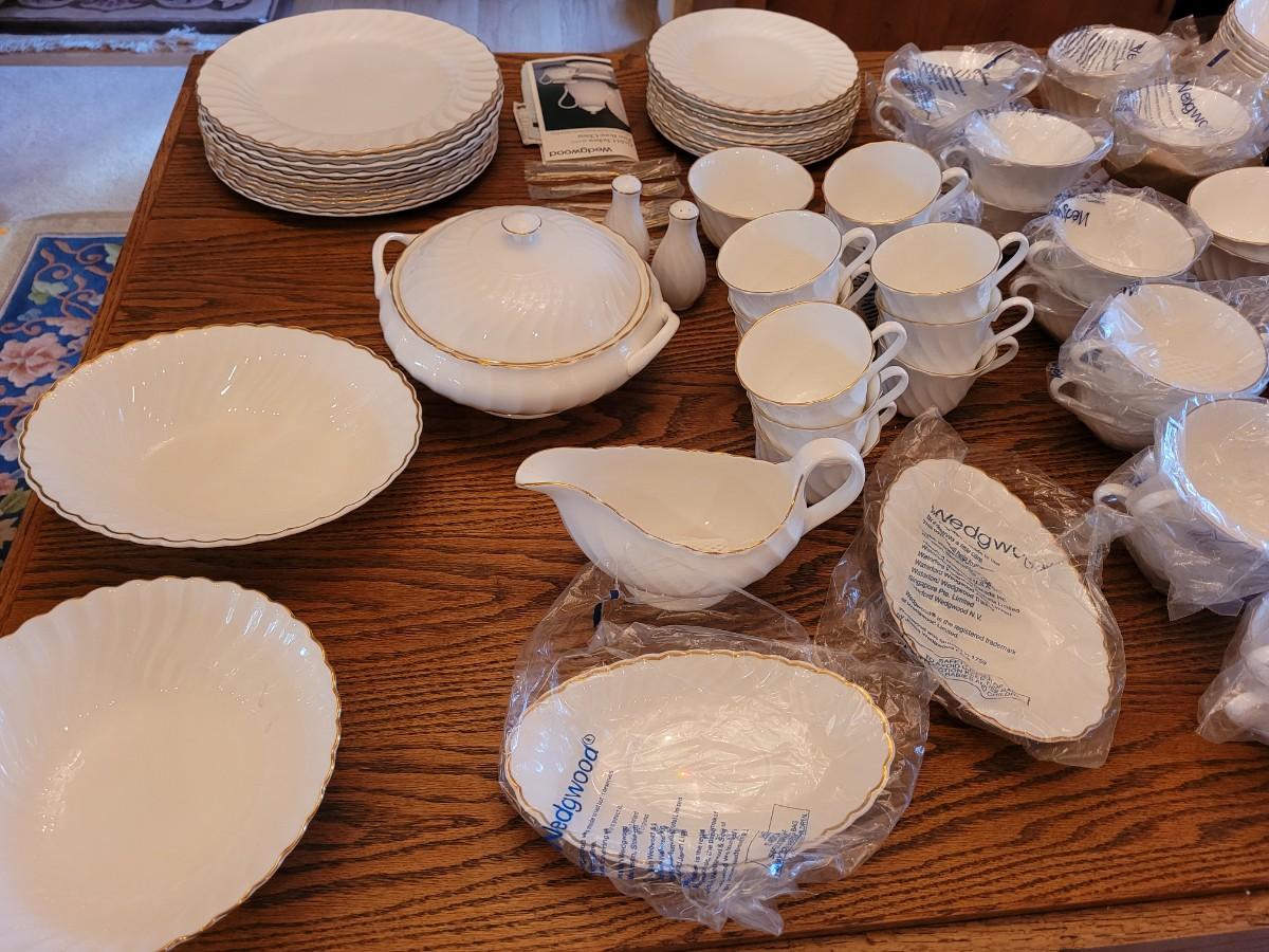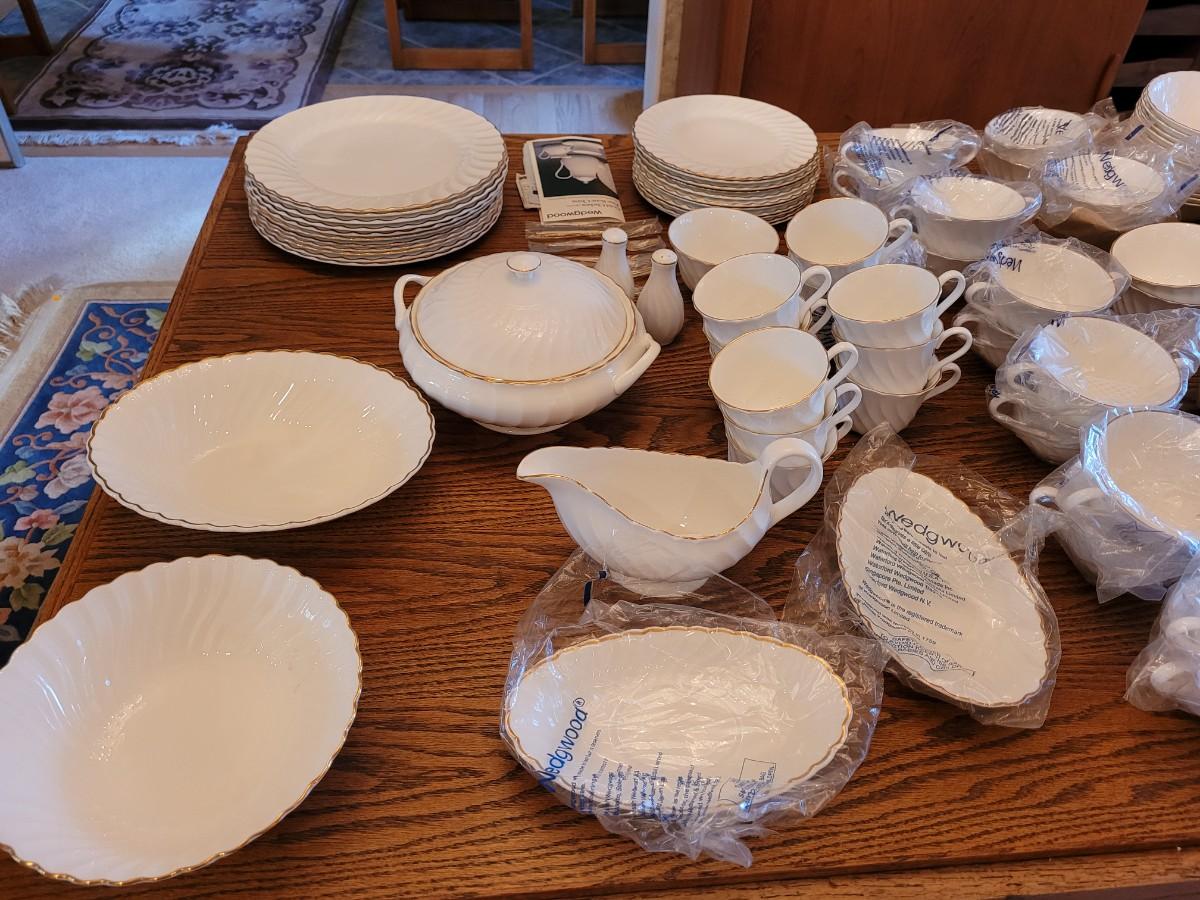 Lot 85: Wedgwood Gold Chelsea (many pieces still New in original packaging)