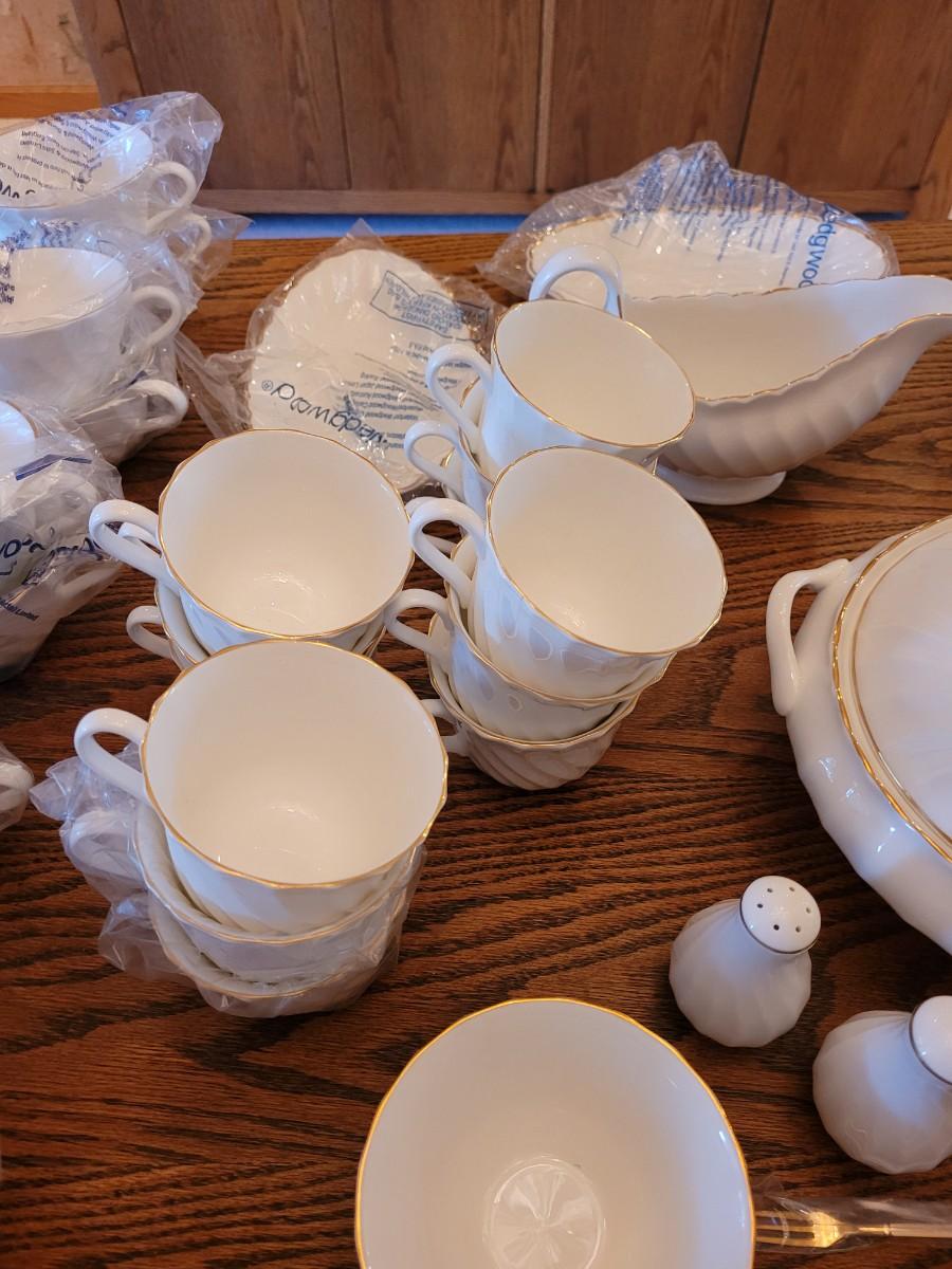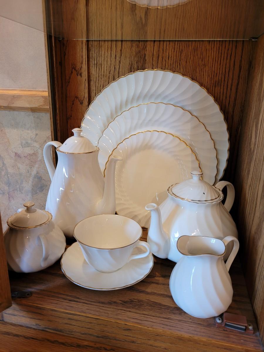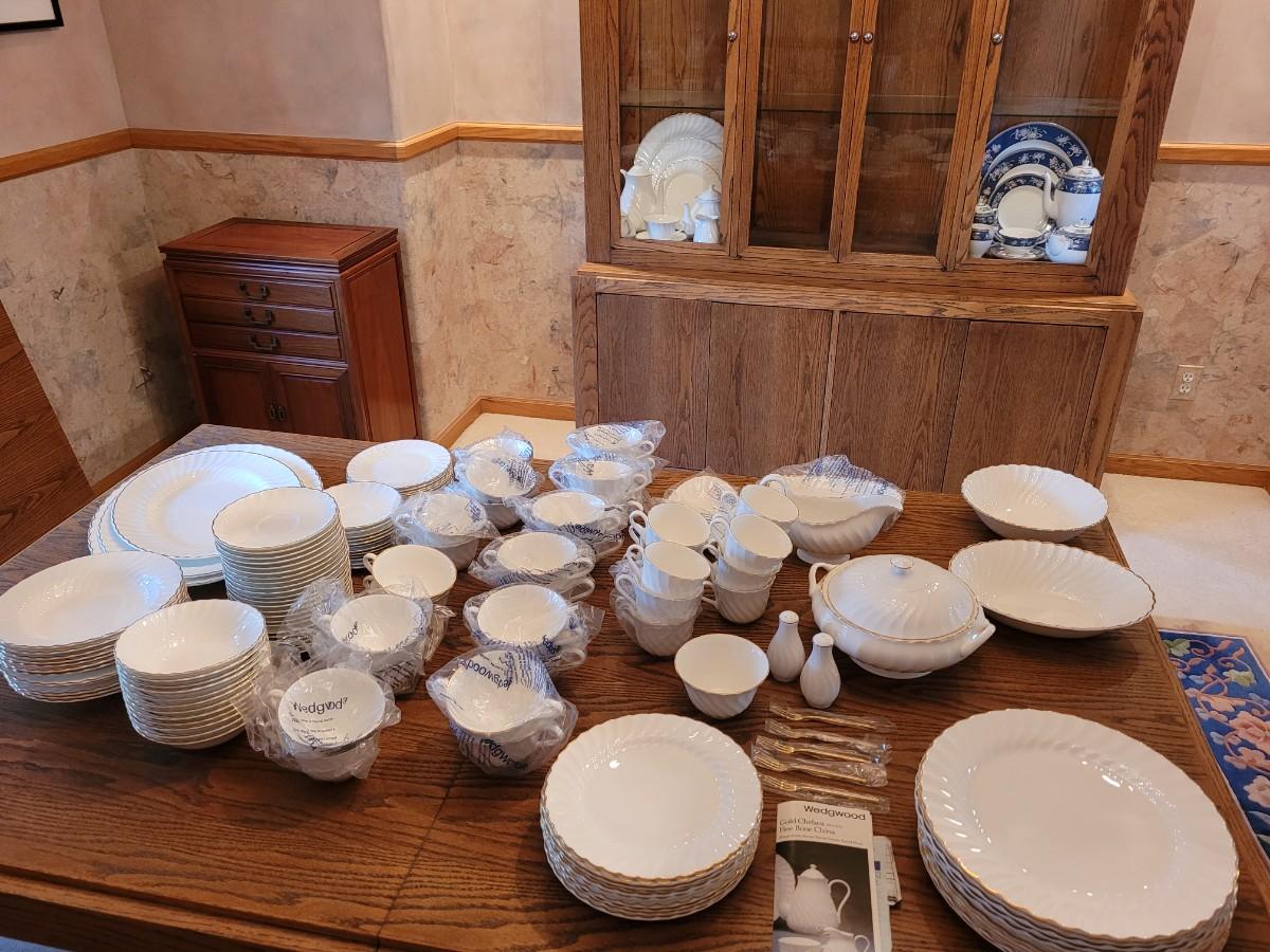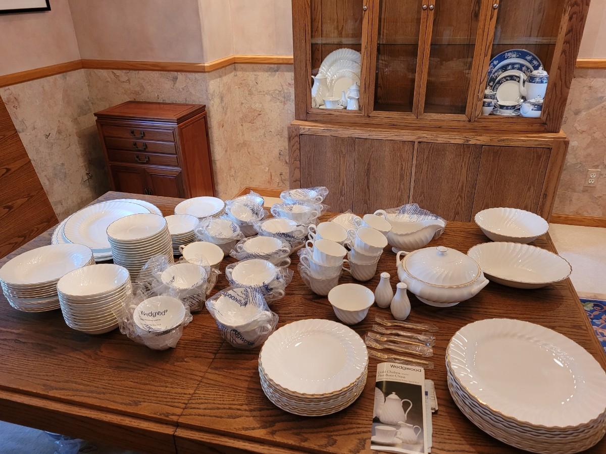 Lot 85: Wedgwood Gold Chelsea (many pieces still New in original packaging)