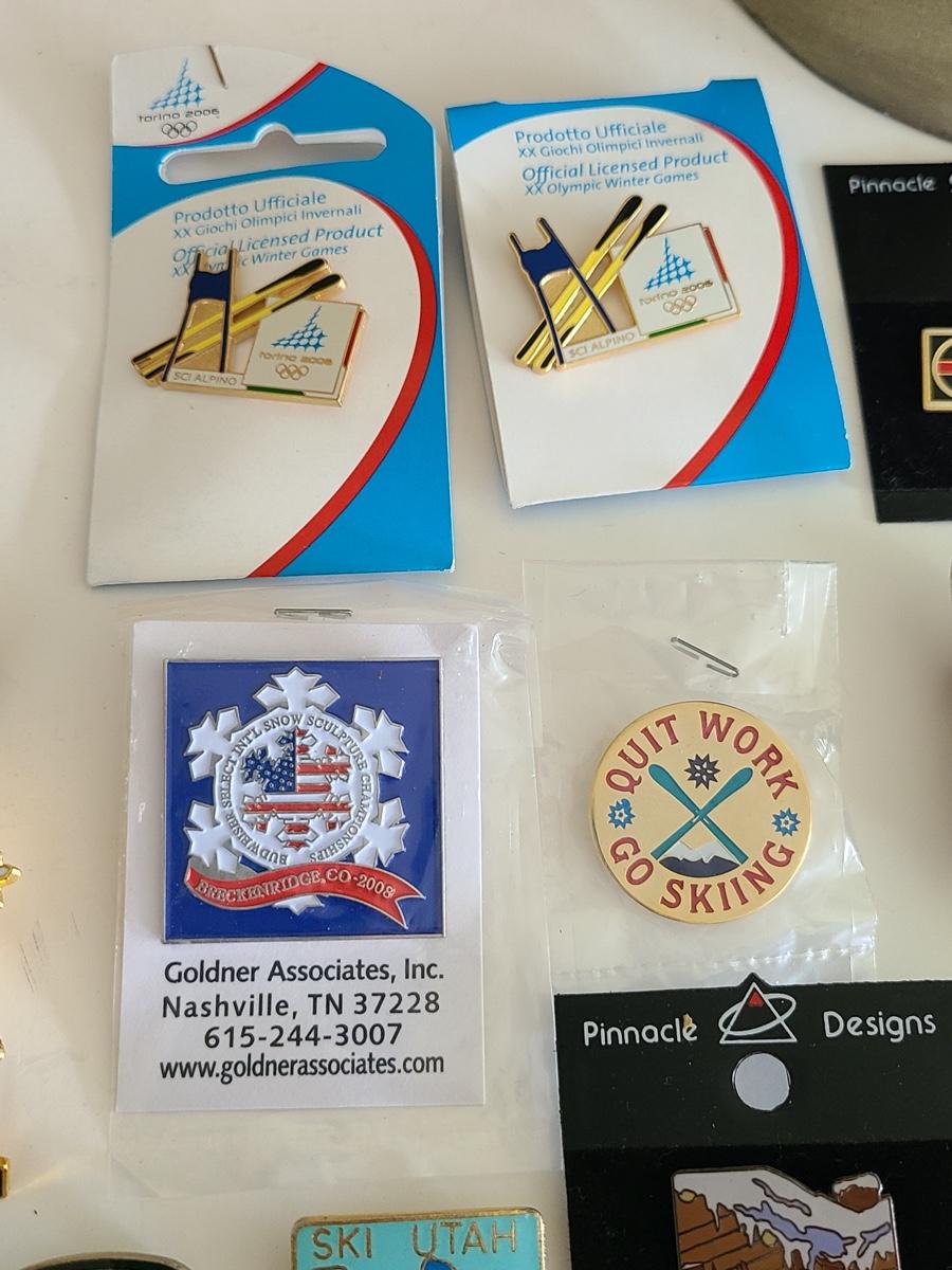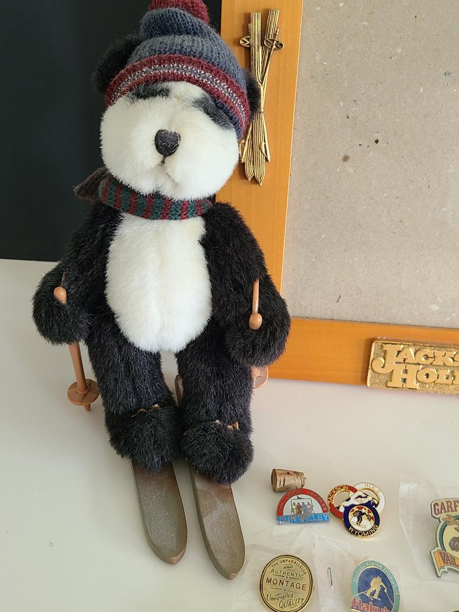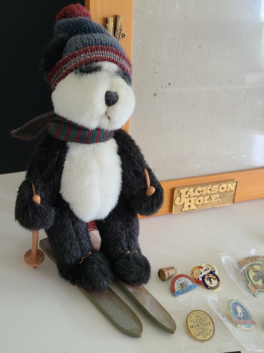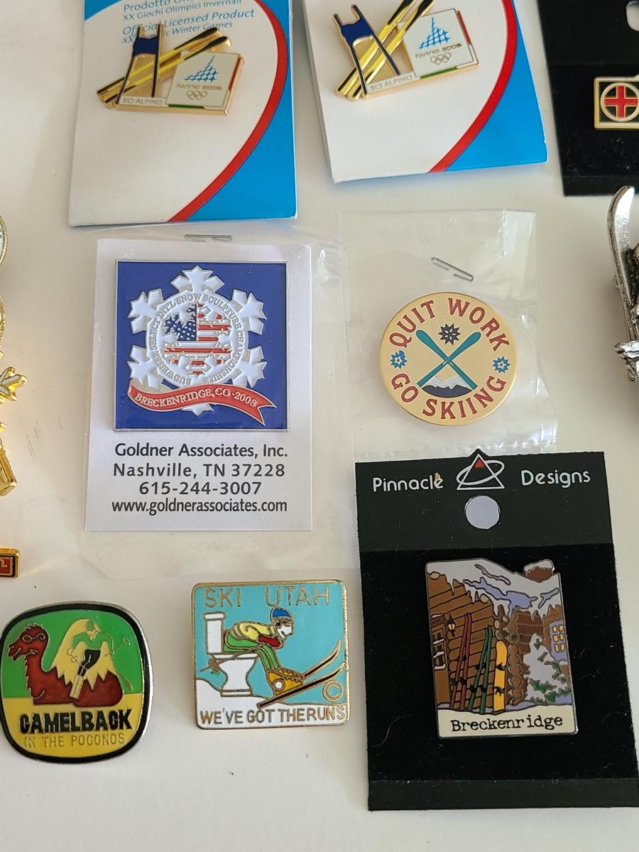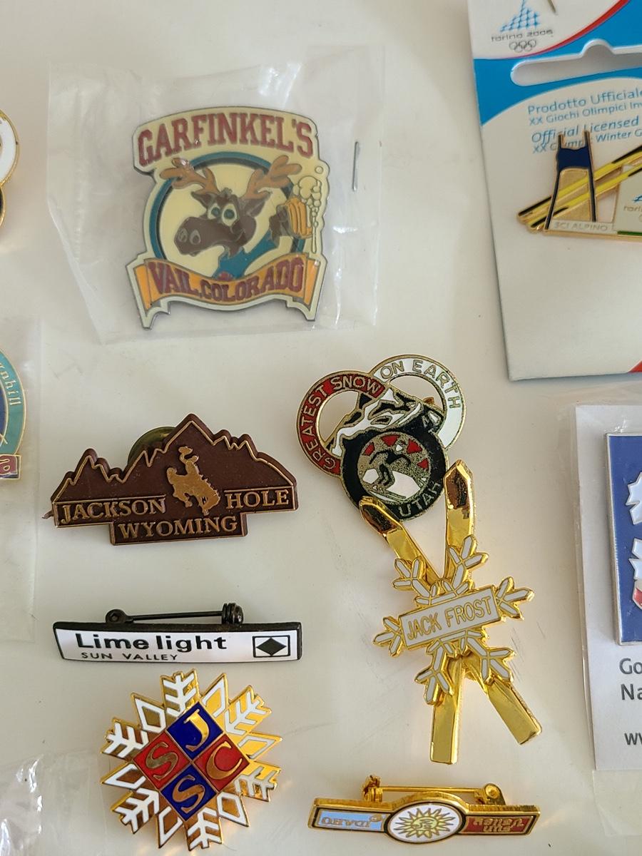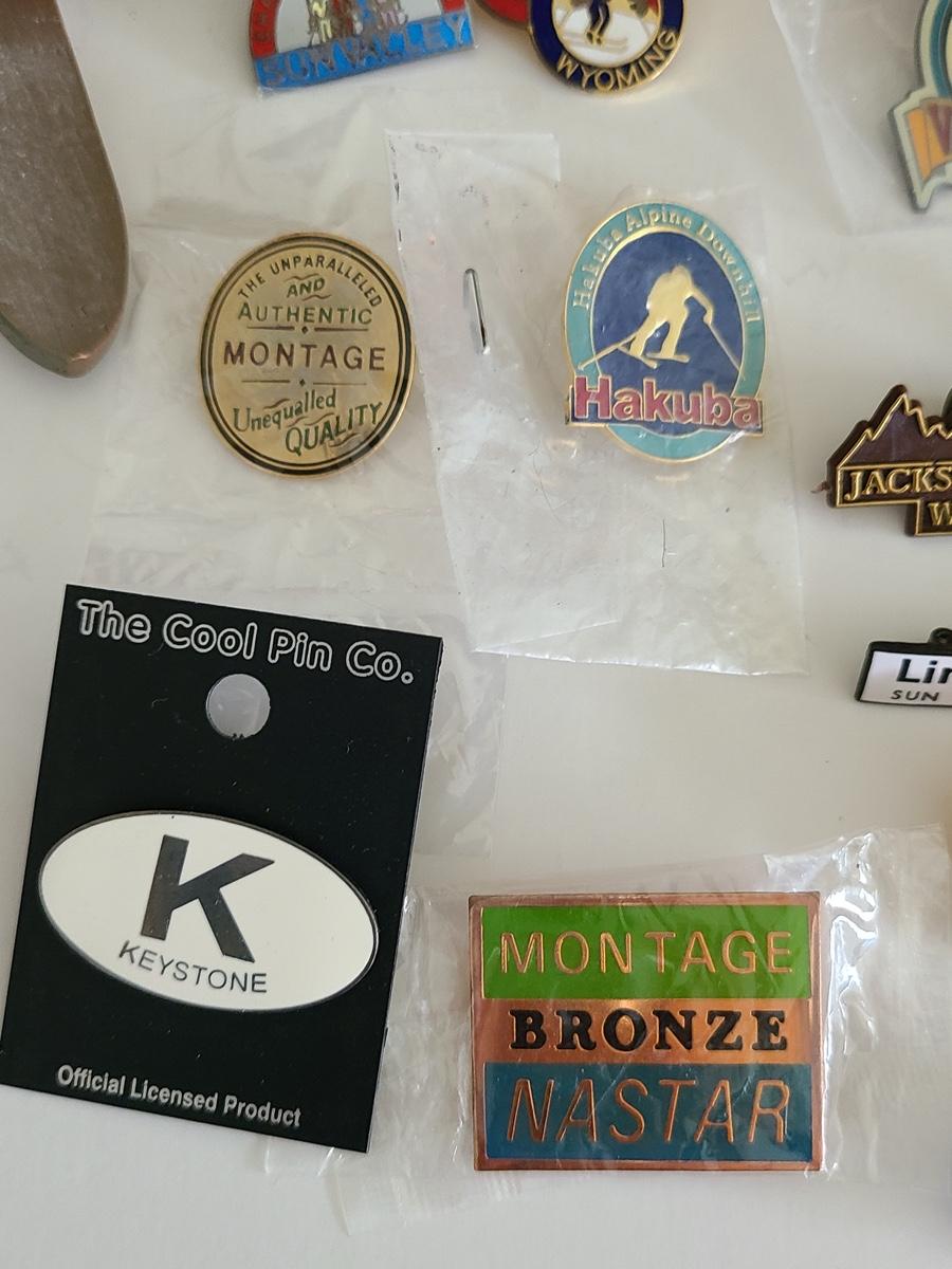 Lot 85: Vintage Collectible Ski Pins, Jackson Hole Ski Frame and More
