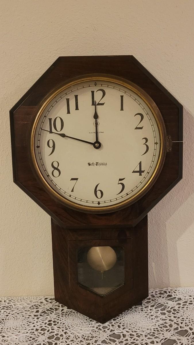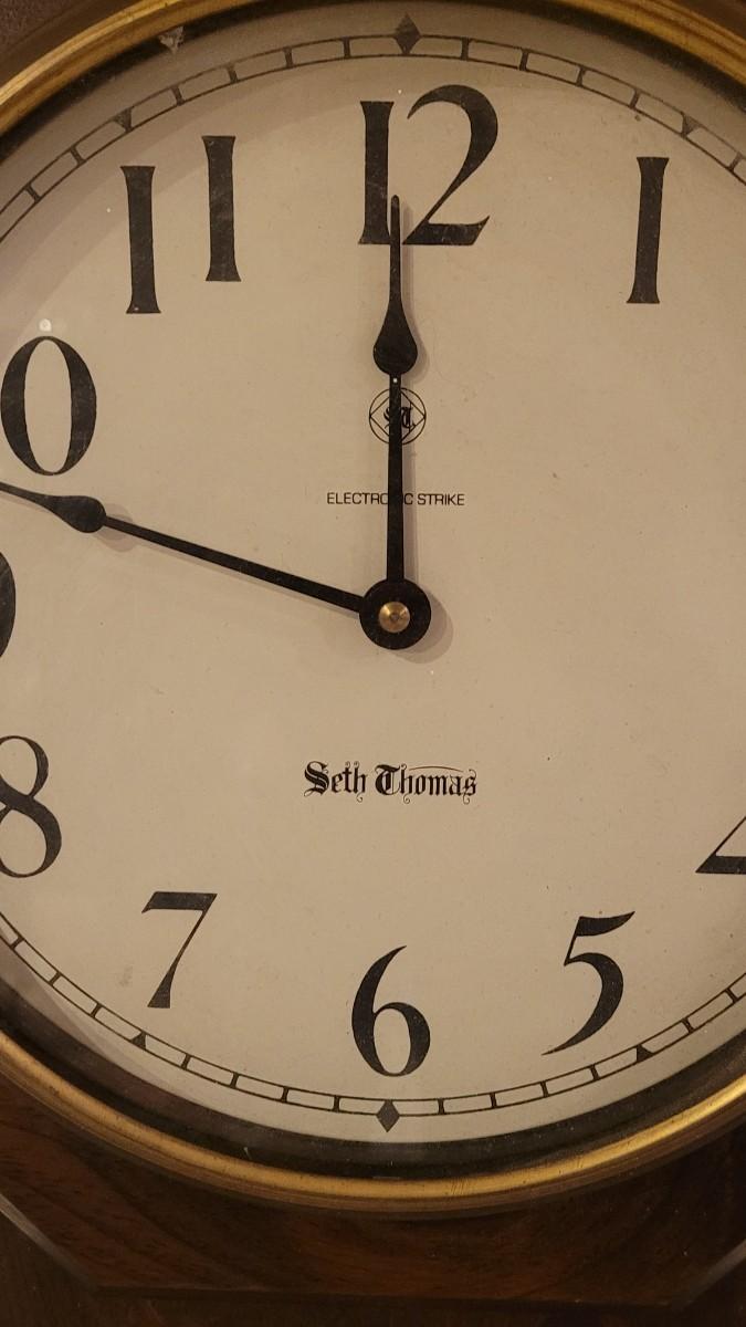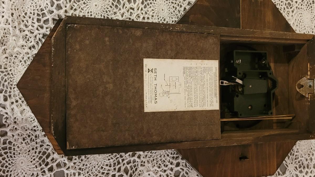Lot 80: Vintage Seth Thompson Electronic Strike Clock (Back needs repair)