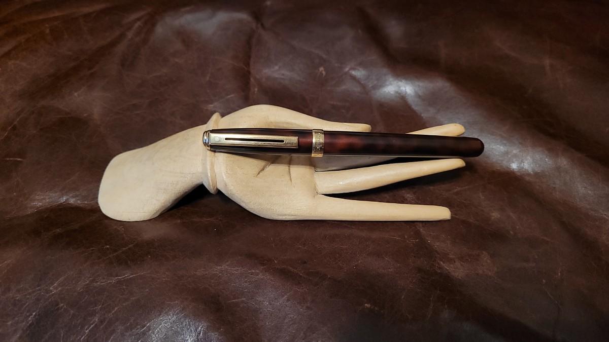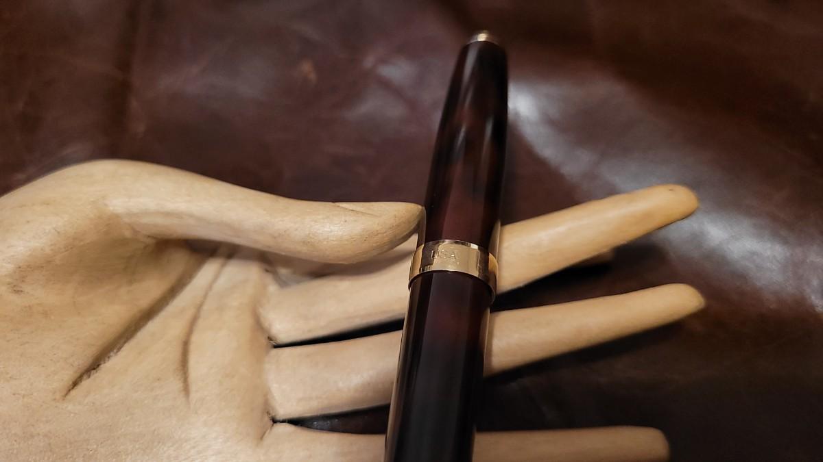 Very desirable Dark Red Marble Toned Case with Gold Trim and the famous white dot on clip and cap. The fancy original Nib is in nice shape for age.