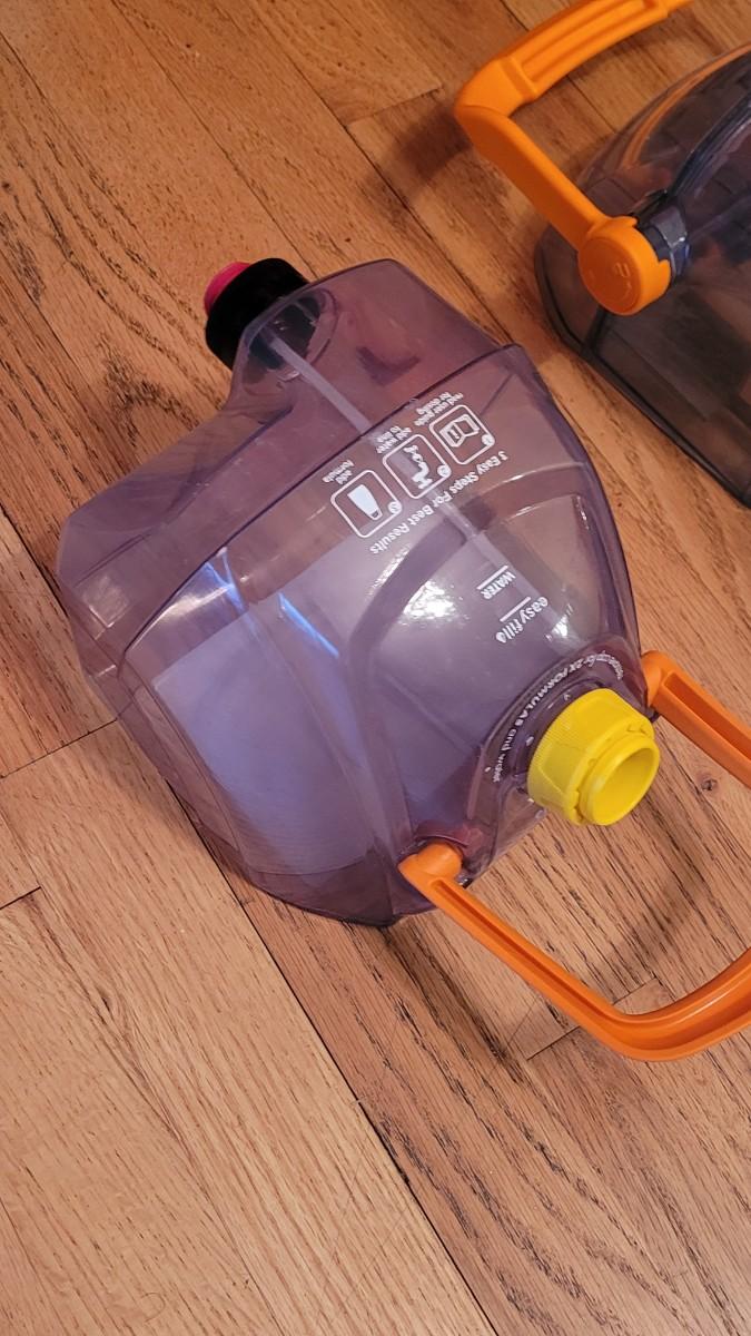 2 bottles of solution (one small and the big one) are full other small bottle less than half full.