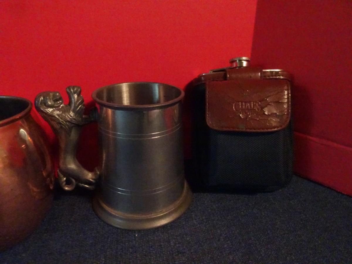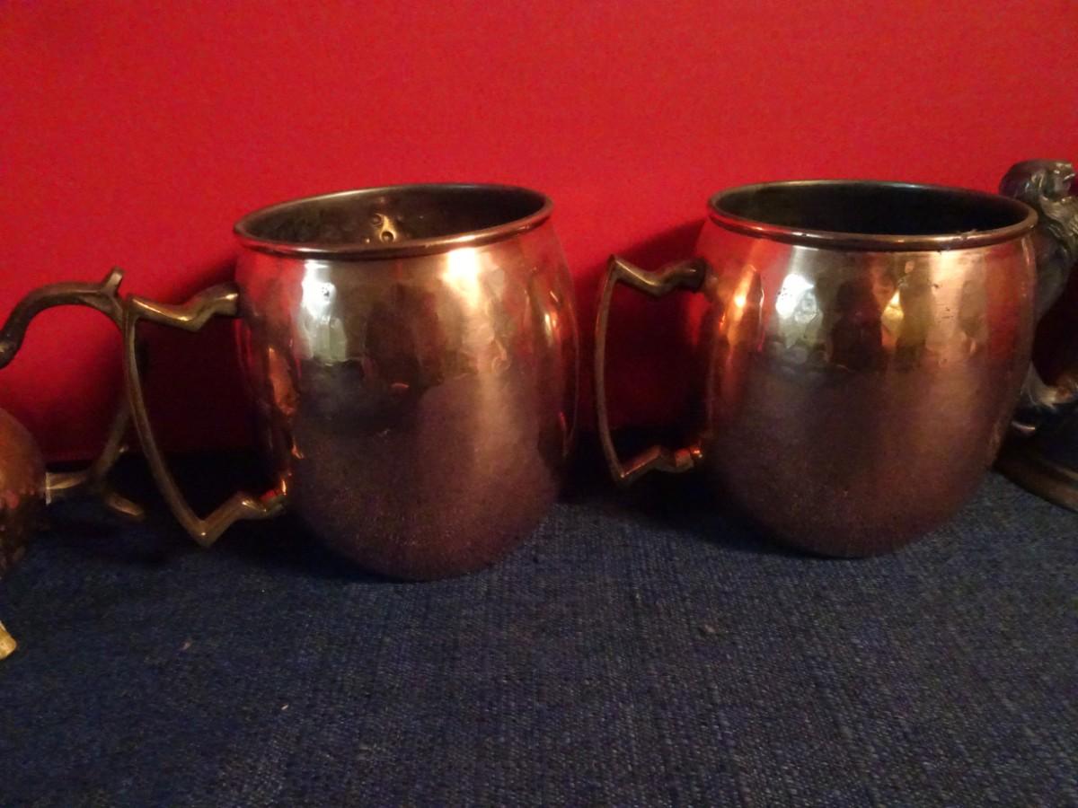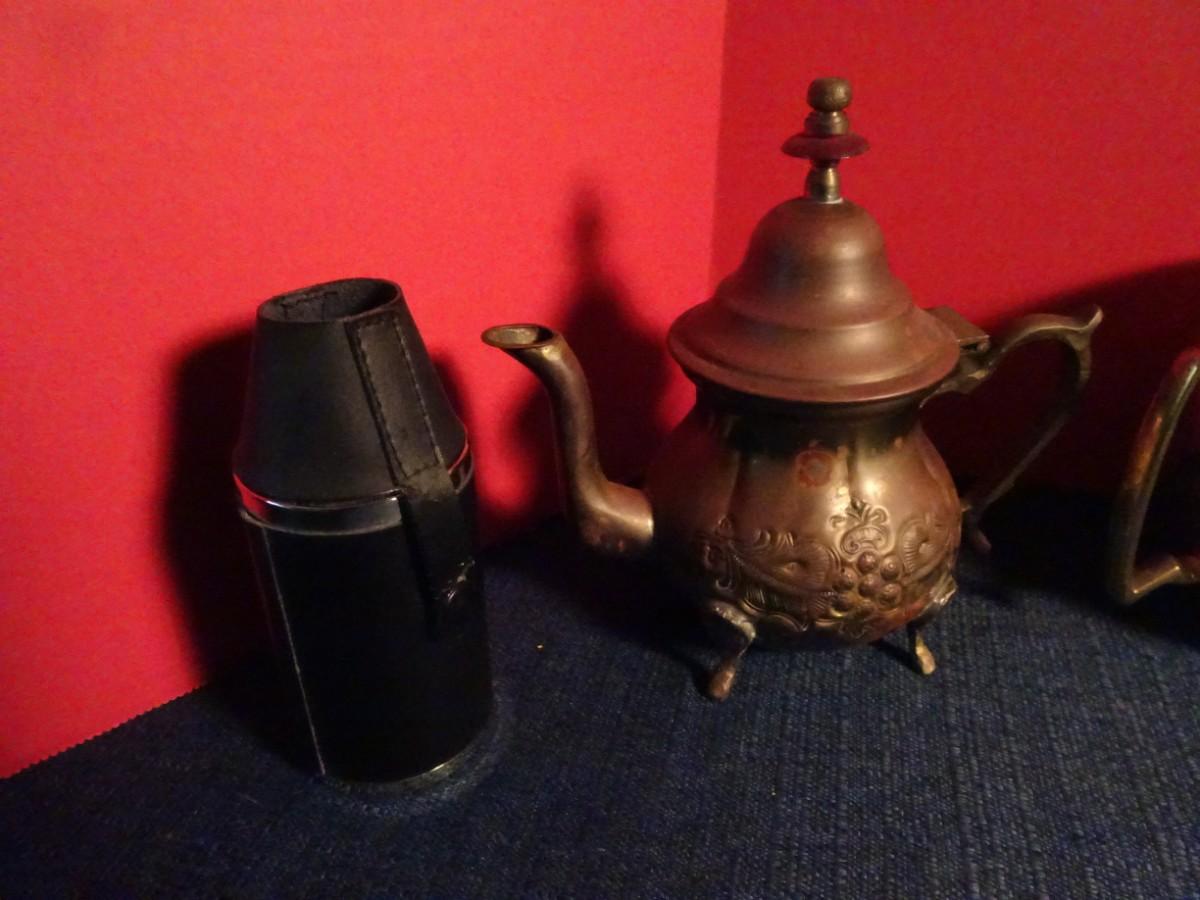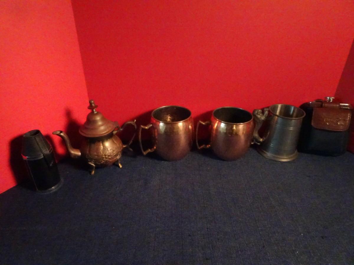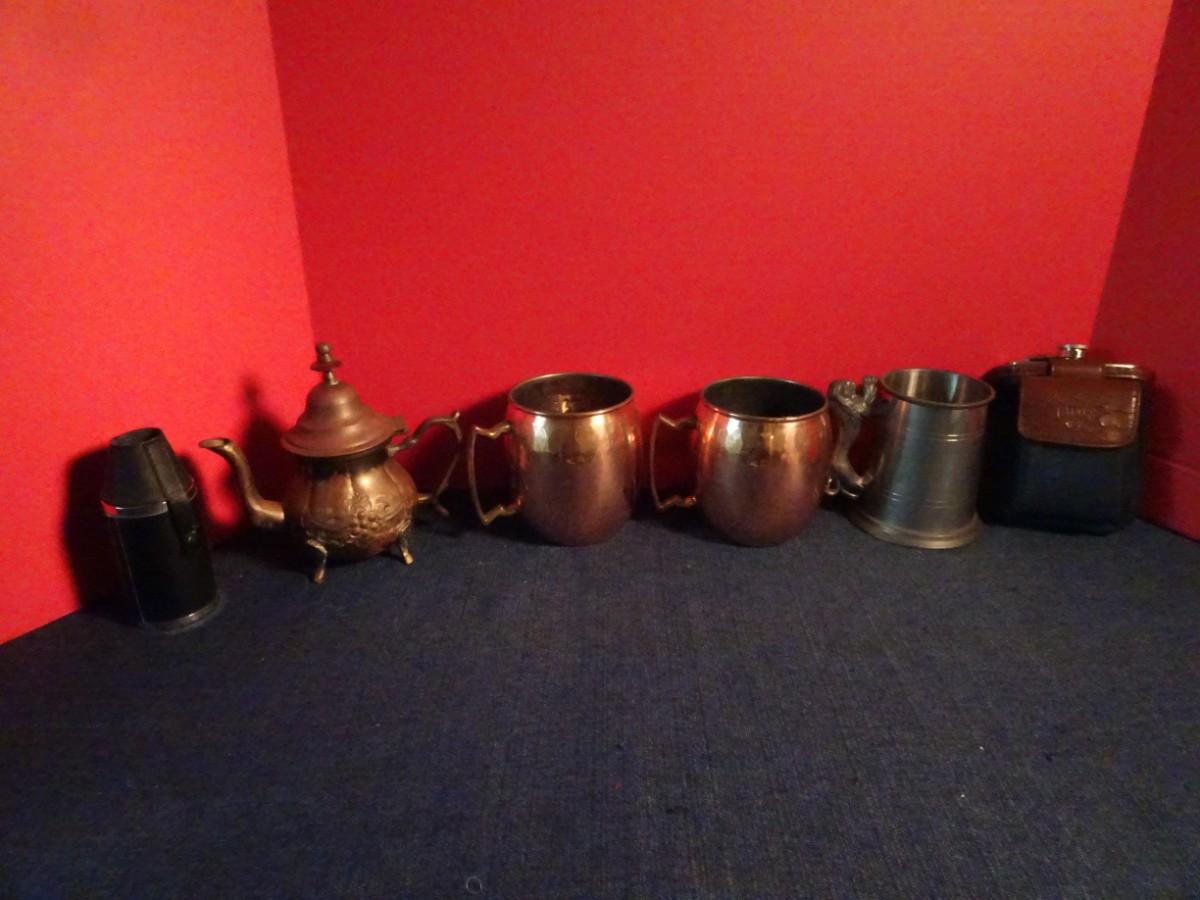 LOT 85. METAL CUPS AND TEA POT