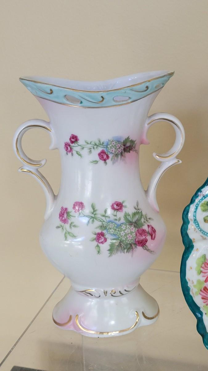 Lot 85: Vintage Handpainted Porcelain Tray and Vase