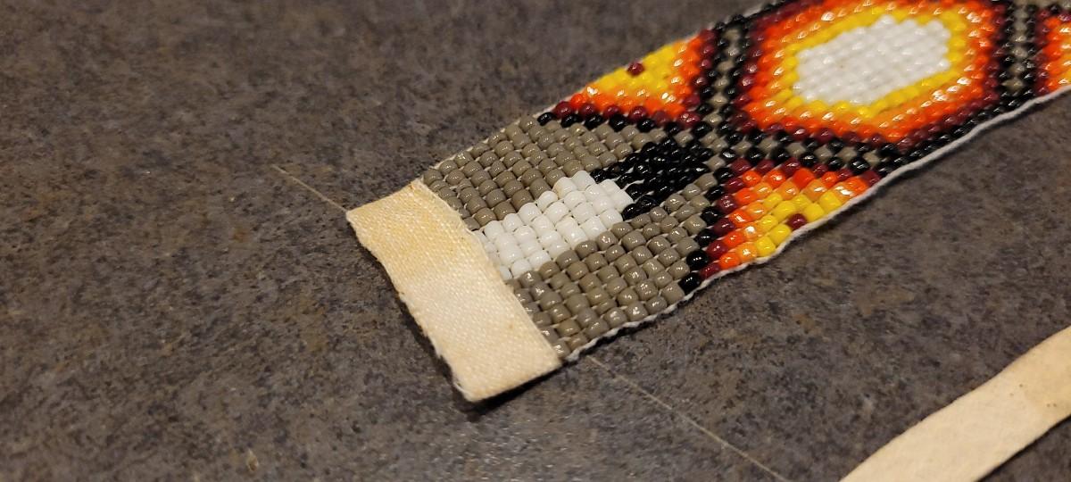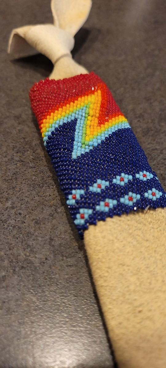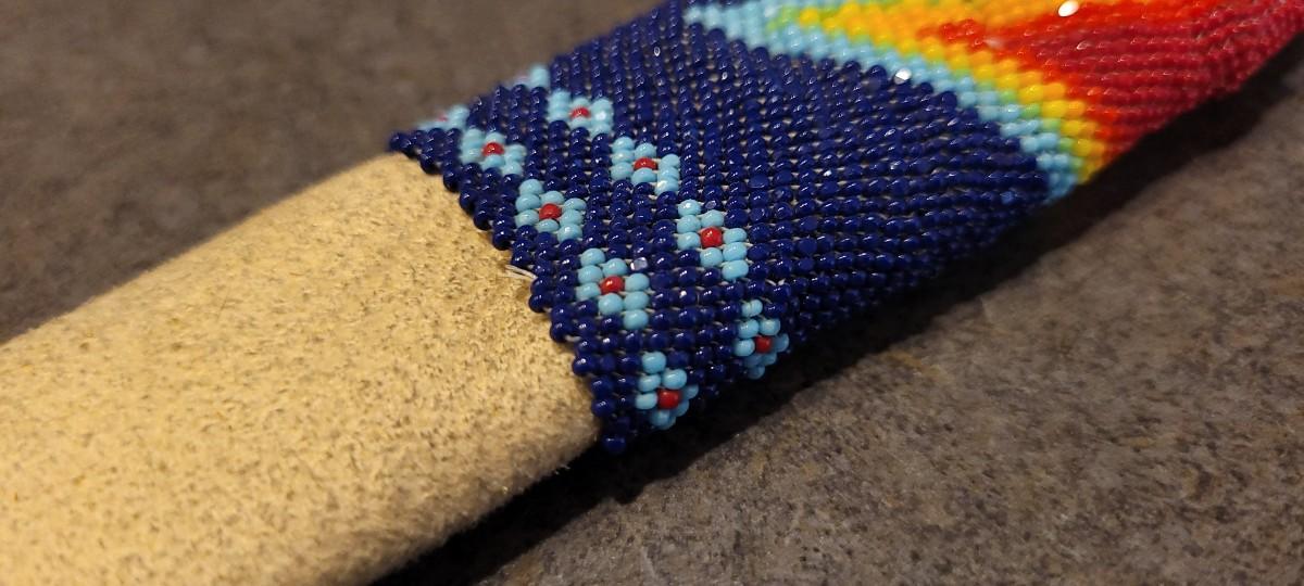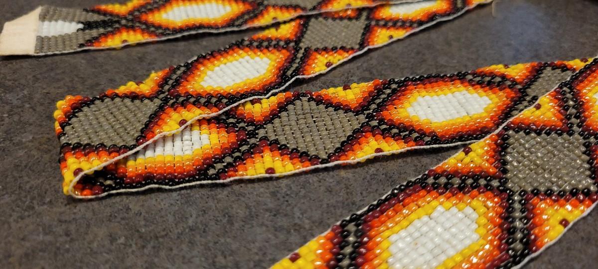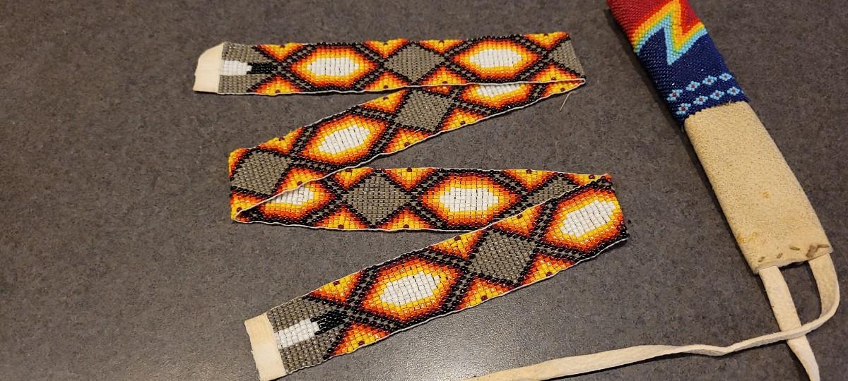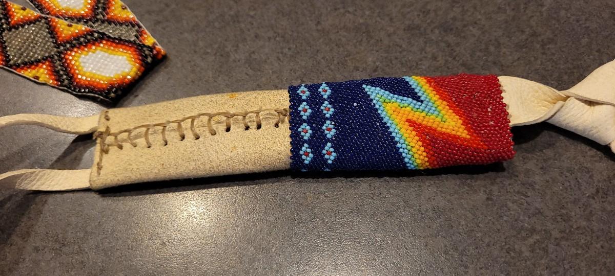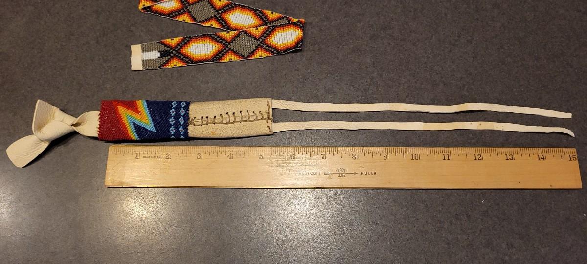 This lot features a handcrafted Knife Sheath and also a strand of beads that have a great design pattern with finished ends.