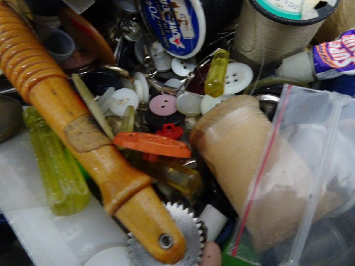 LOT 85. BUTTONS AND SEWING GEAR
