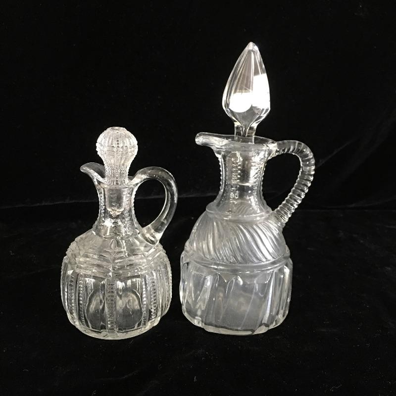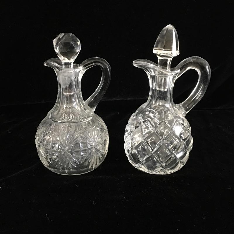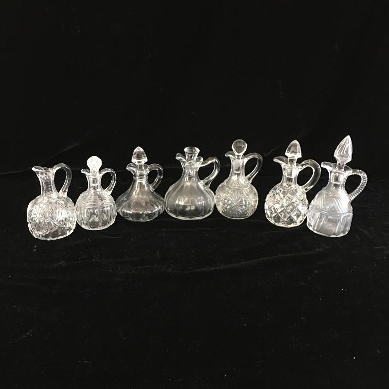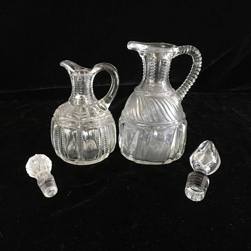 Treat yourself to this glass pitcher collection to add some swank to your next meal, with or without guests! Collection of Glass bottles with stoppers includes six bottles with stoppers and one without top.