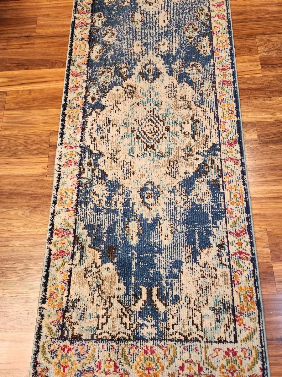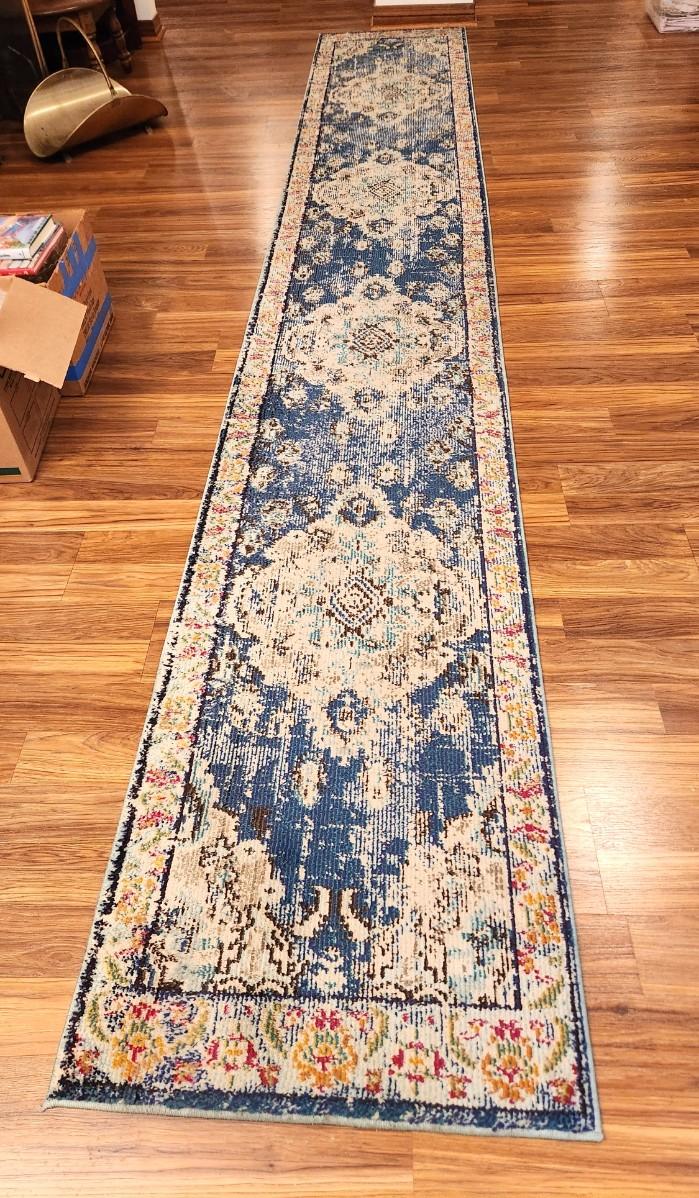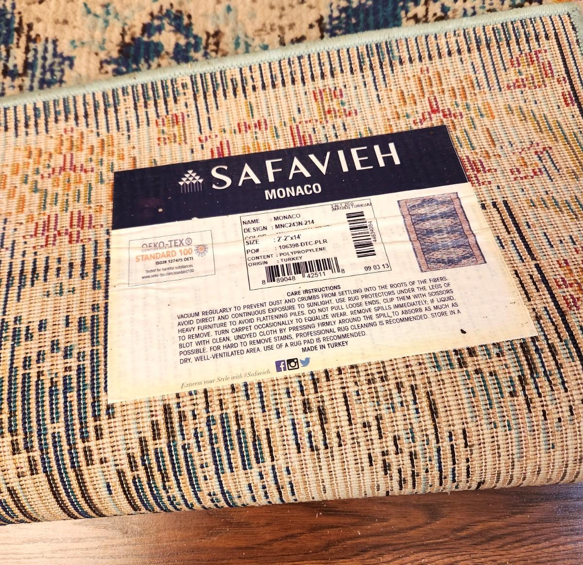 Contemporary Floor Runner in the "Monaco" pattern, made in Turkey by SAFAVIEH rugs. 14" long, 2" 2" wide. Good condition.