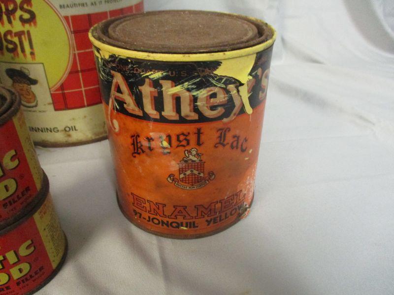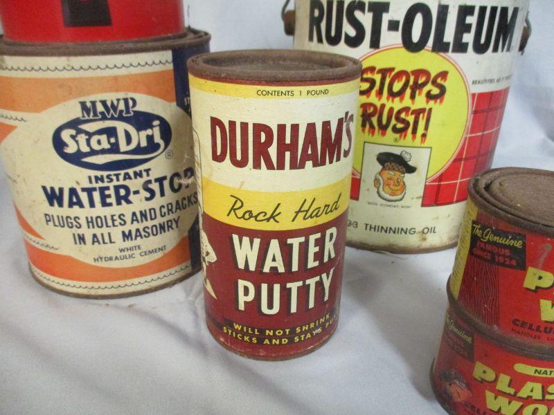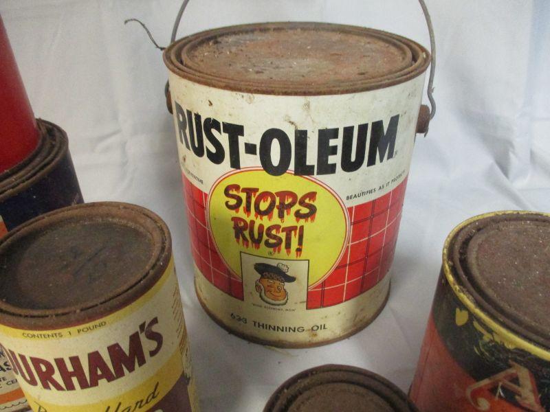 The large Rustoleum can feels like there is still liquid in it, but the others are not "sloshing". Their contents may have dried out inside or they are empty.