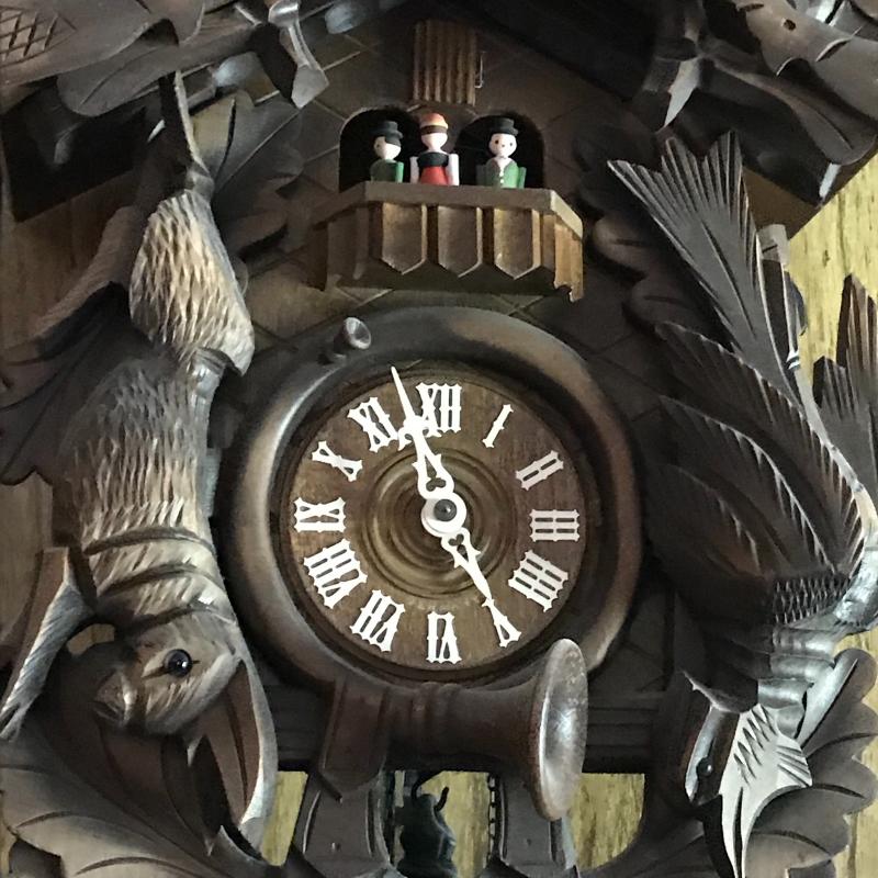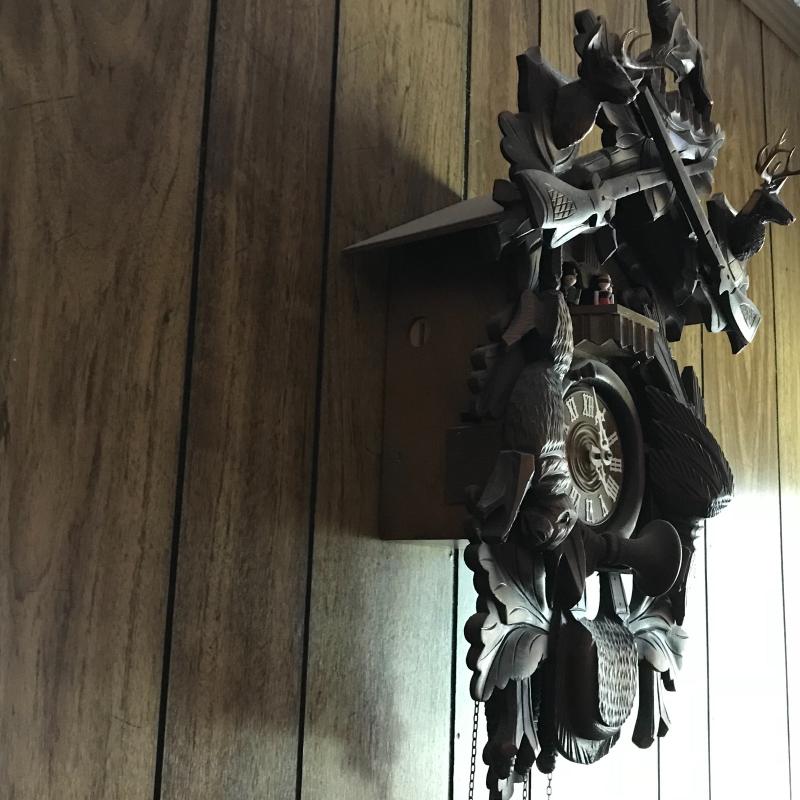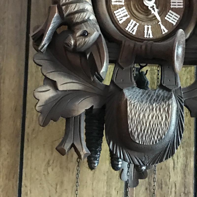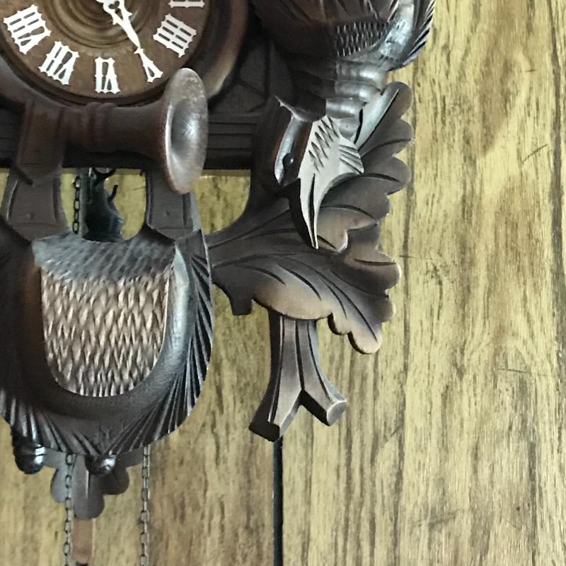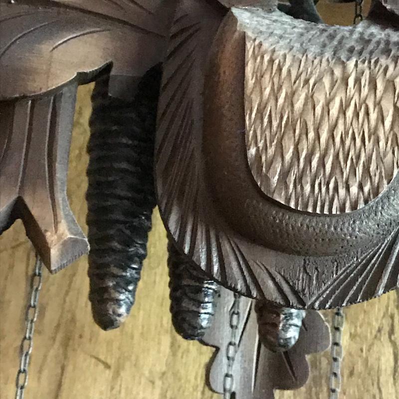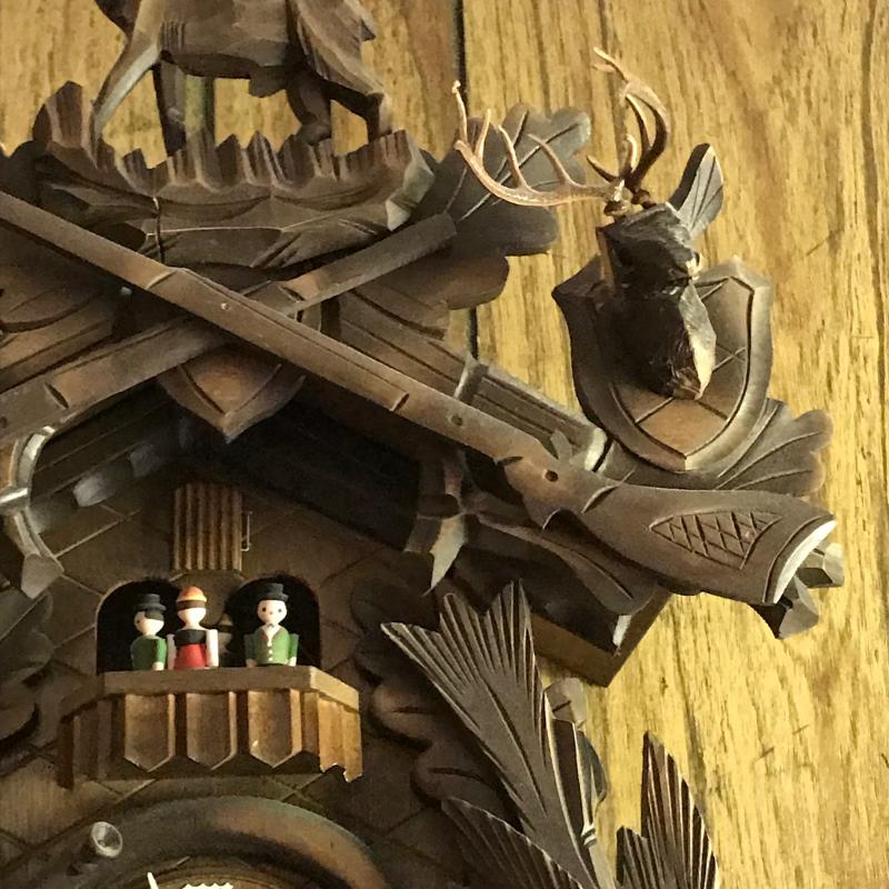 This beautiful hand carved wooden cuckoo clock is perfect for your den, cabin or hunting lodge. Cannot verify functionality. Top piece is chipped and one antler is missing. No shipping available. Local pickup only in Hendersonville, NC.