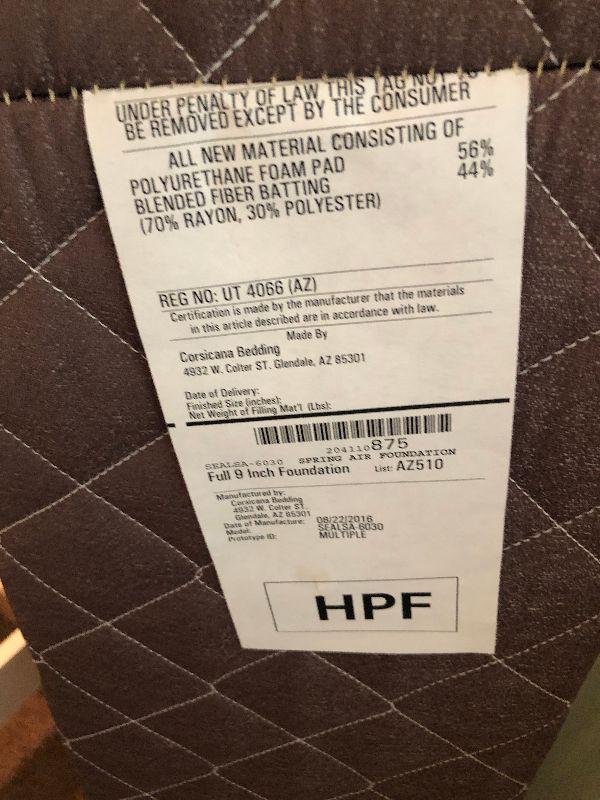 Lot #85 Full Size Mattress and Box ONLY SPRING AIR
