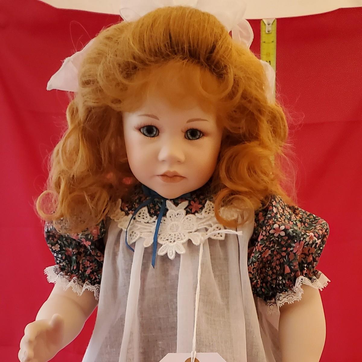 Doll Named "Hope" By Jeanne Singer with Red Hair and White and Floral Dress
