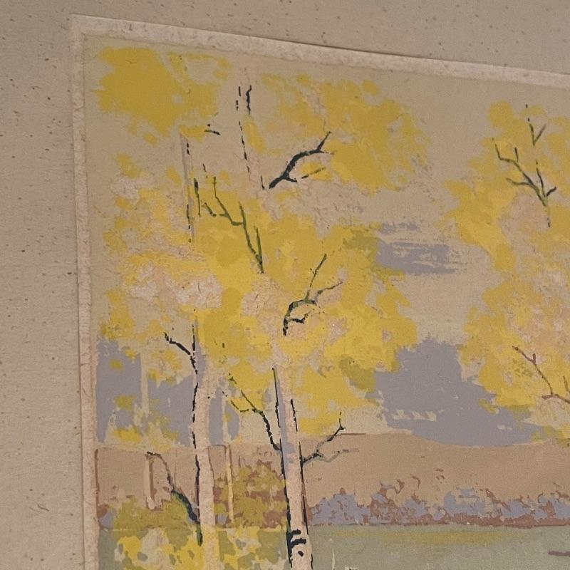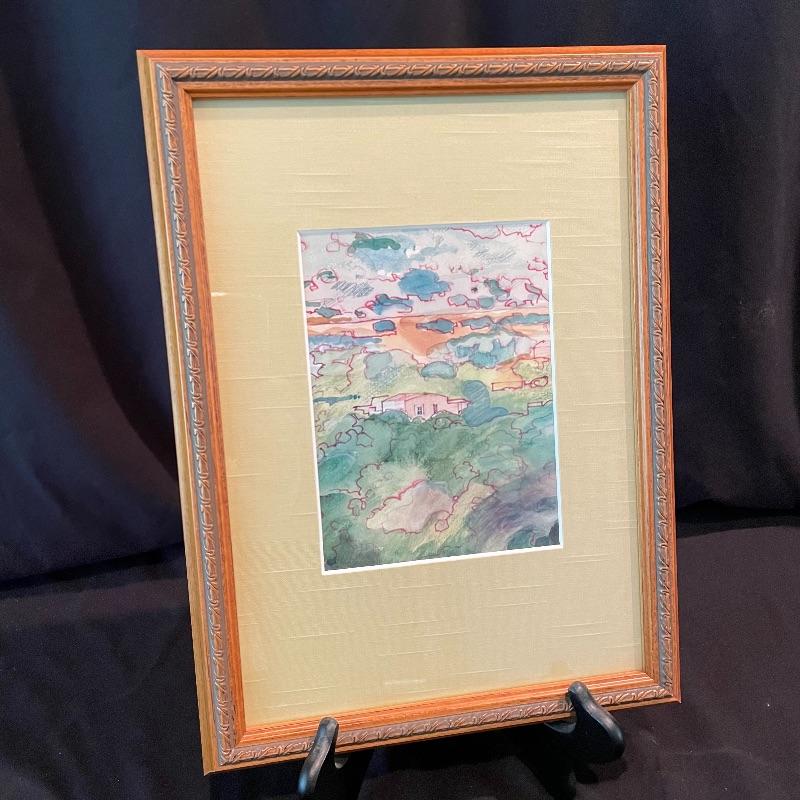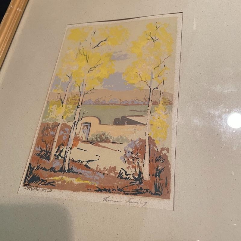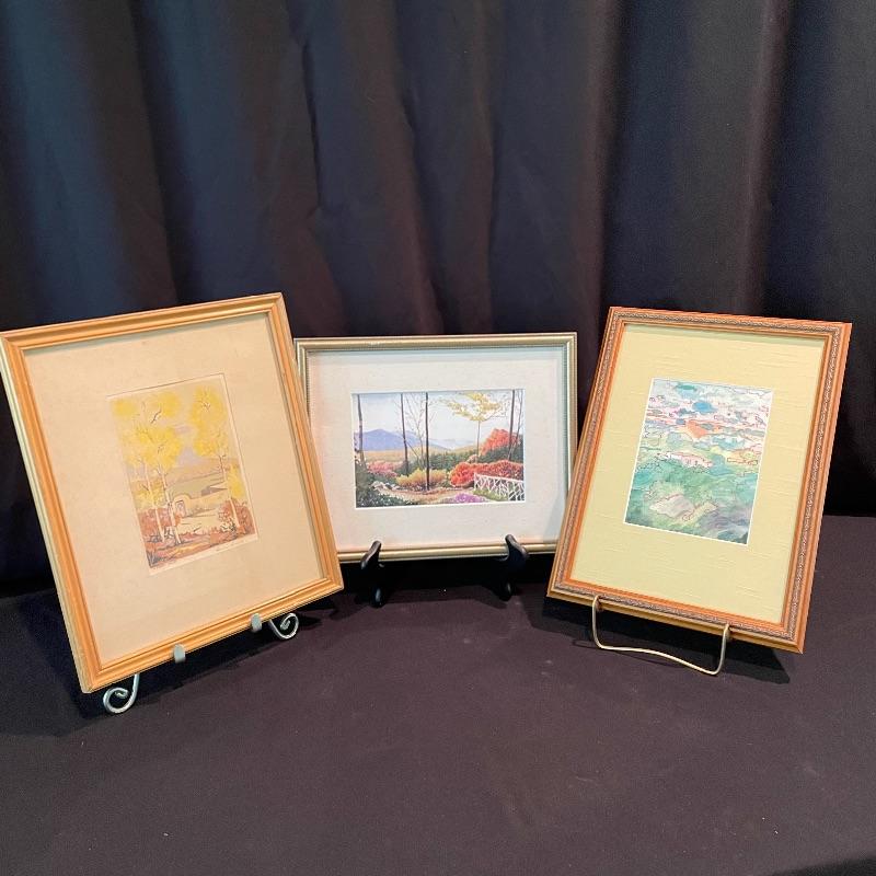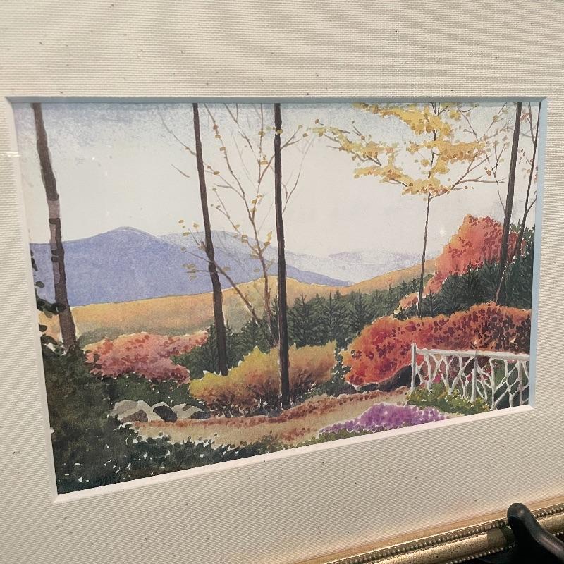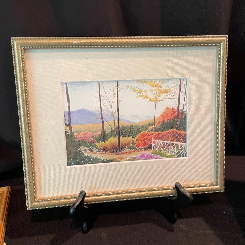 Let this lot whisk you around the world! “Autumn Gold” appears to be pencil signed by Louie Ewing takes you to the southwest! A stunning landscape of the hills of Greece with information about it on the rear stating “Offset lithograph (four-color ink process)”. Lastly, a beautiful scene that reminds one of fall in the Blue Ridge Mountains. This piece sits pretty in a mat with no visible artist information. All three pieces are matted behind glass in wooden frames. The Louie Ewing piece measures approximately 11” x 13”. Shipping available. Please call UPS with dimensions at 828-252-6930 for a shipping quote prior to bidding.