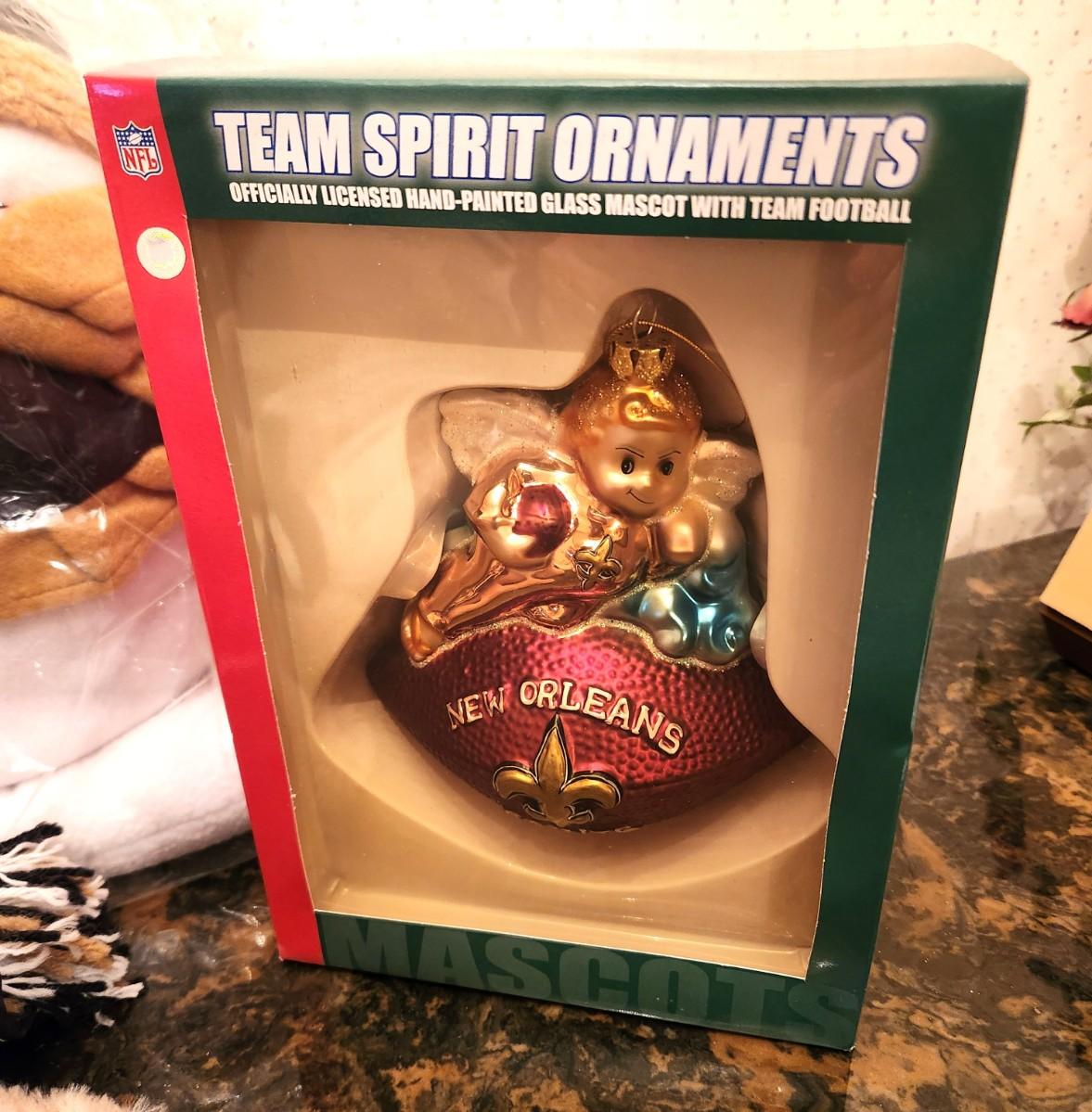 You get all you see here - all items are new - New Orleans Saints plush/toy lot. 1 ornament in box. Cute stocking stuffers.
