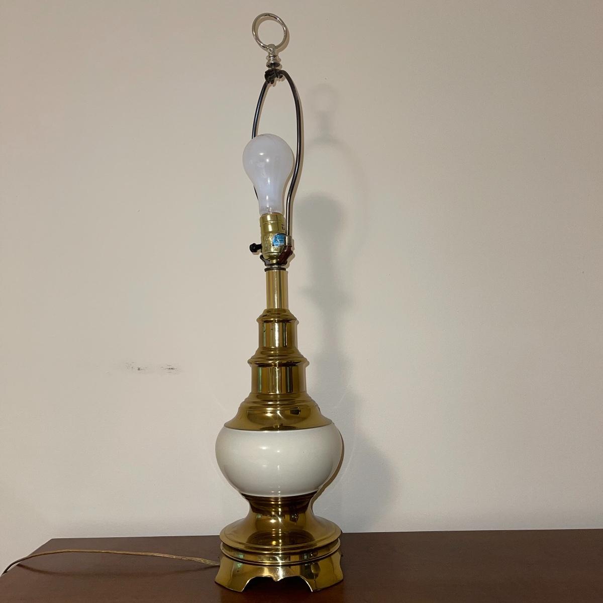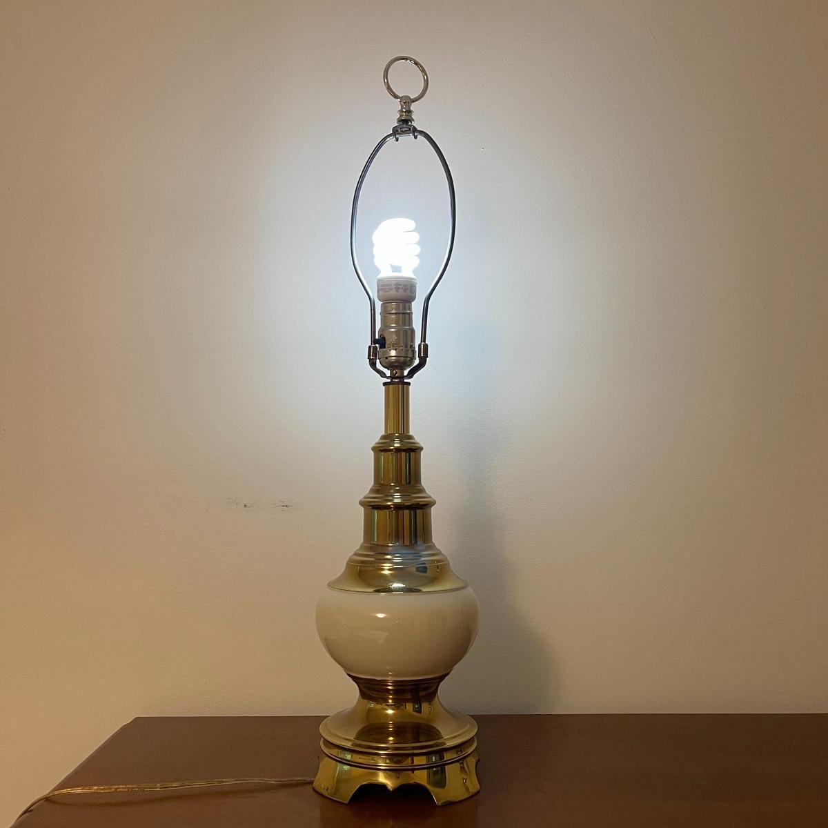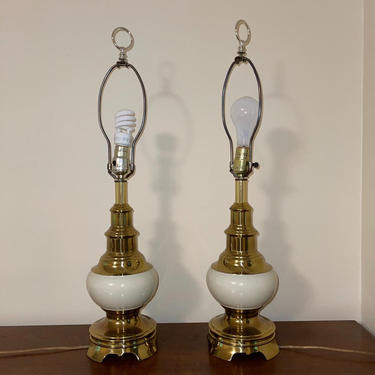 Both of these 28” tall lamps turn on when plugged in and don’t have any visible damage aside from small marks due to age. One of the lamps has a loose piece where the lightbulb attaches but it can be remedied.