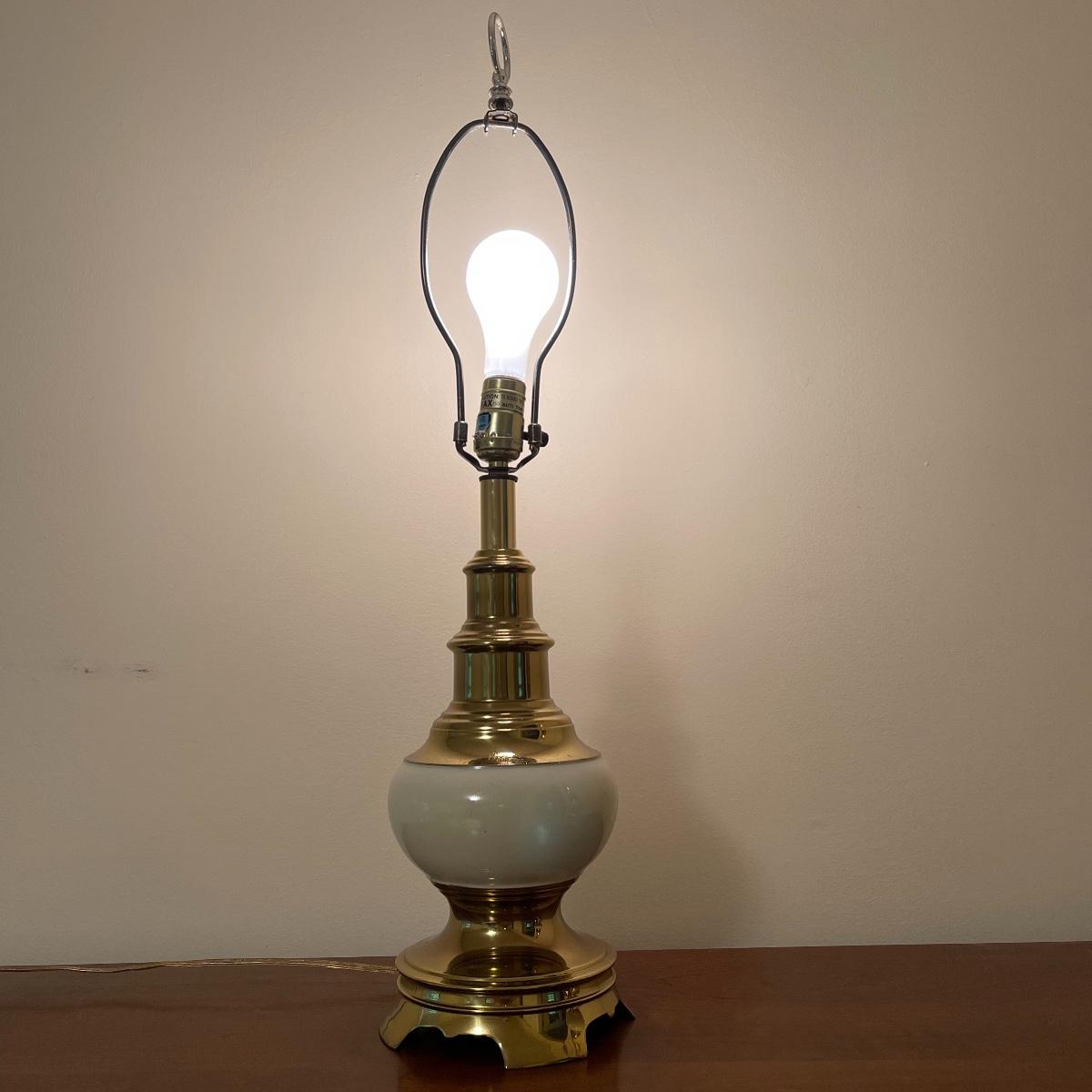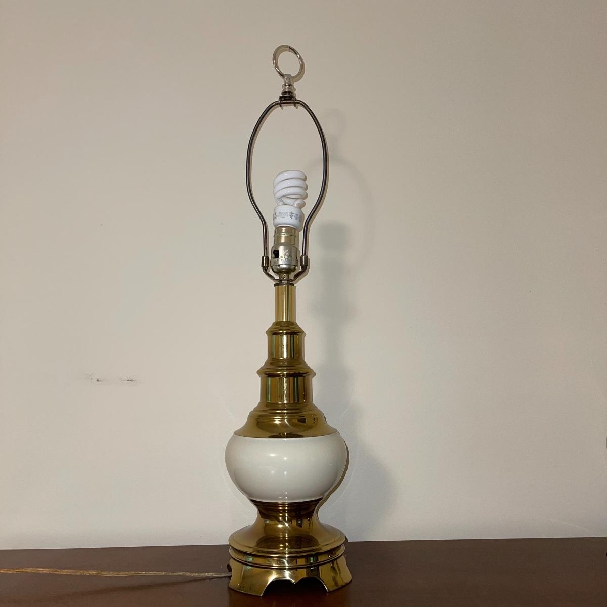 Lot 85 - Pair of Brass and White Ceramic Lamps