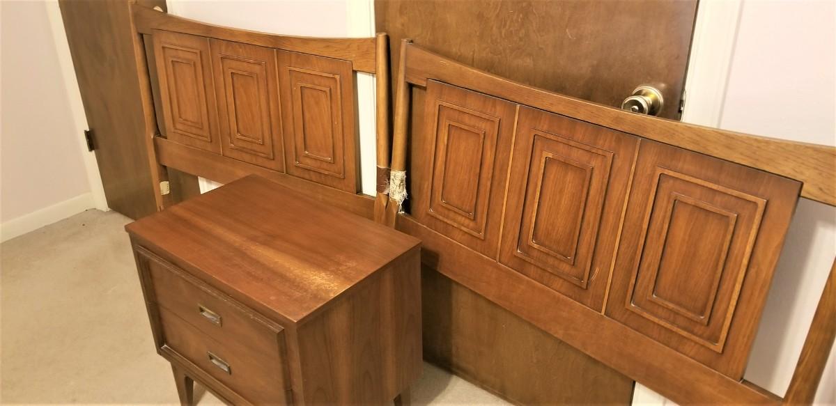 Lot #85 Pair of MidCentury Modern Twin Headboards & matching nightstand
