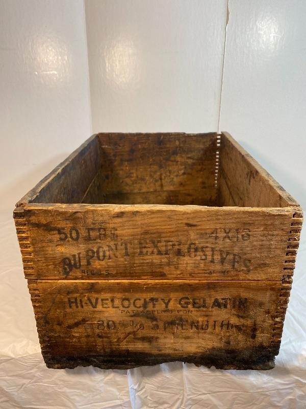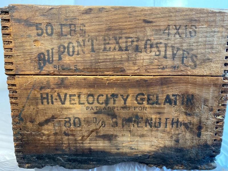 Lot 85 s DuPont Explosive Crate Dynamite Hi Velocity Gelatin 50 lbs. Repurpose Industrial