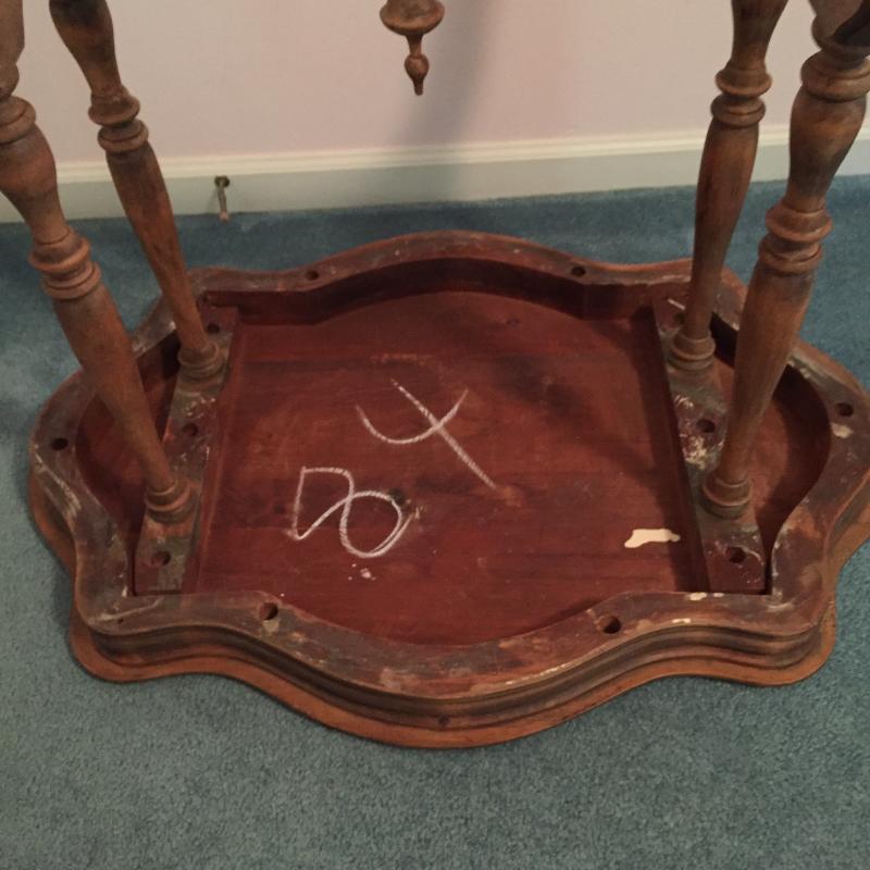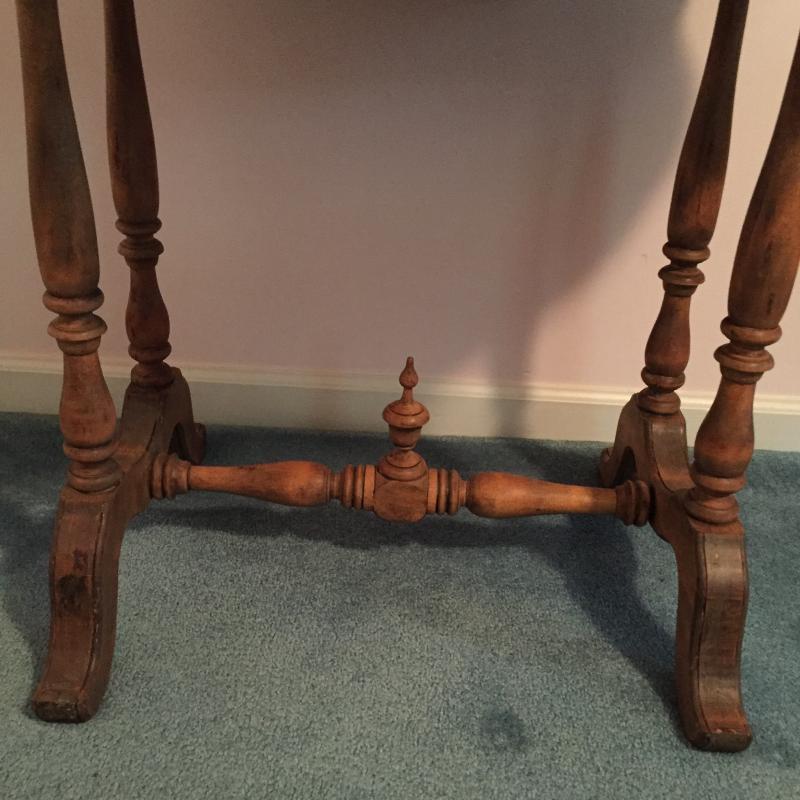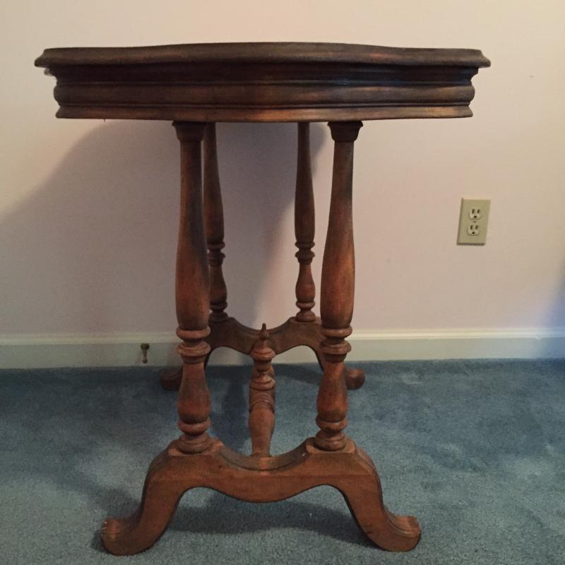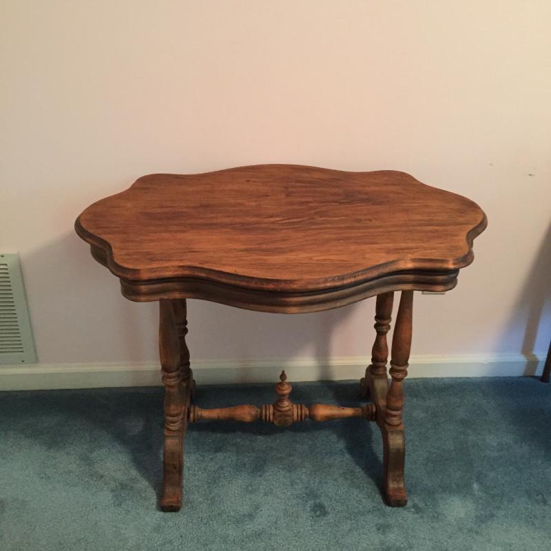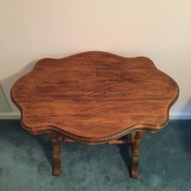 Wooden Side Table. Nice curved top. Underside of Feet are worn-See Pictures. Measures 25”x35”x20.5”. Local Pickup Only