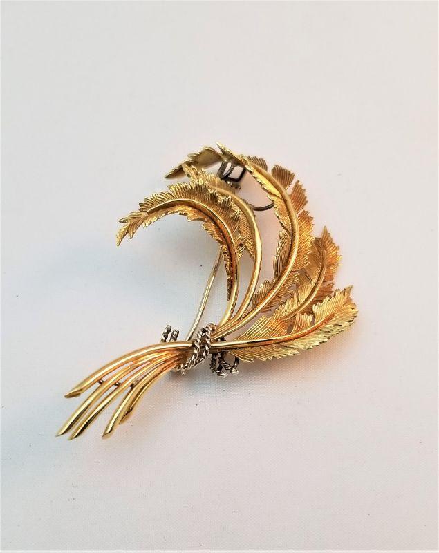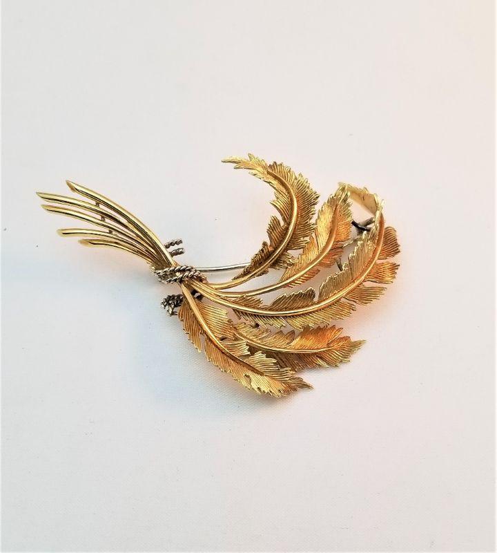Lot #85  Vintage Feather-motif Brooch - 18kt gold!