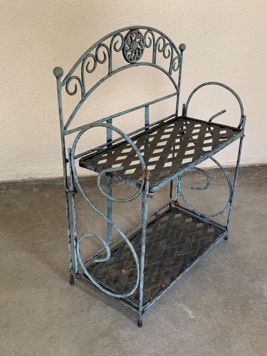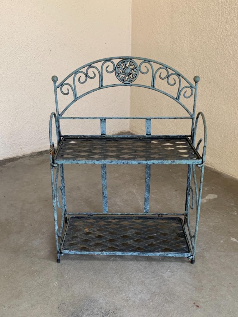 Folding, heavy gauge, metal wall or counter shelves /rack. Antique green color. Very good condition. Measures 16” x 8” x 21.” Shipping available.