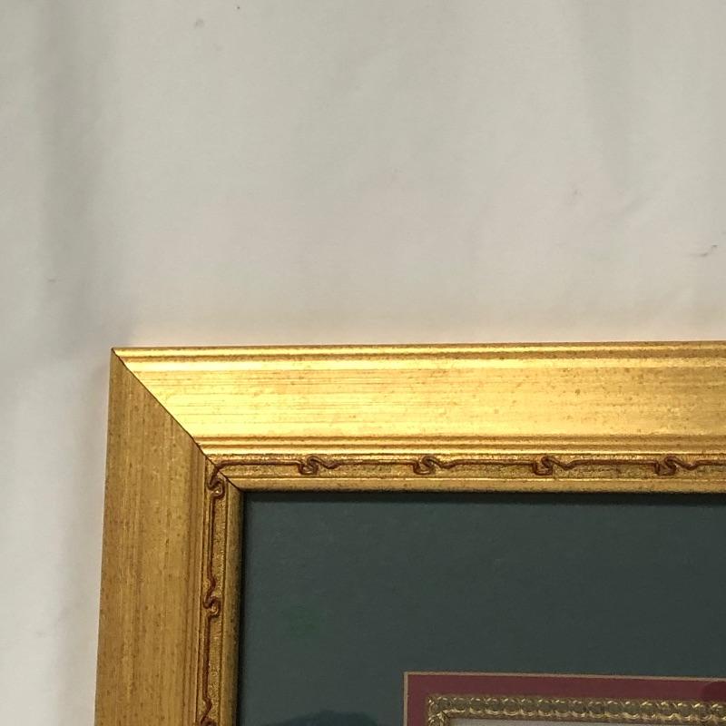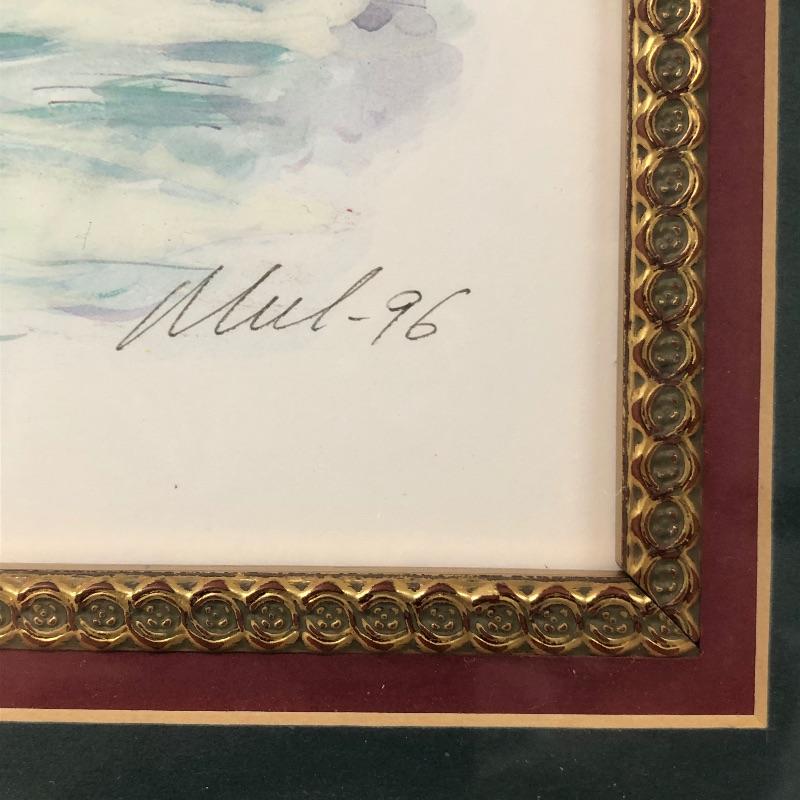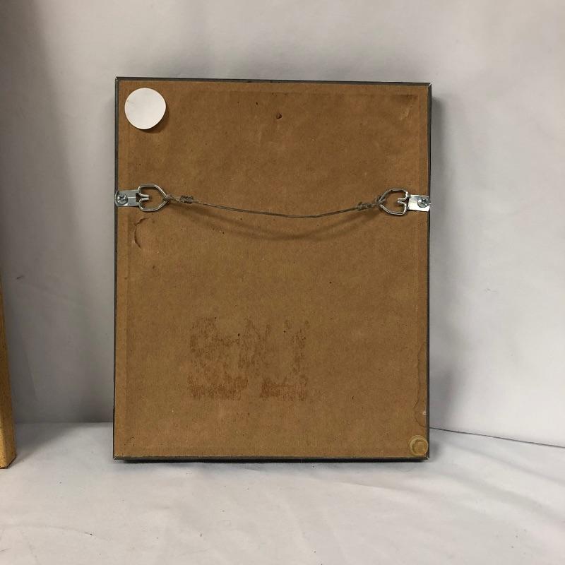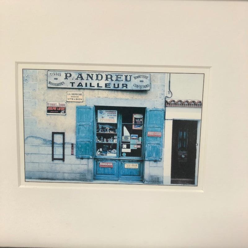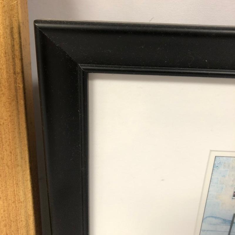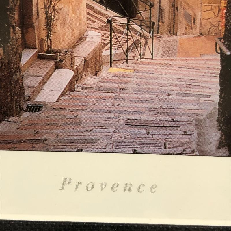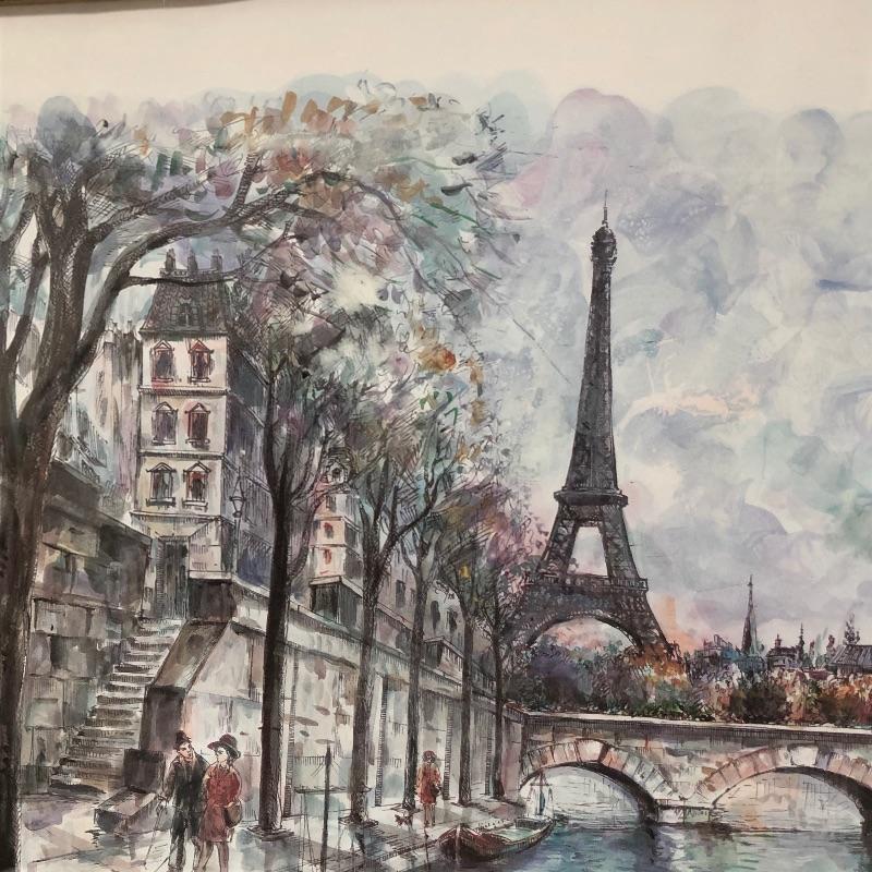 Four pieces in this lot celebrating France. The largest print is a signed watercolor that is matted and mounted in a gilded frame that measures 23” x 25”. The wooden frame holds a photo of Provence, the smallest black frame is a print of the Eiffel Tower.