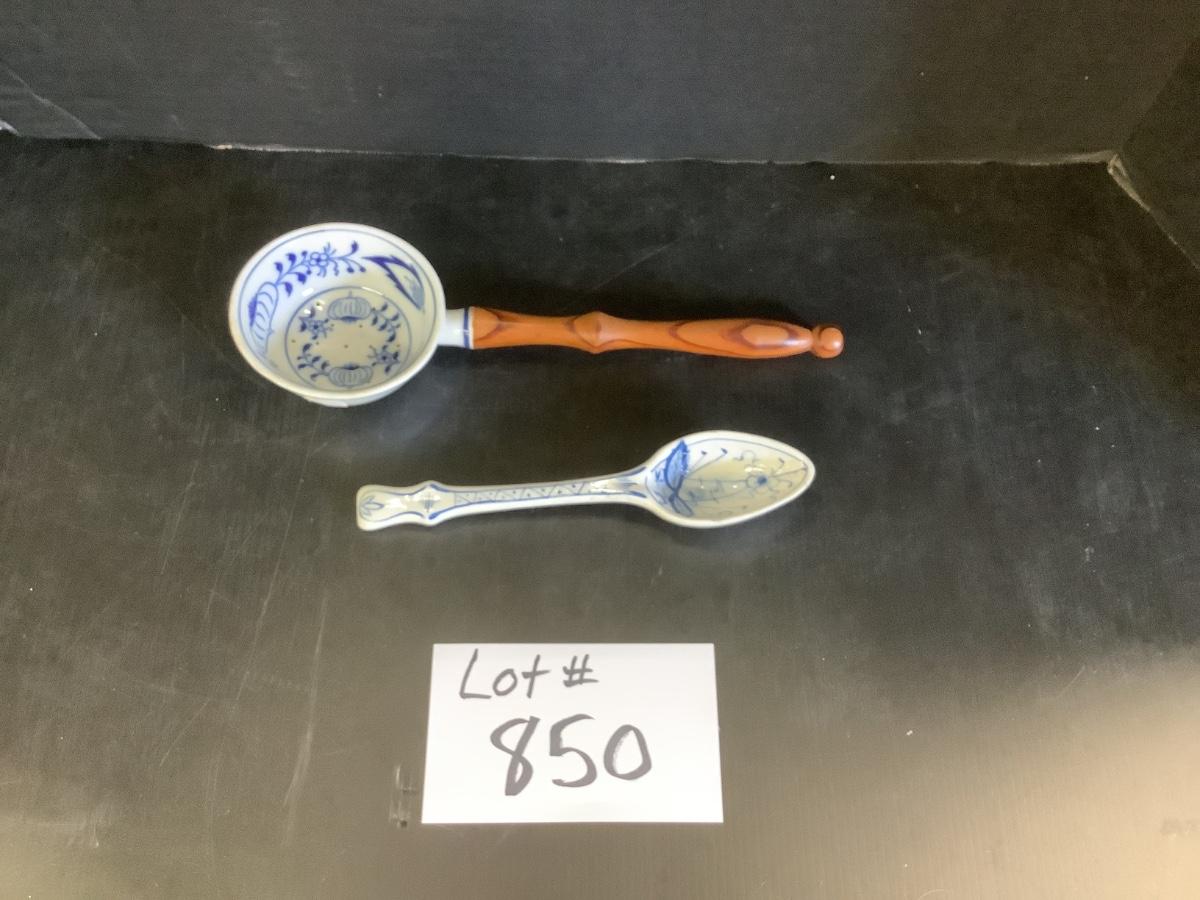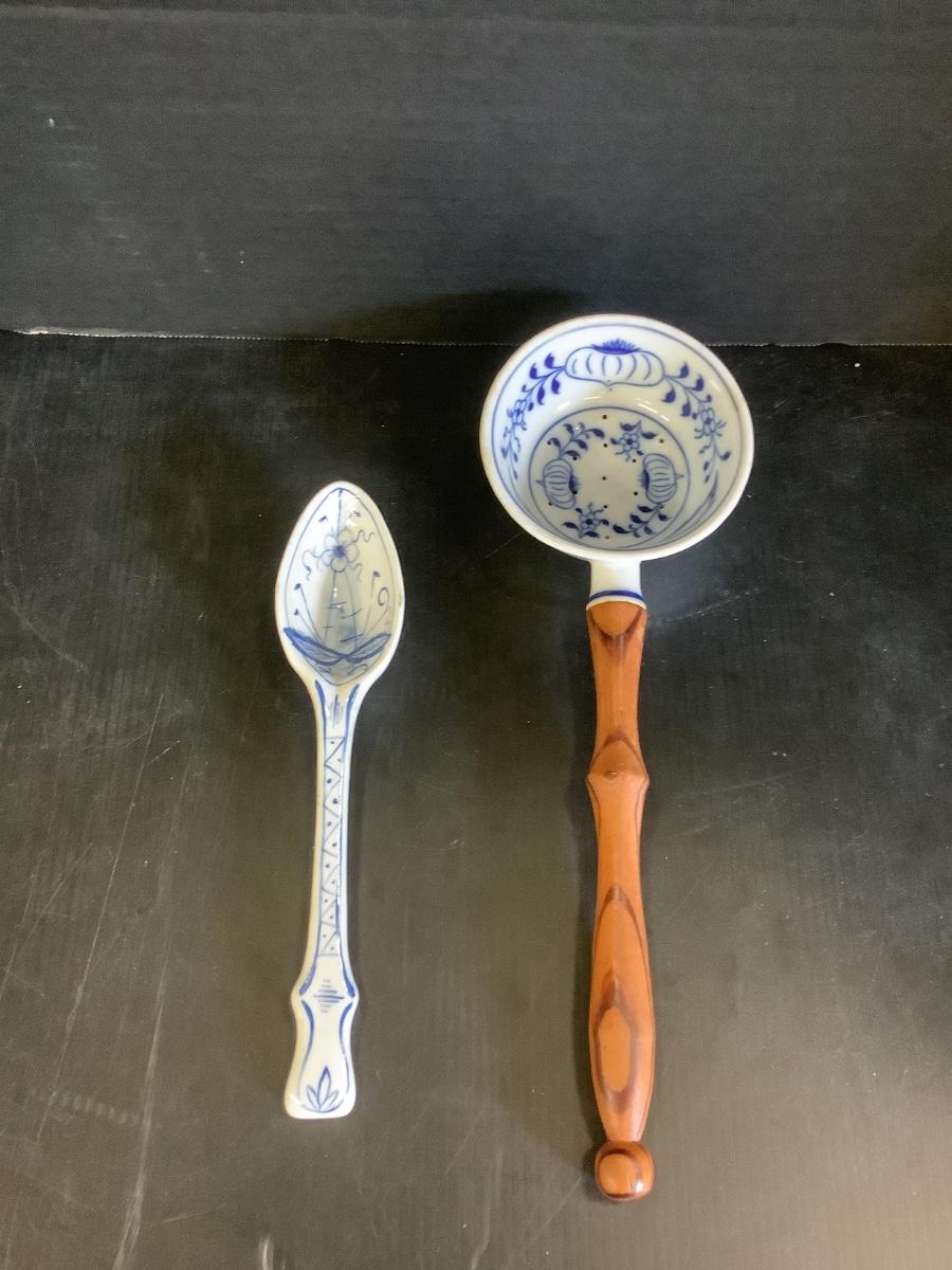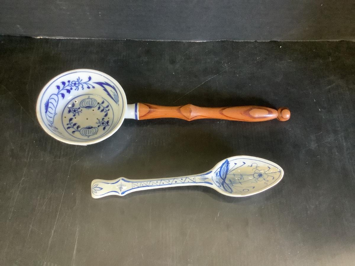Lot 850. Antique Gerold Porzellan Bavaria Blue Onion Porcelain Ladle/Antique Perforated Porcelain Onion Spoon