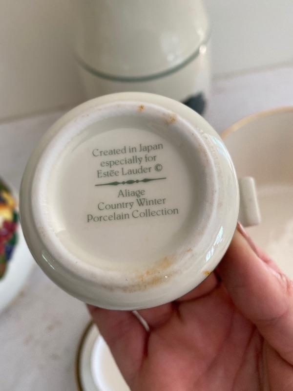 Miscellaneous pottery lot with country winter for Estee Lauder and Lennox bar