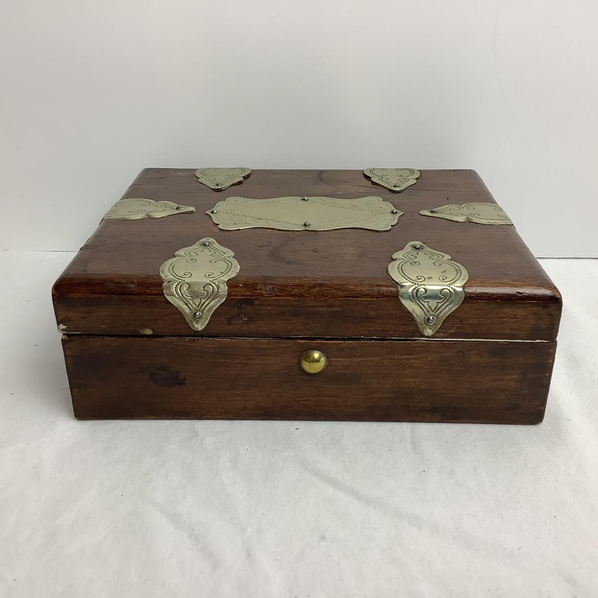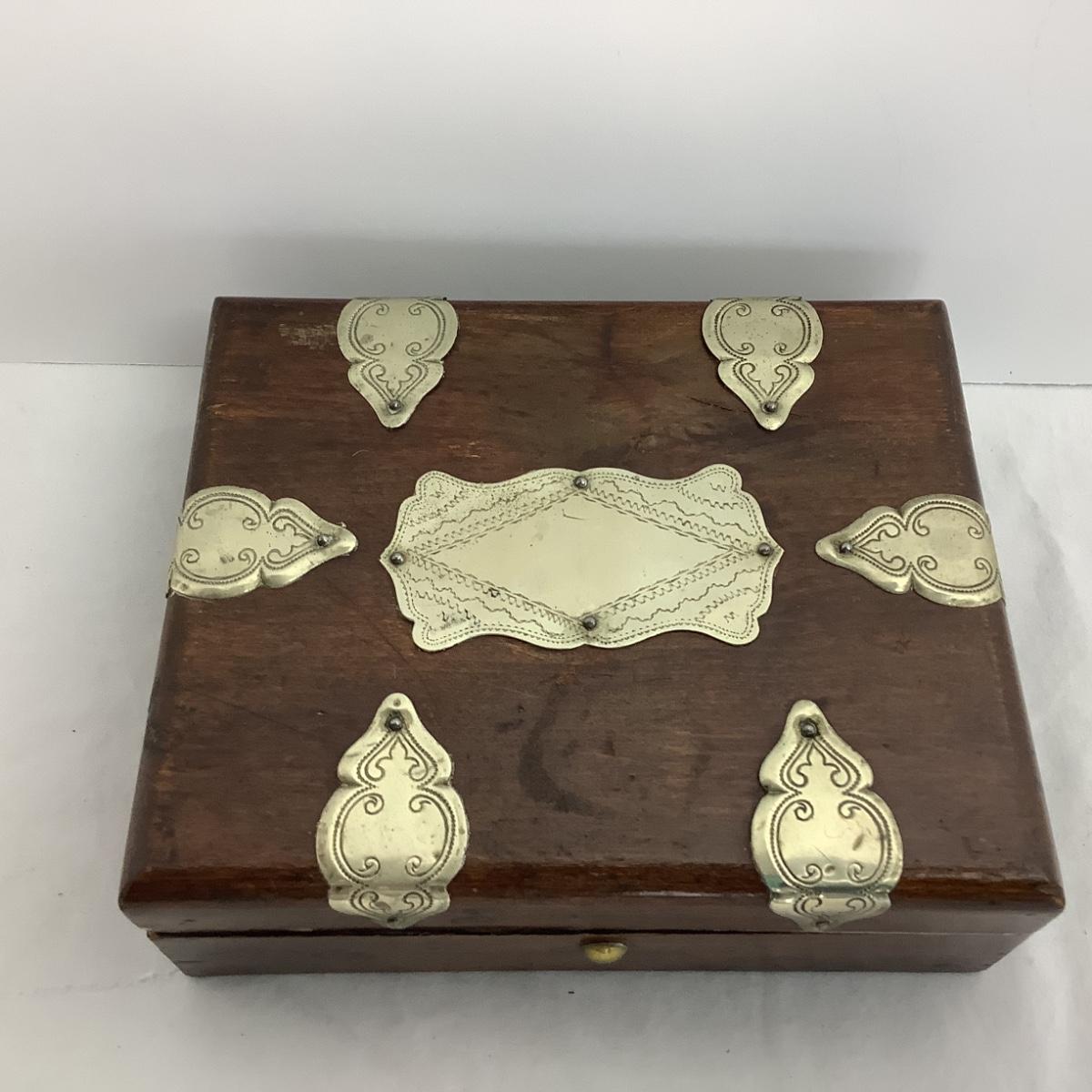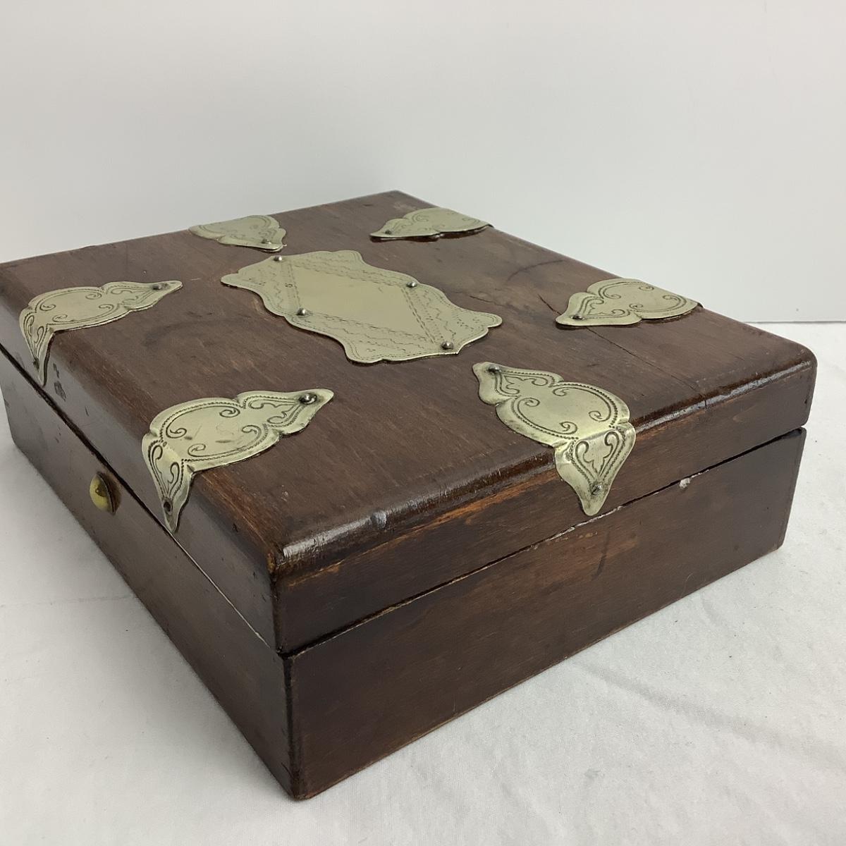 Vintage Wooden Decorative Trinket Box with Silver Adornments -
