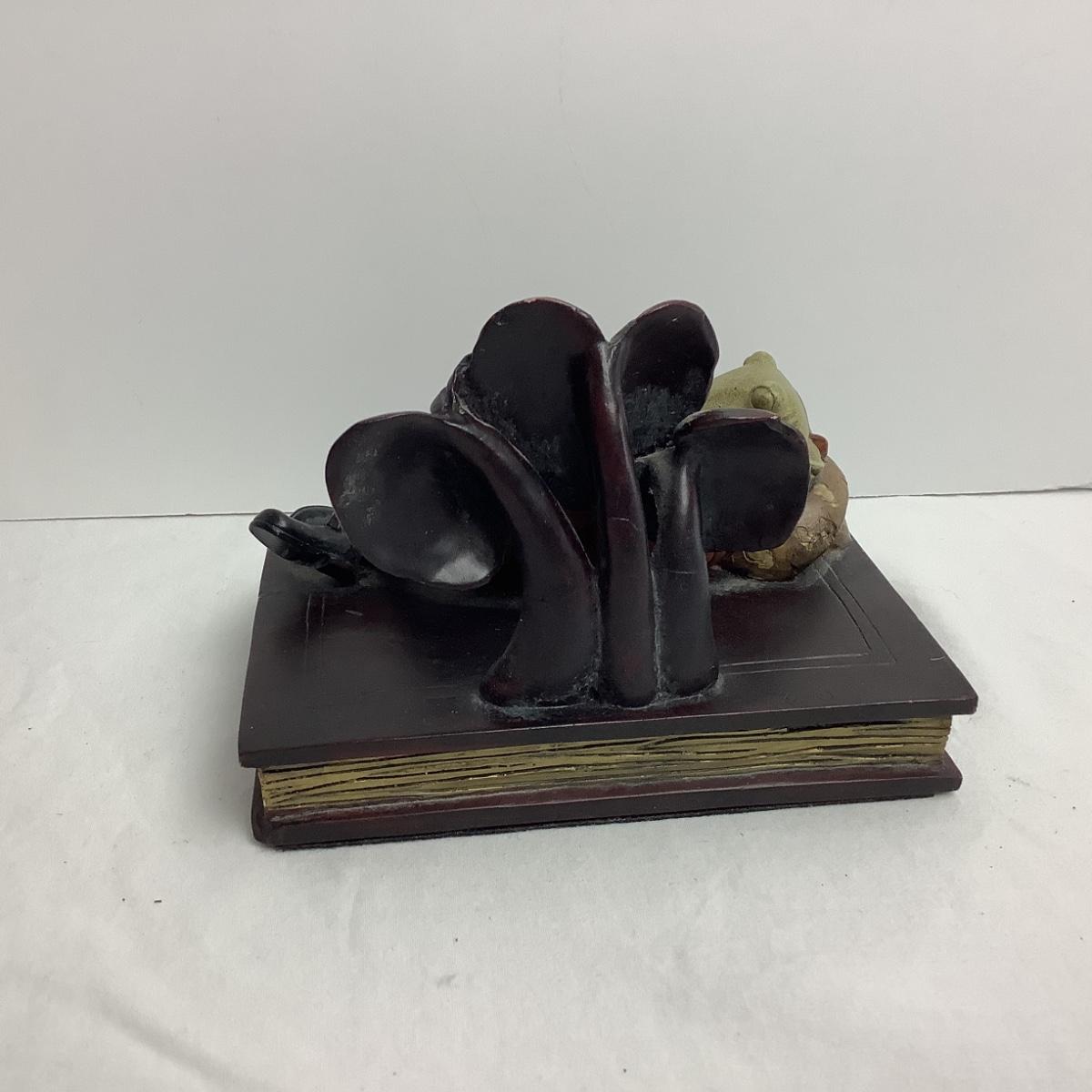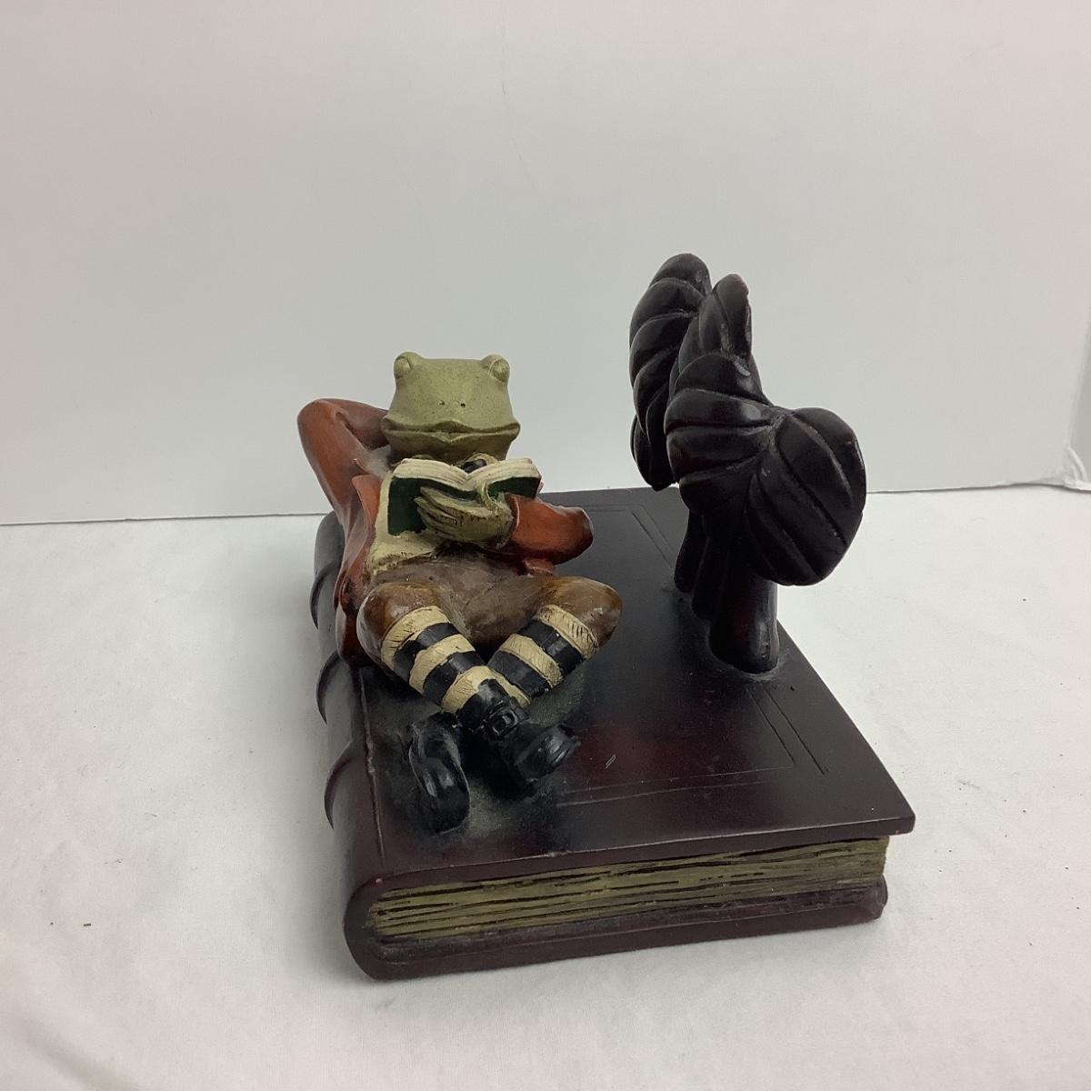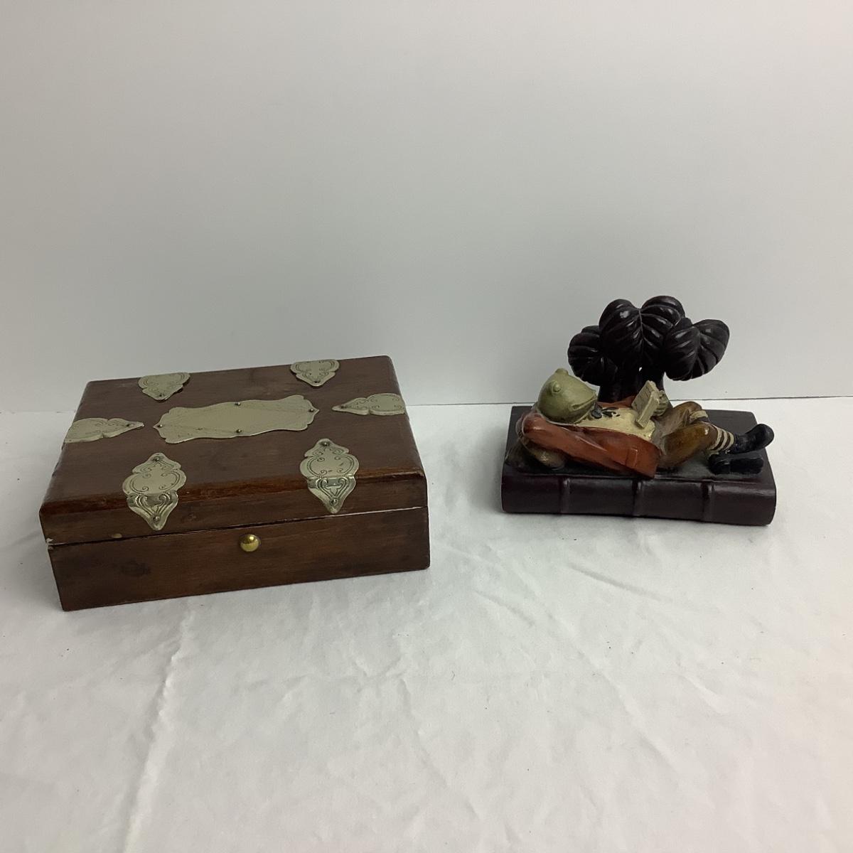 Lot 8522. Vintage Wooden Decorative Trinket Box with Silver Adornments / Single Frog Bookend