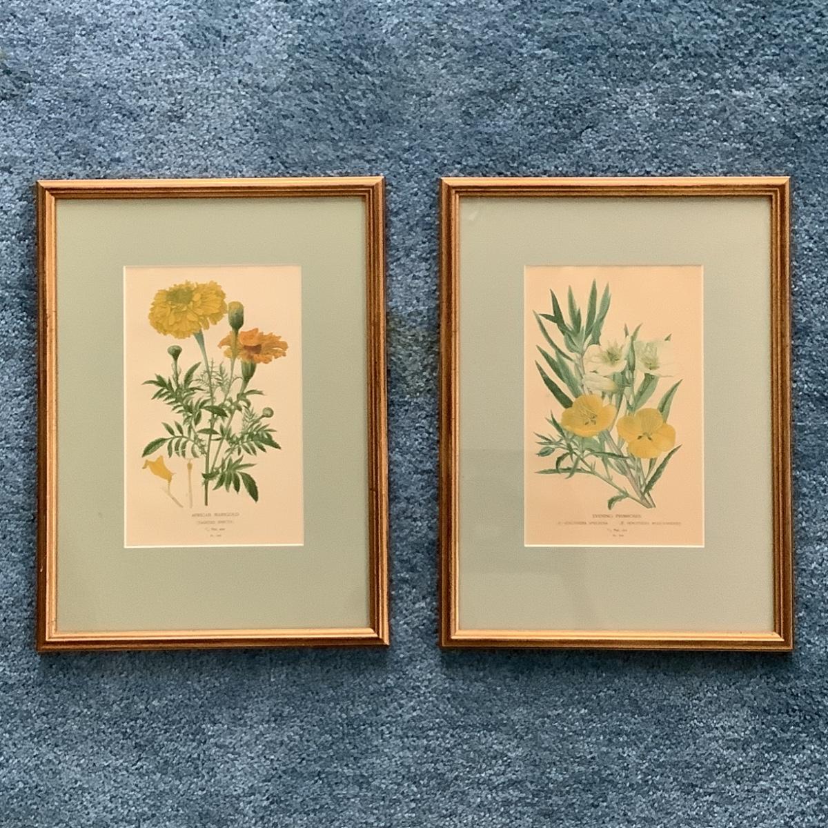 Pair of Botanical Prints - African Marigolds and Evening Primrose