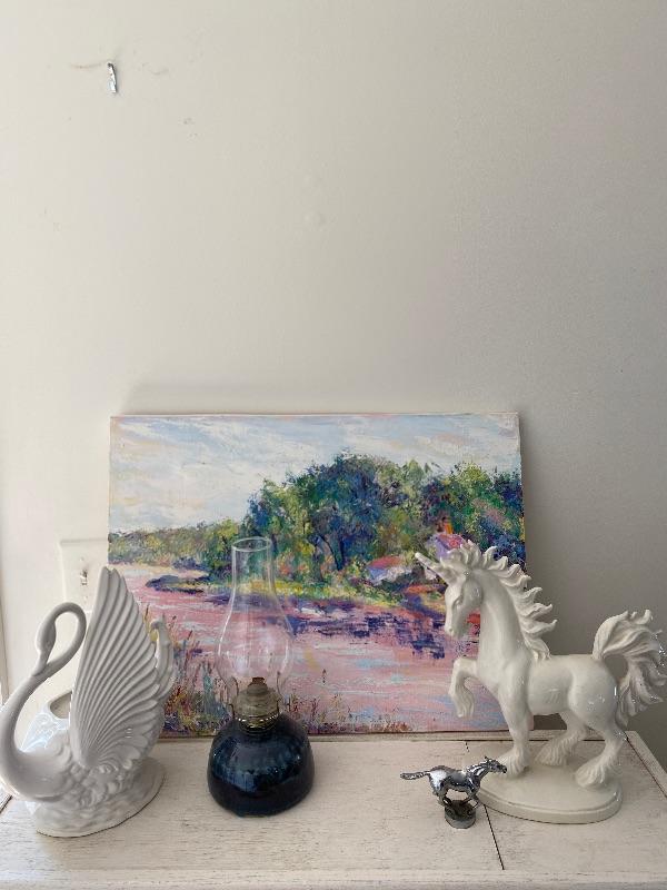 Decorative home Decour light with swan porcelain lamp porcelain unicorn statue and artwork and pottery oil lamp