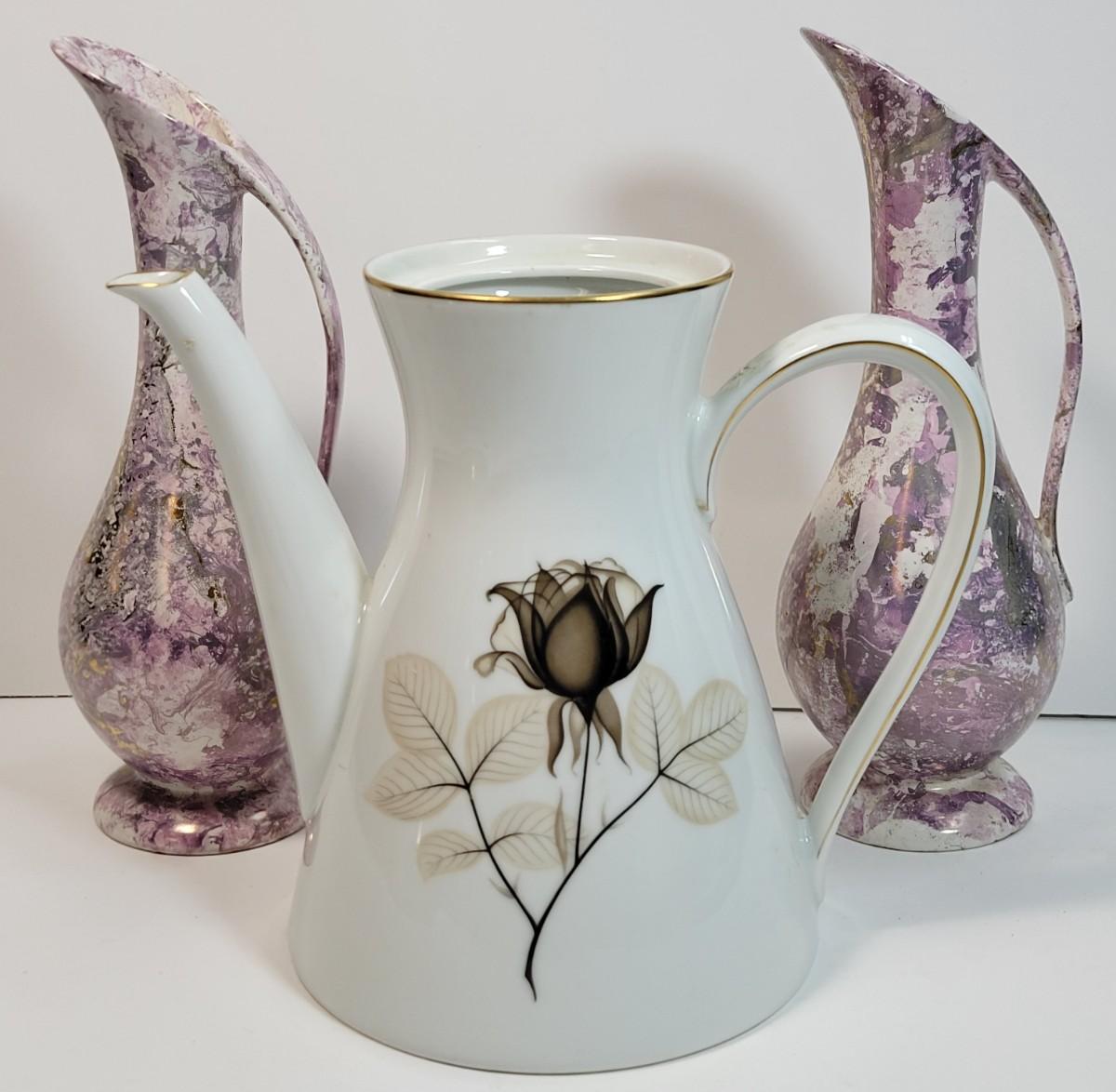 LOT15: Vintage Rosenthal - Germany- Teapot (Missing Top) & 2 Decorative Pitchers/ Vases
