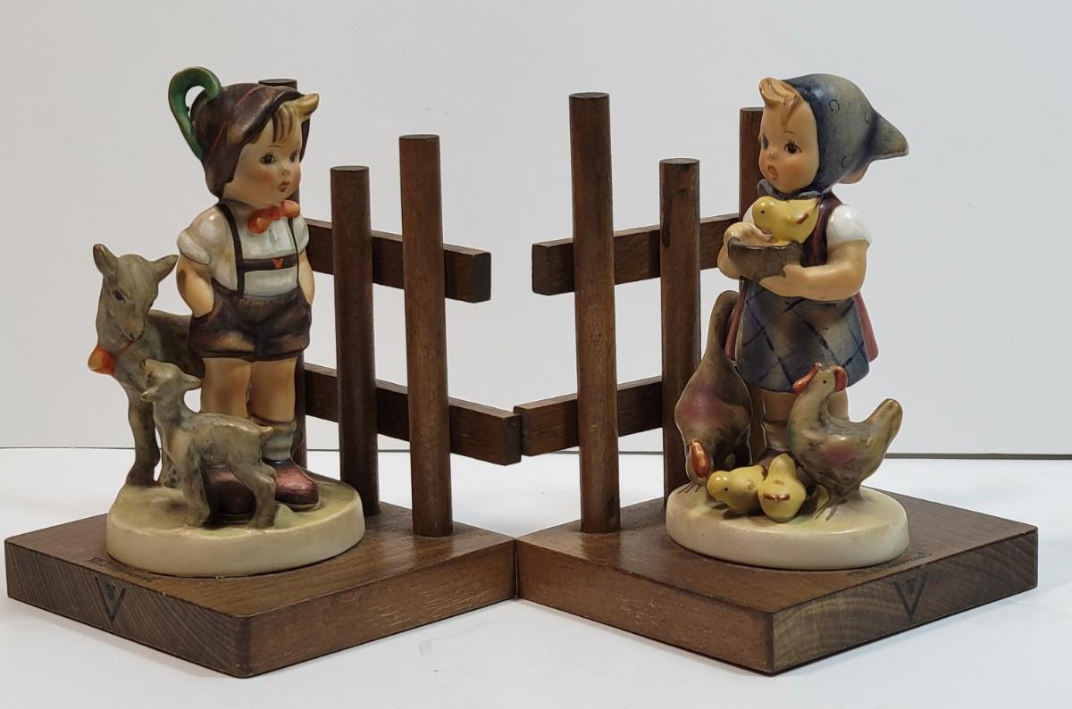 LOT31: Goebel Hummel: Boy with Goats/ Girl feeding chickens Bookends