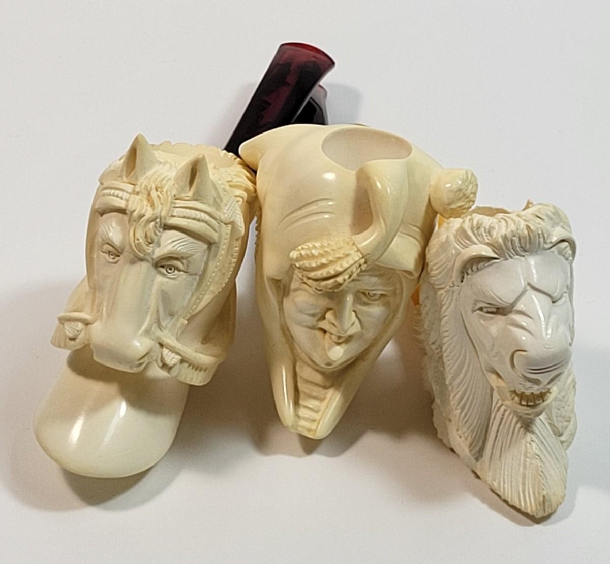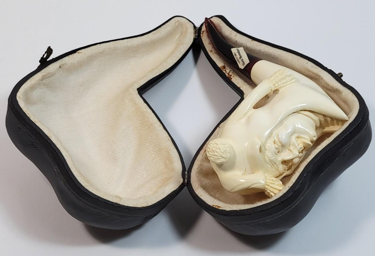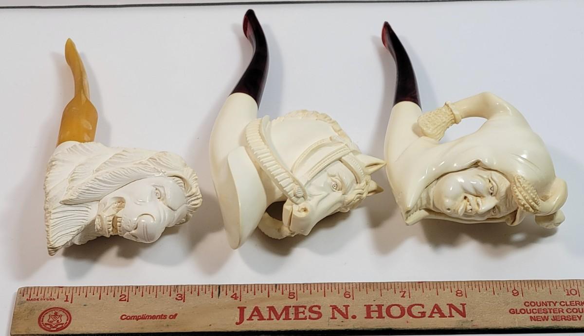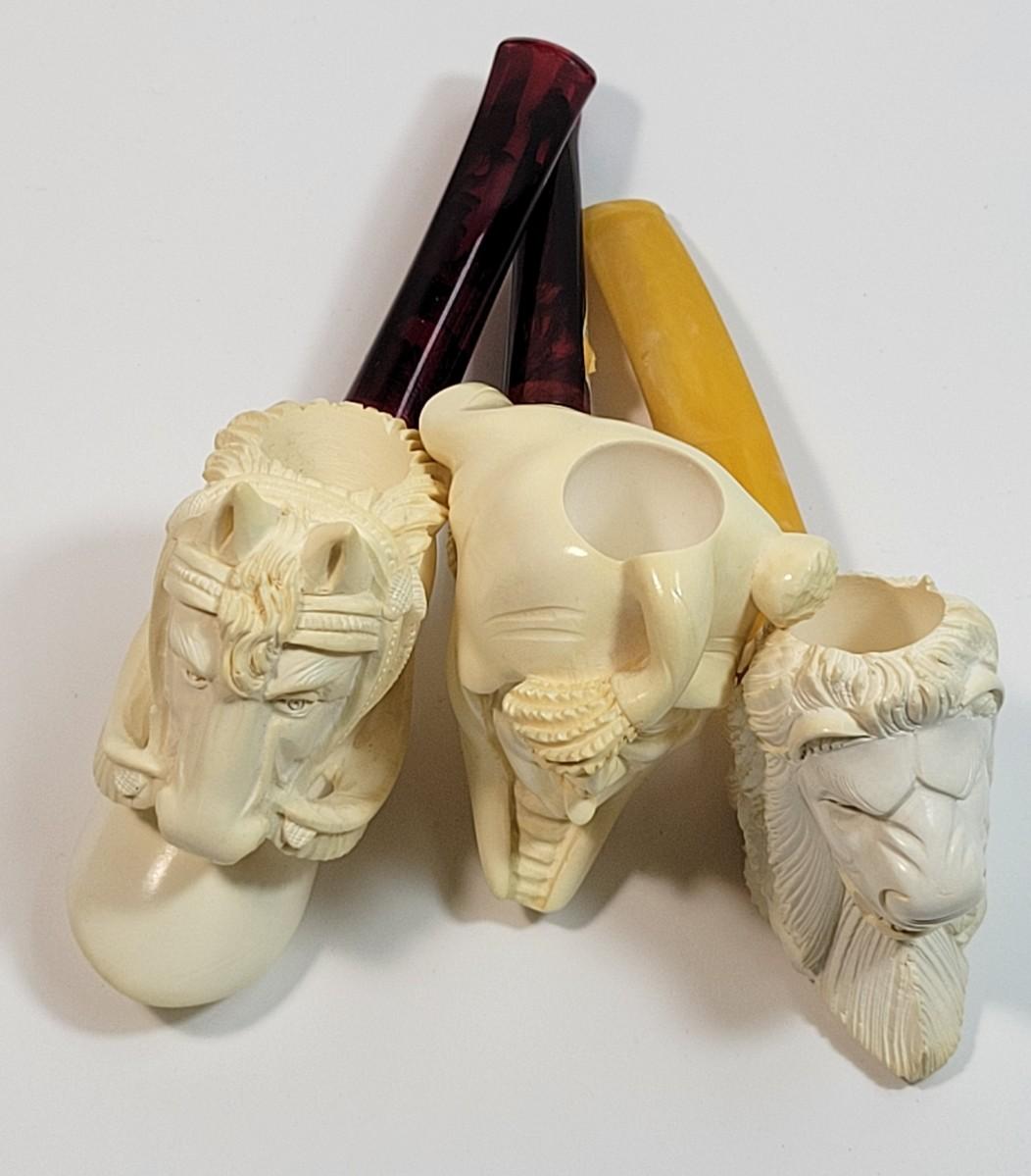 LOT 36: Three Hand Carved Meerschaum Pipes in Cases