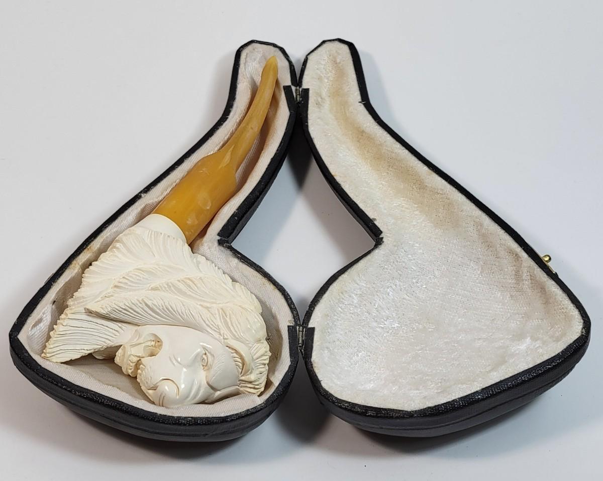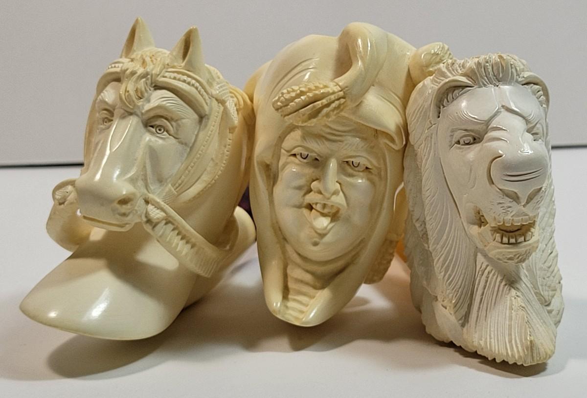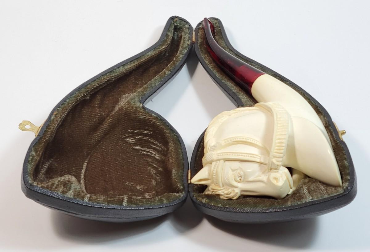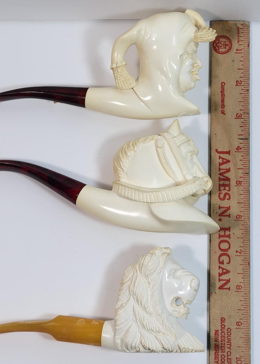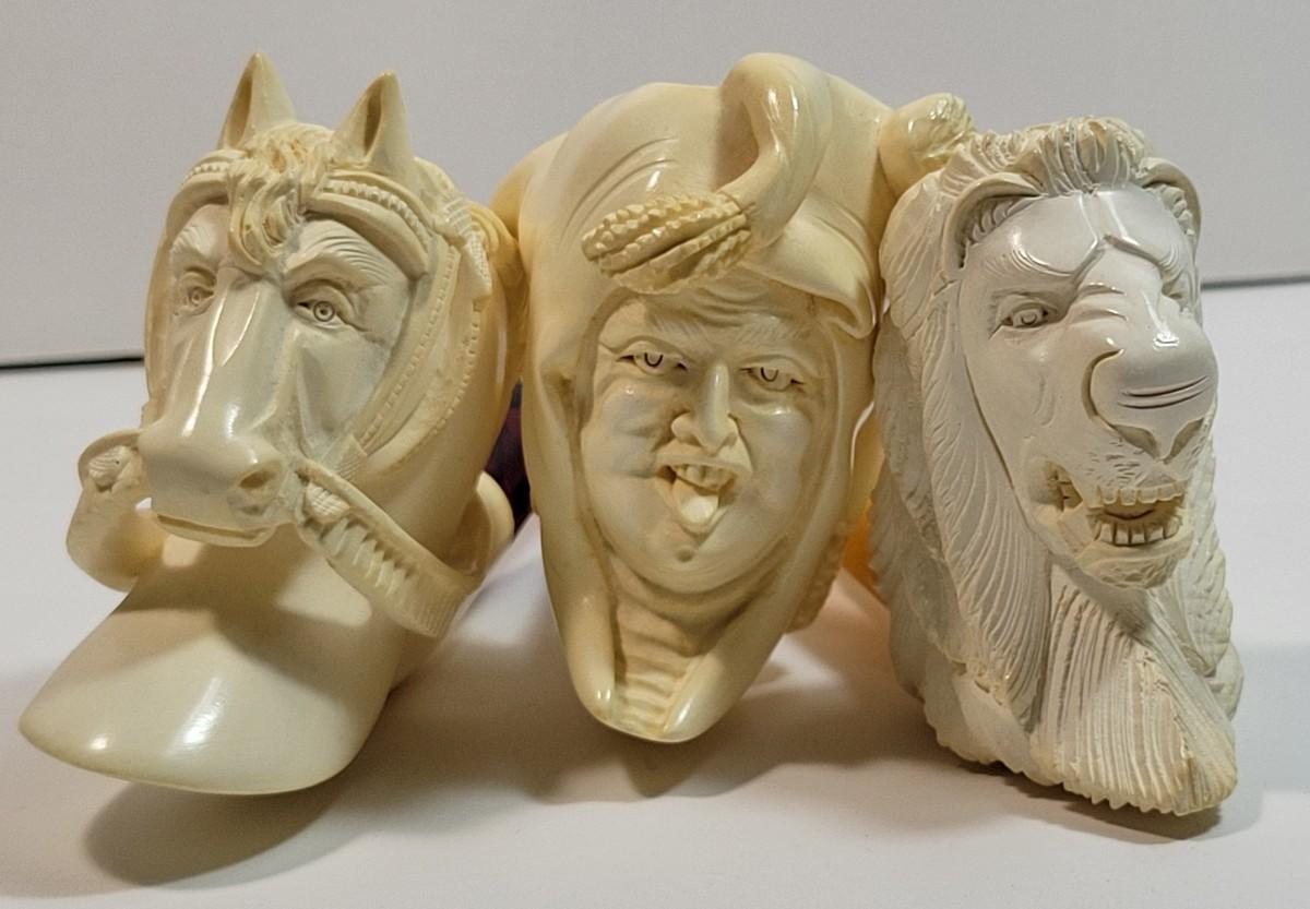 LOT 36: Three Hand Carved Meerschaum Pipes in Cases