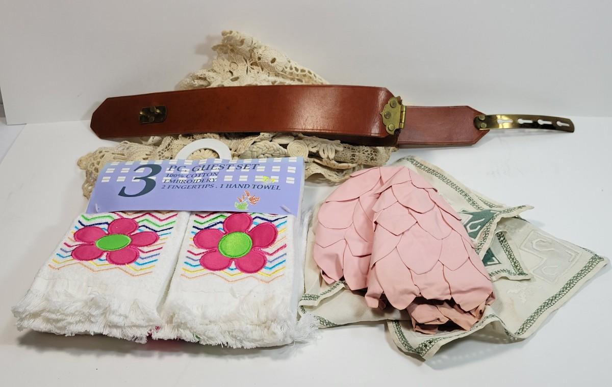 LOT113: Towel Set, Belt, Swim Cap, & Doilies