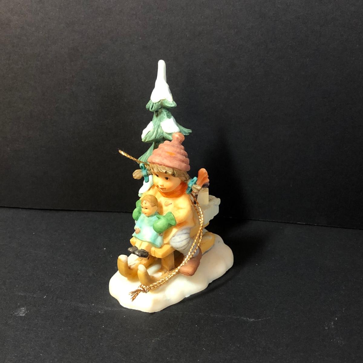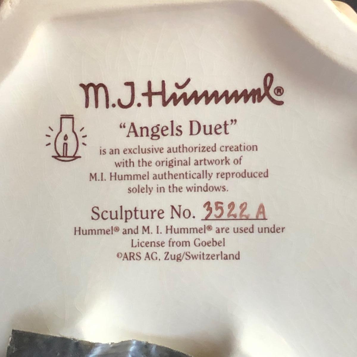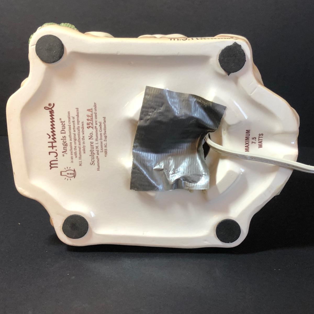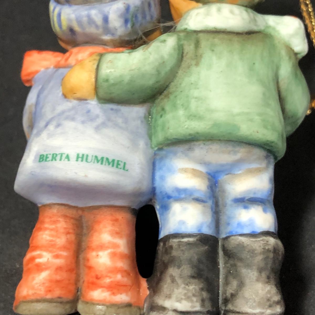 Includes a limited edition "Engel mit Flote" Berta Hummel Christmas 1972 decorative plate, a 1997 Berta Hummel/Goebel "Heavenly Trio" ornament, M.I. Hummel/Goebel ornament of children sledding, "Angels Duet" M.I. Hummel/Goebel church sculpture with a light cord (sculpture 3522A). The light cord may or may not be original as it is duct taped to the bottom.