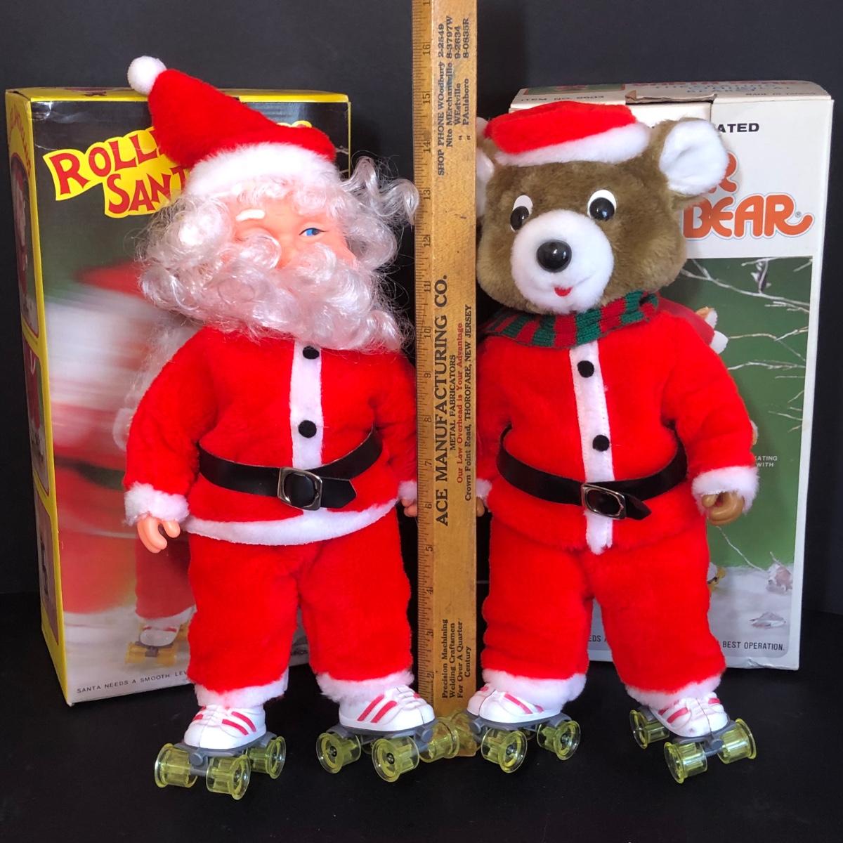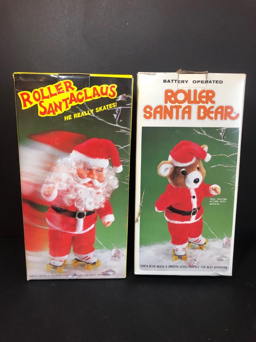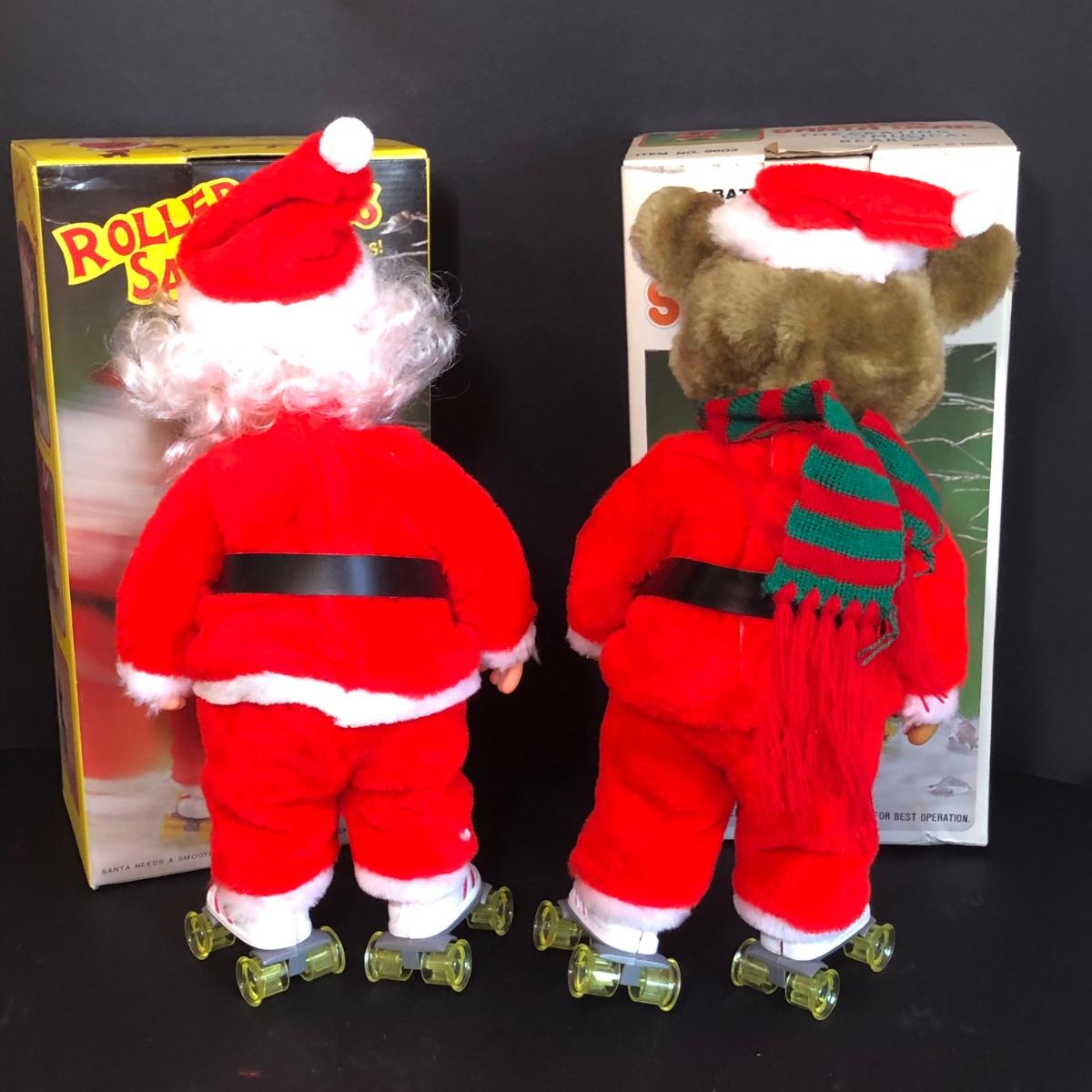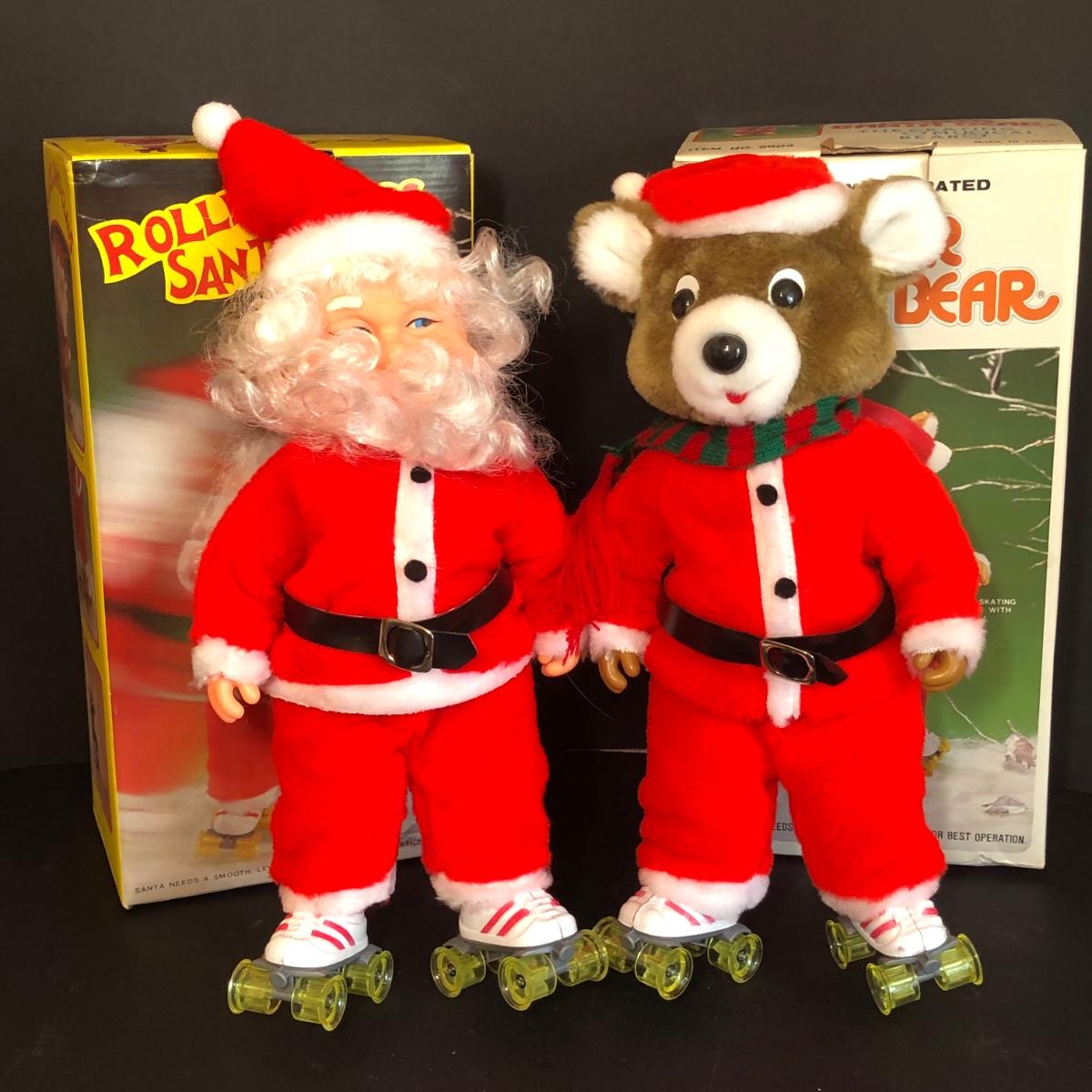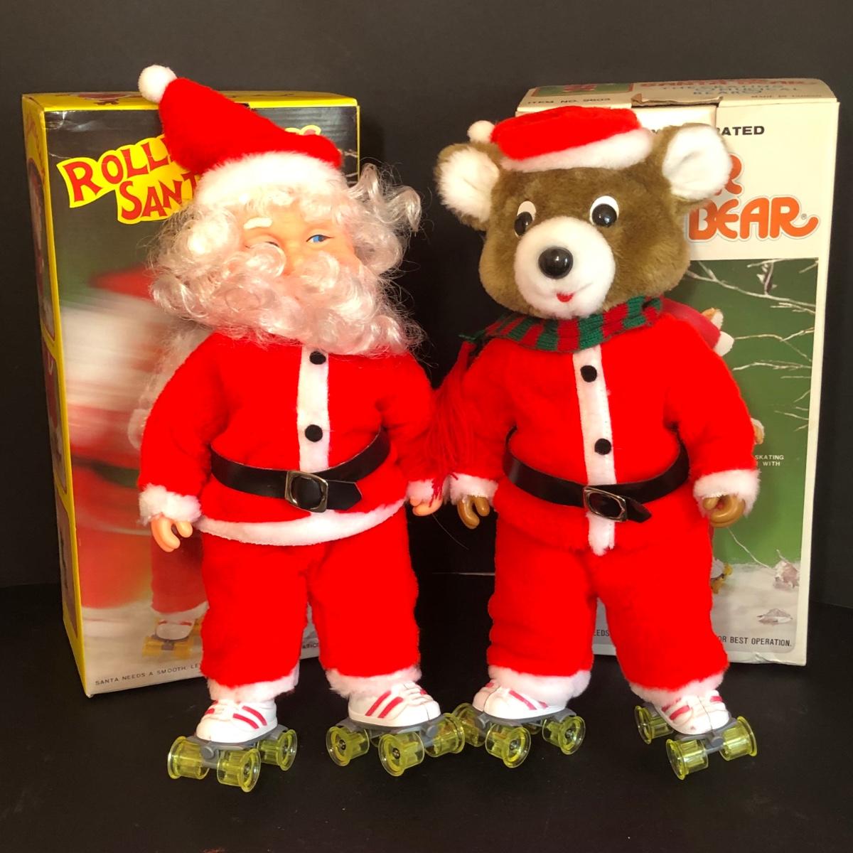 LOT 8M: Vintage Roller Skating Santa & Santa Bear