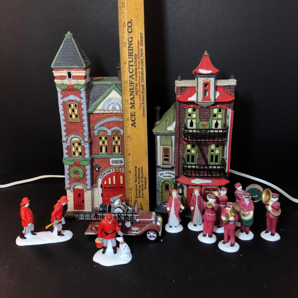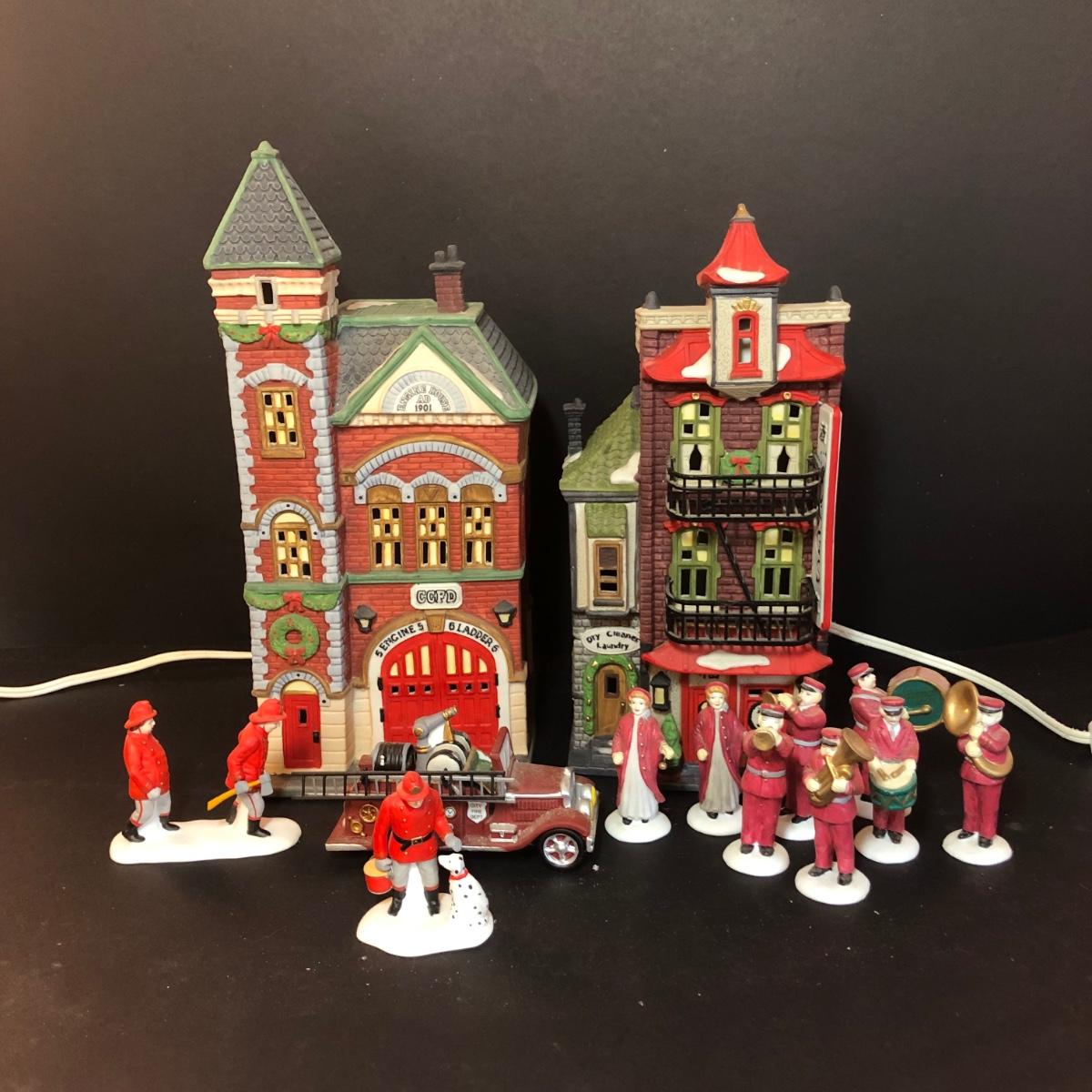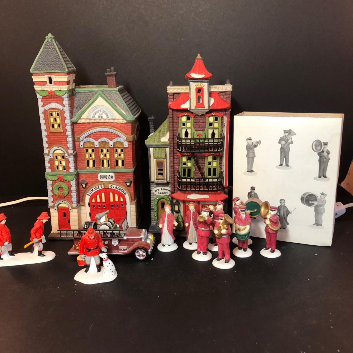 LOT 18M: Vintage Department 56 - 1990 Red Brick Fire Station, 1990 Wong's in Chinatown, "Salvation Army Band