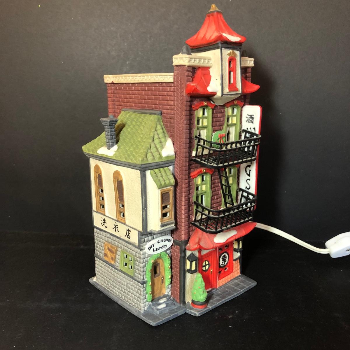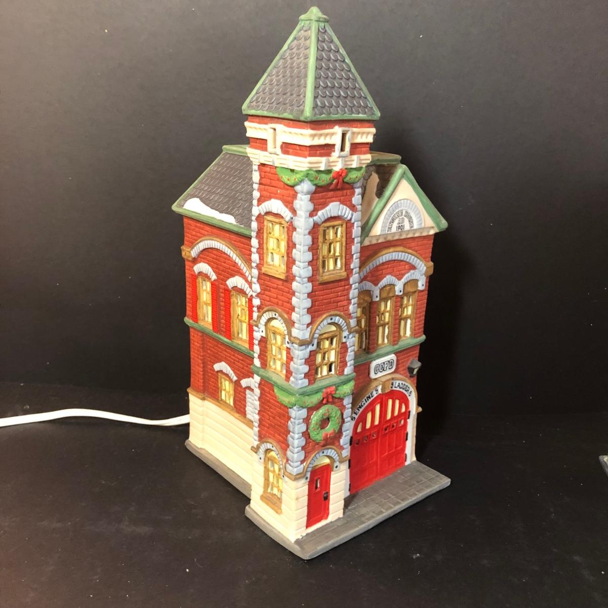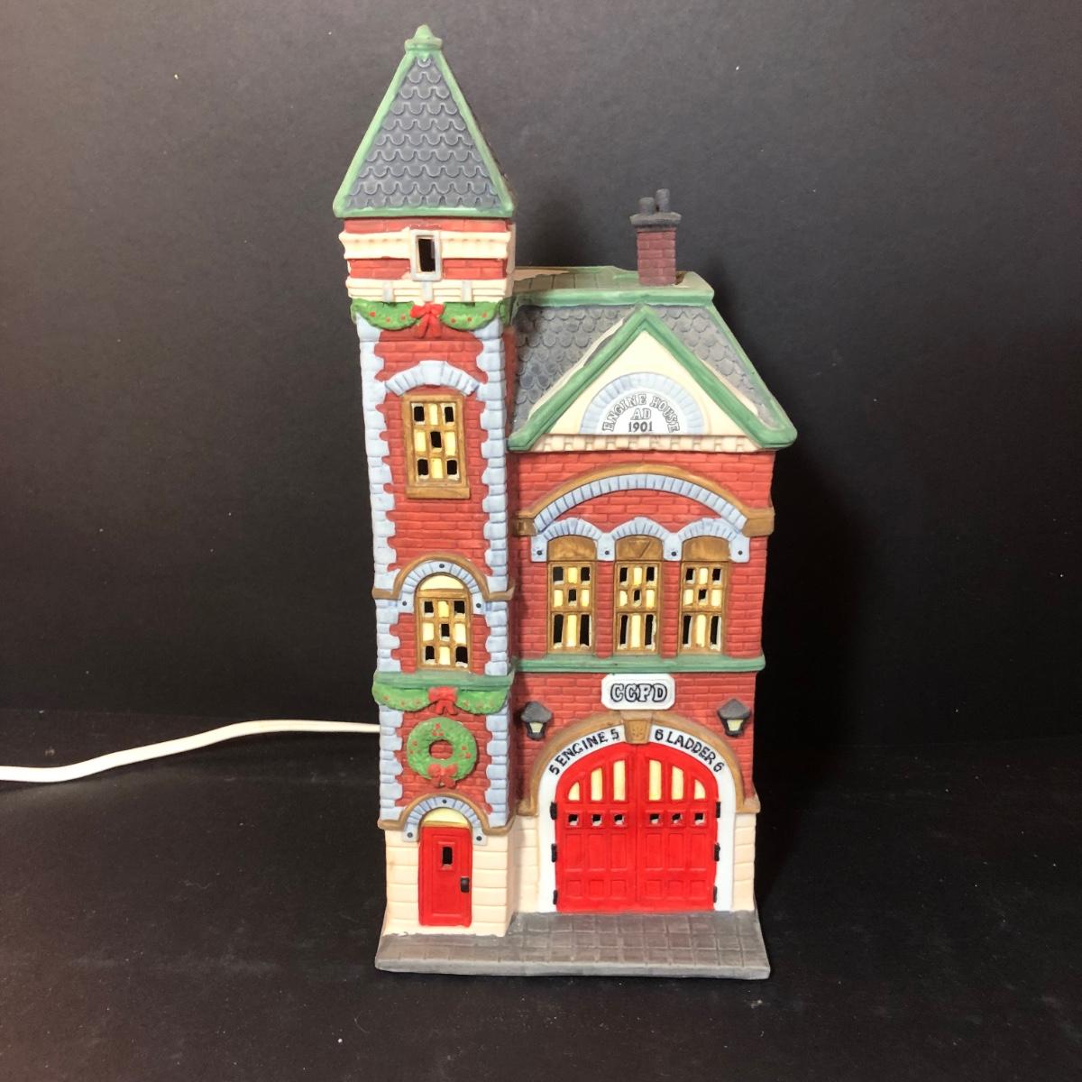 LOT 18M: Vintage Department 56 - 1990 Red Brick Fire Station, 1990 Wong's in Chinatown, "Salvation Army Band