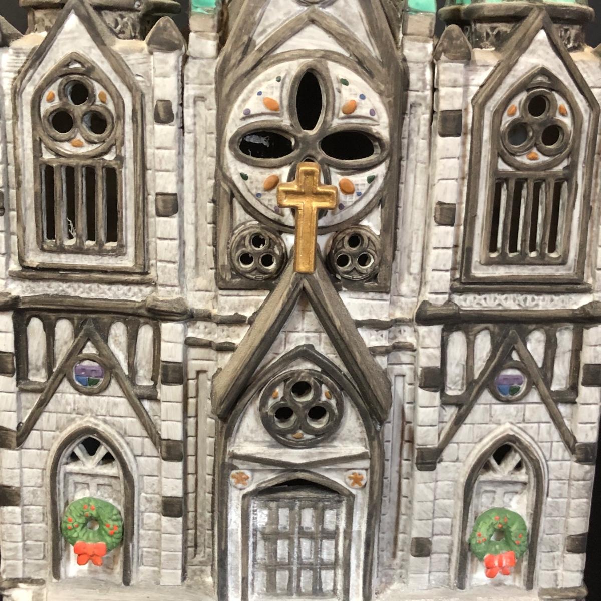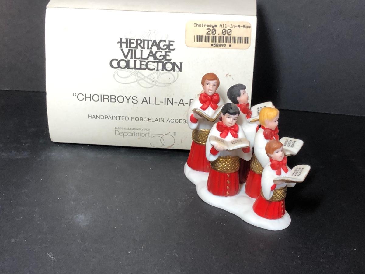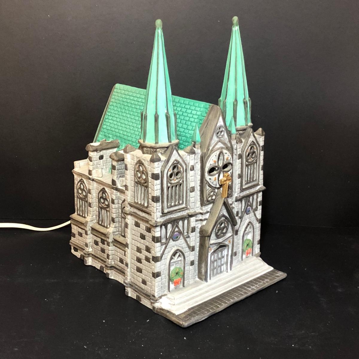 All buildings include light cords. Includes porcelain and metal accessories. Cathedral is part of the Christmas in the City series. Physician and printer buildings are part of the Dickens' Village Series. No boxes included except the box for the "Choirboys All-In-A-Row" box. All items have been on display and every effort has been made to photograph any wear/damage. Boxes may or may not have condition issues due to storage and age.