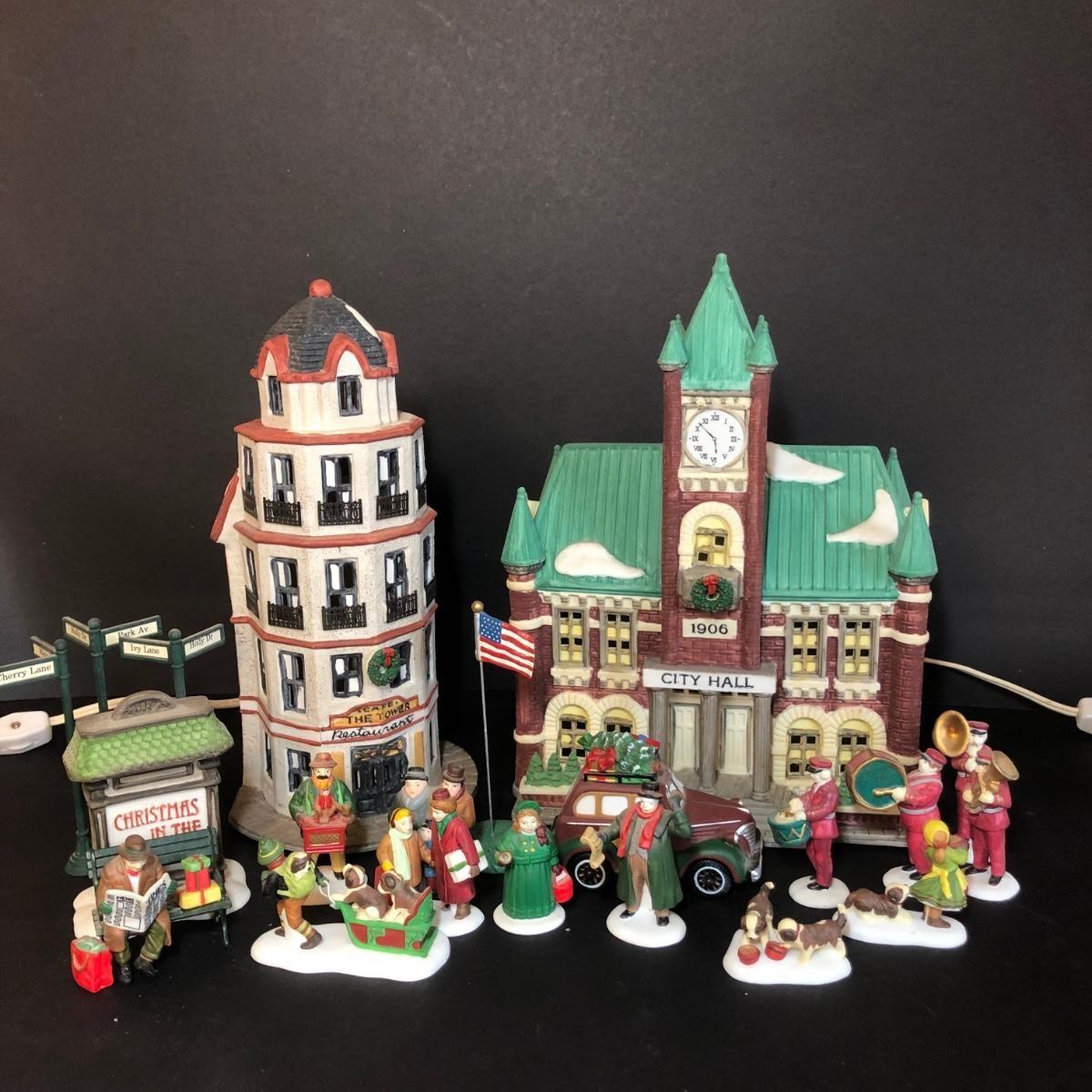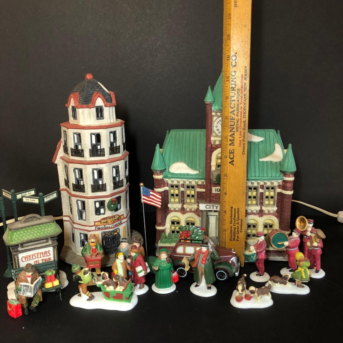LOT 20M: Vintage Department 56 - 1987 Tower Cafe, 1988 City Hall, "Rest Ye Merry Gentleman" Set & More Accessories