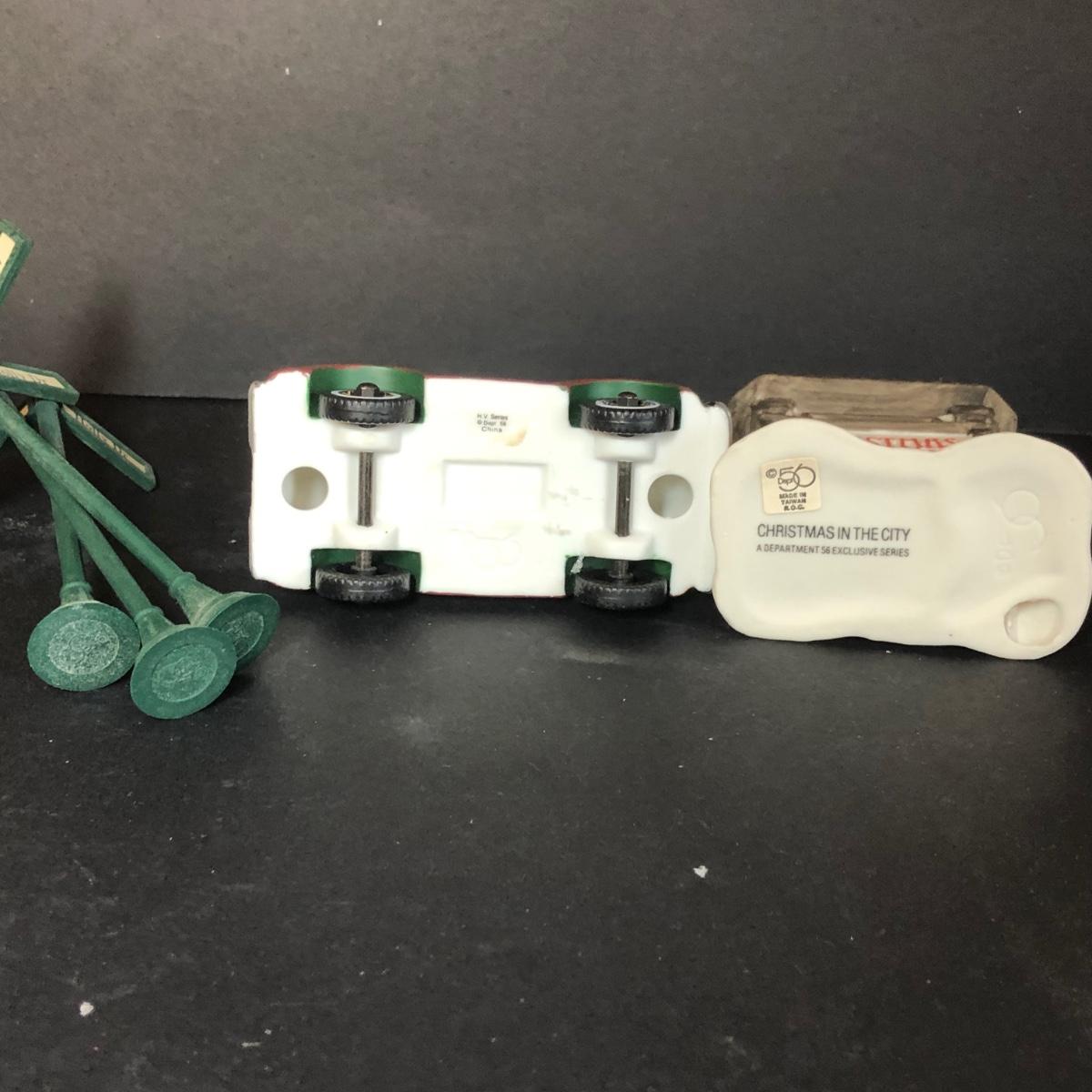 Both buildings include light cords and are part of the Christmas in the City series. Includes several small figurines from Department 56 and one Cannon Valley miniature flagpole. All items have been on display and every effort has been made to photograph any wear/damage. Boxes included only if pictured. Boxes may or may not have condition issues due to storage and age.