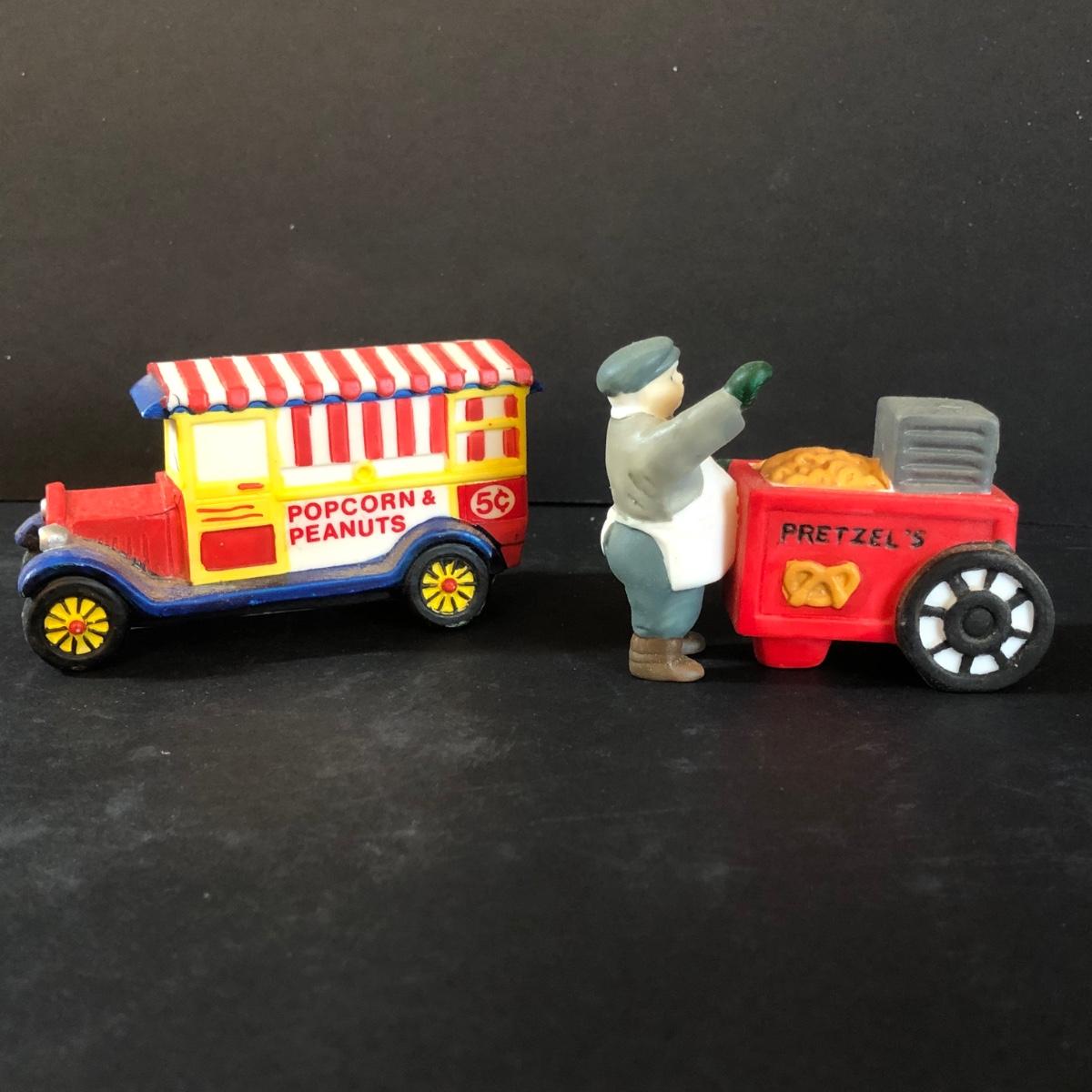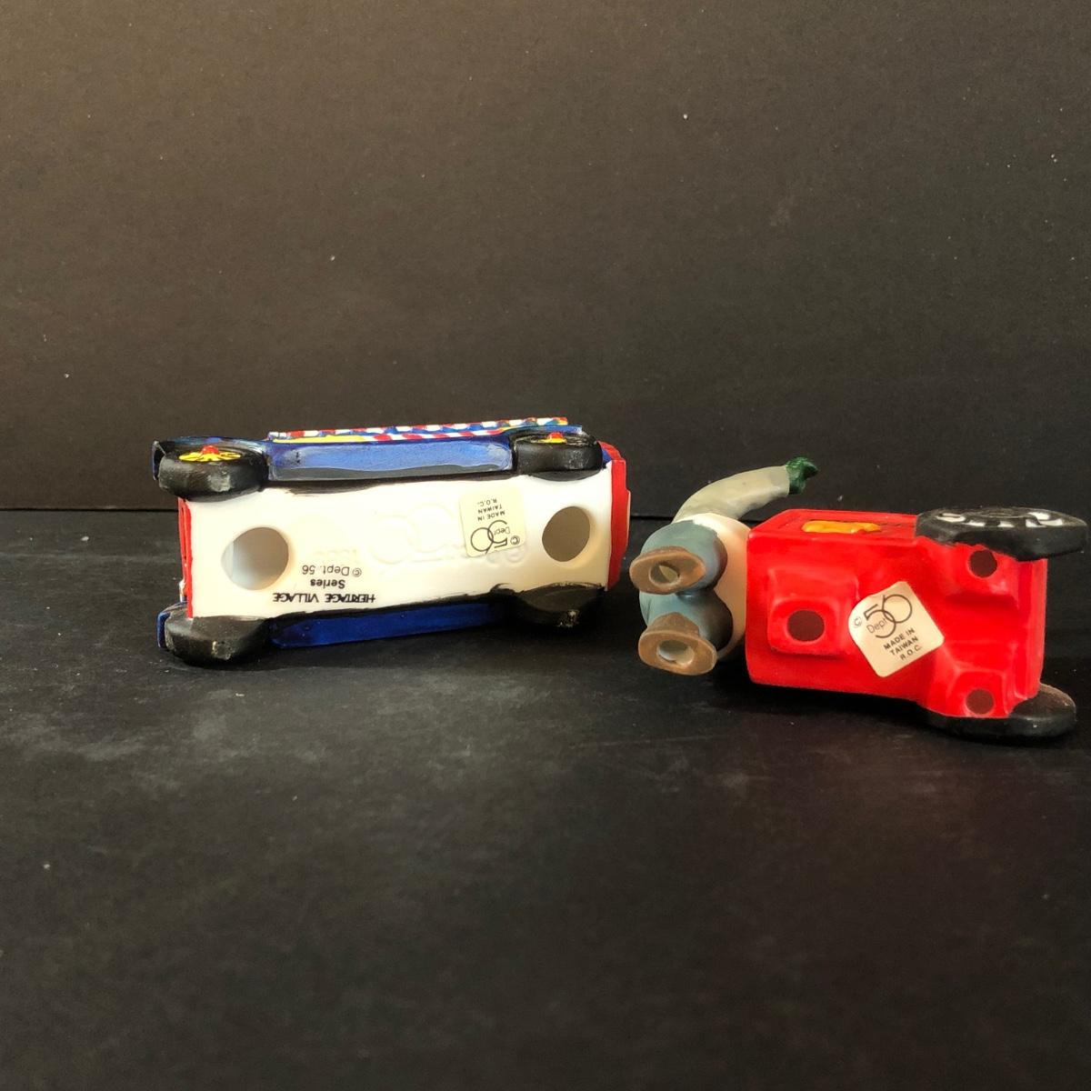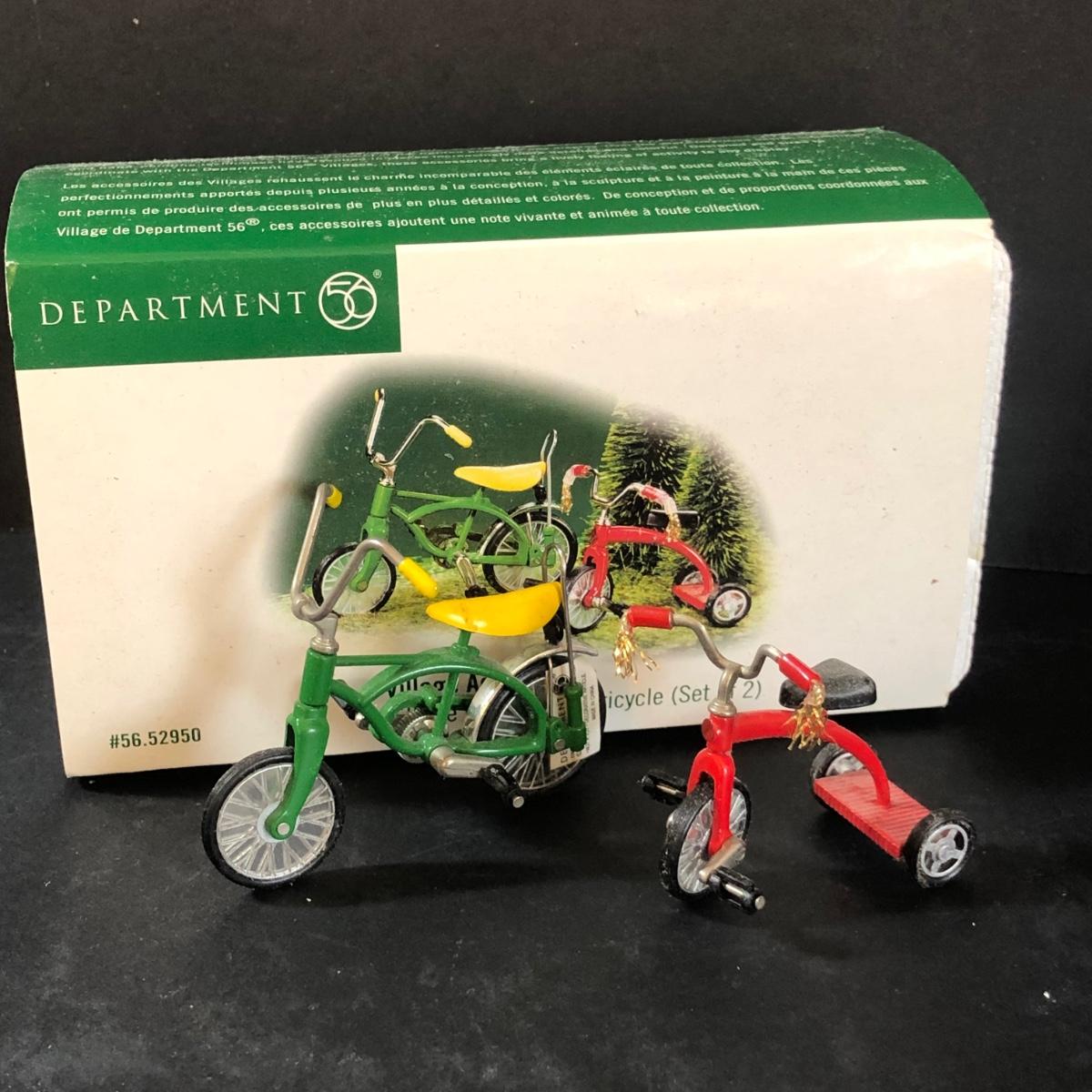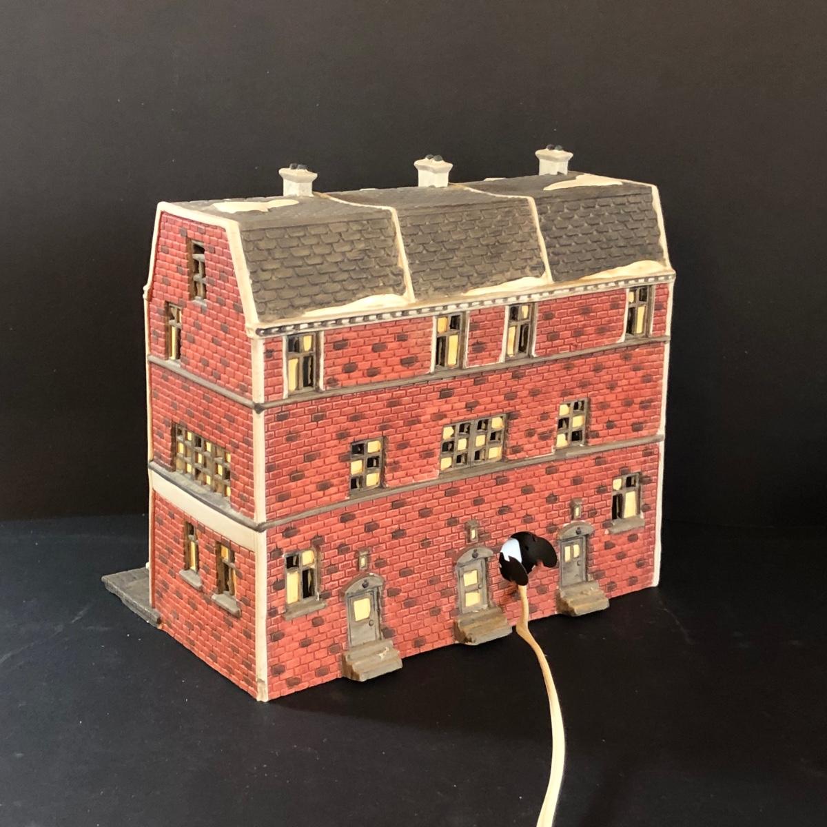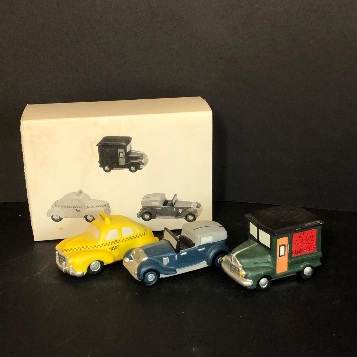LOT 23M: Vintage Department 56 - 1987 Tower Cafe, 1987 Sutton Place Rowhouse, 1987 The Palace Theatre, Metal Tricycle Set, Porcelain Automobile Set, & More Dept 56 Accessories