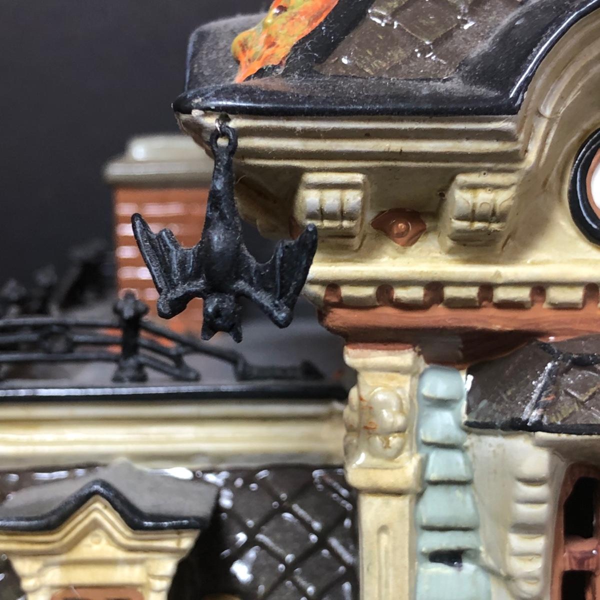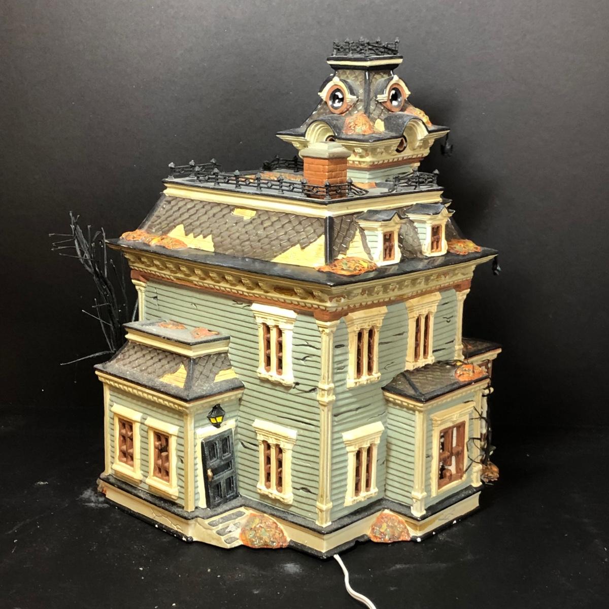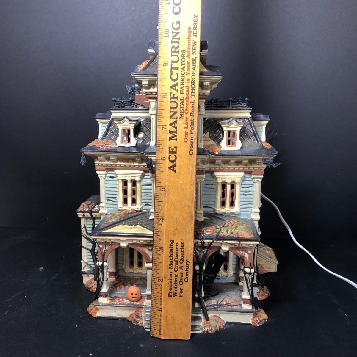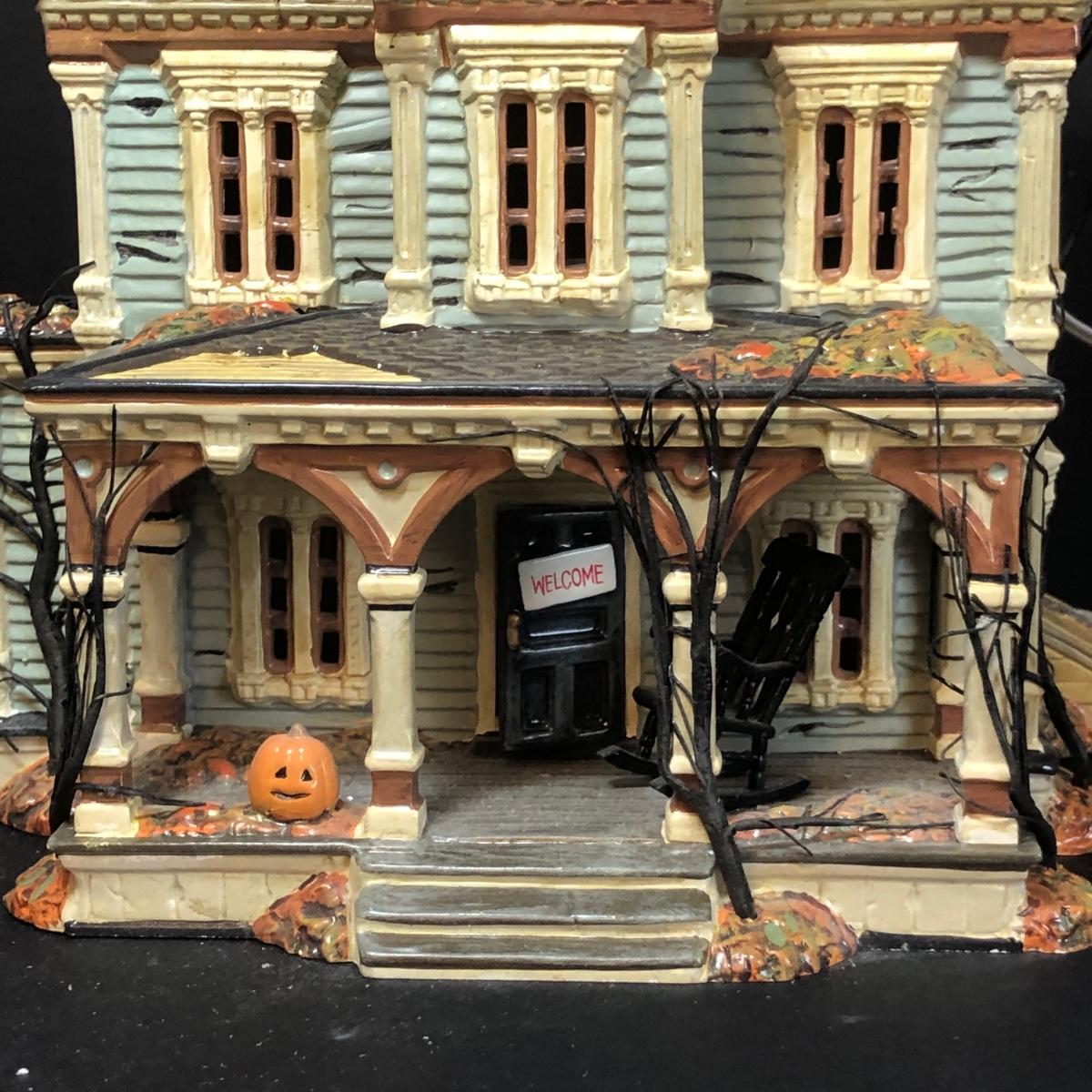 Grimsly Manor includes light and sound box, which has different options for the sound part. Both lights and sounds work.. No box is included with the Halloween House. Two full sets of Village Wrought Iron Fence extensions included along with a gate, horse hitches, and extras. All items have been on display and every effort has been made to photograph any wear/damage. Boxes only included if pictured. Boxes may or may not have condition issues due to storage and age.