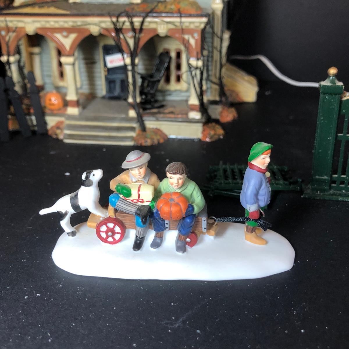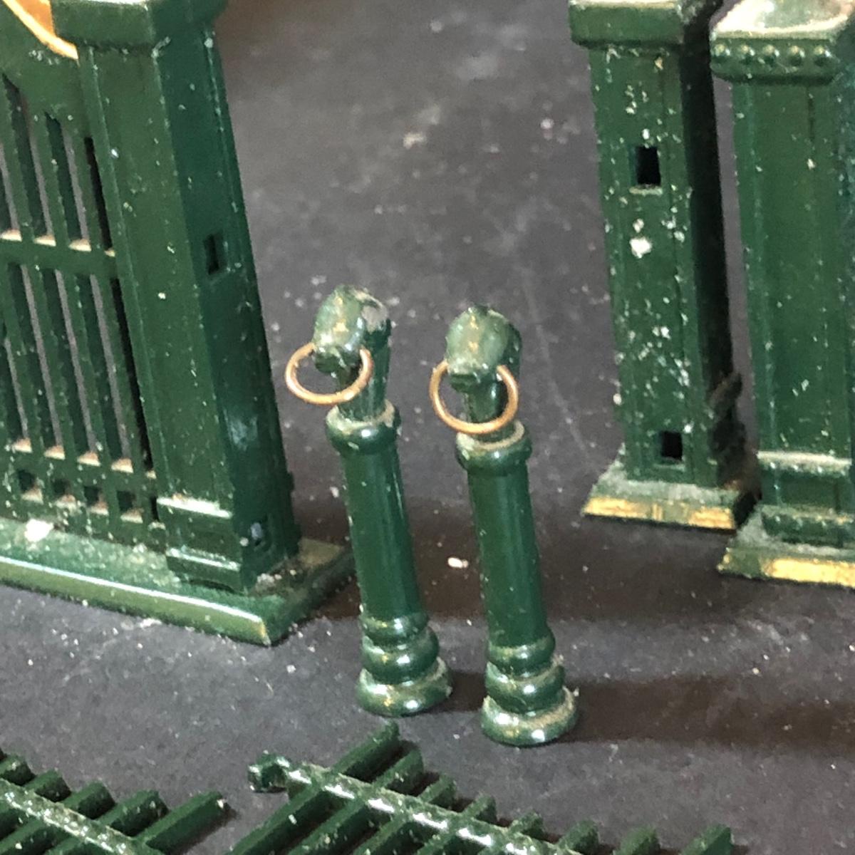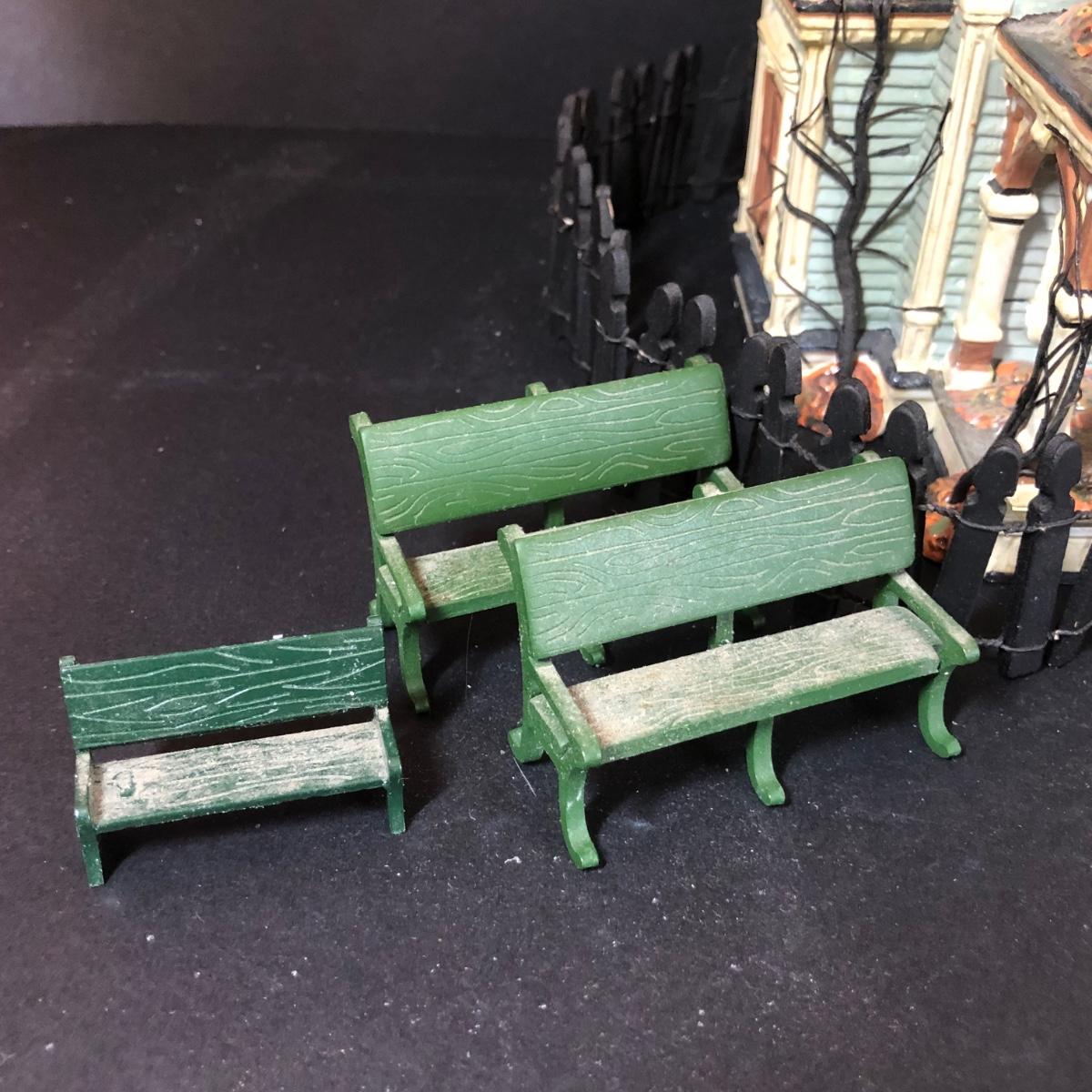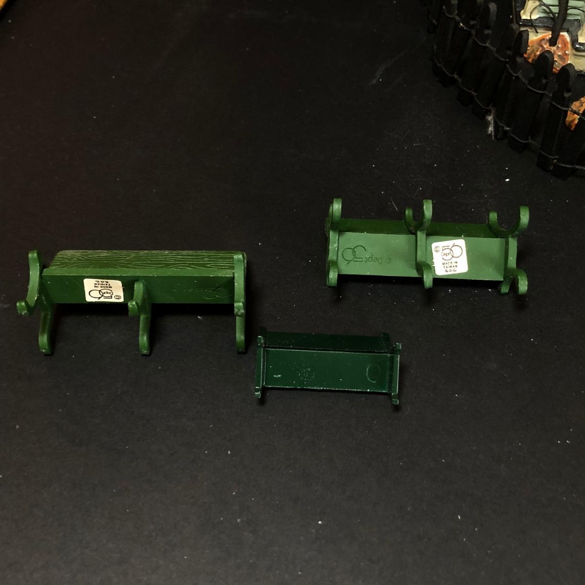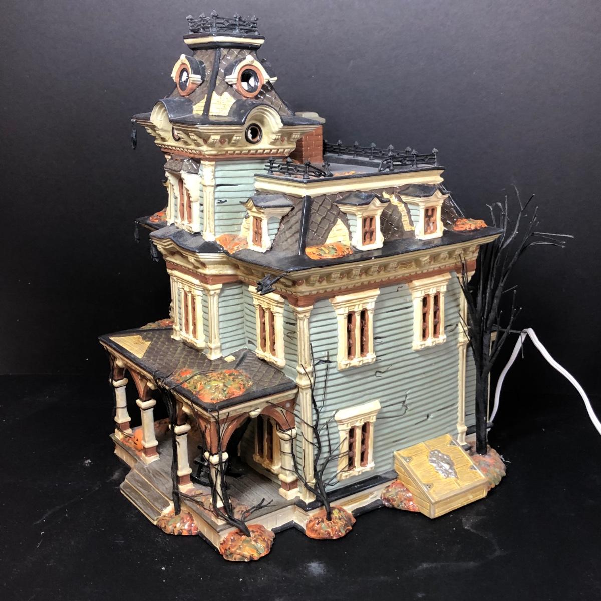 Grimsly Manor includes light and sound box, which has different options for the sound part. Both lights and sounds work.. No box is included with the Halloween House. Two full sets of Village Wrought Iron Fence extensions included along with a gate, horse hitches, and extras. All items have been on display and every effort has been made to photograph any wear/damage. Boxes only included if pictured. Boxes may or may not have condition issues due to storage and age.