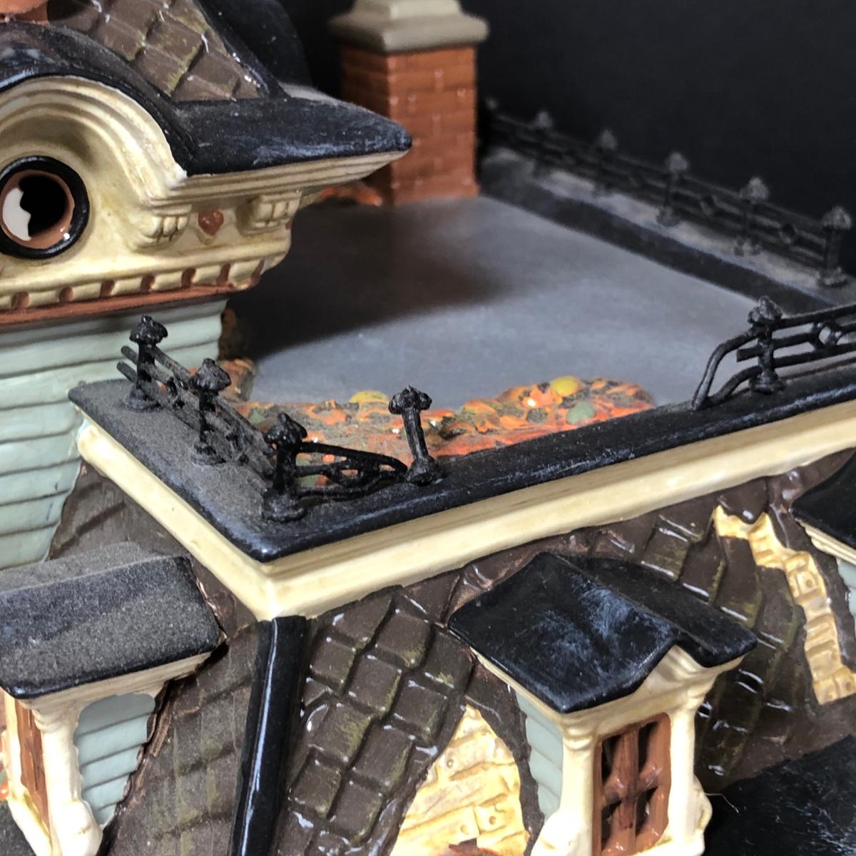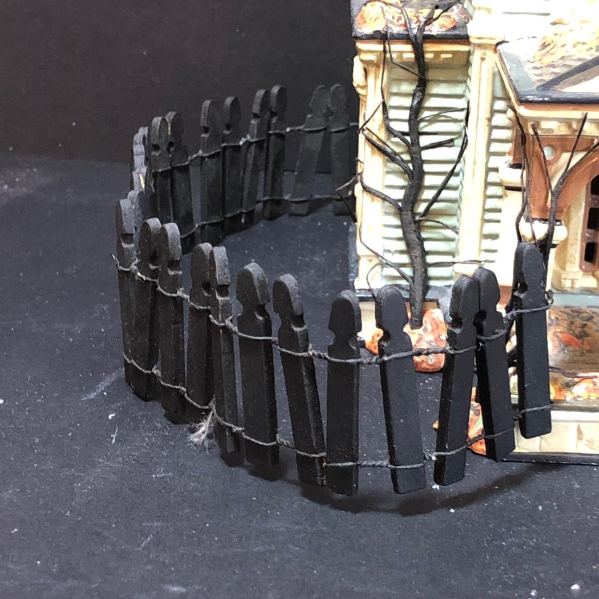 LOT 24M: Vintage Department 56 Snow Village Halloween Grimsly Manor & Wrought Iron Fence Pieces