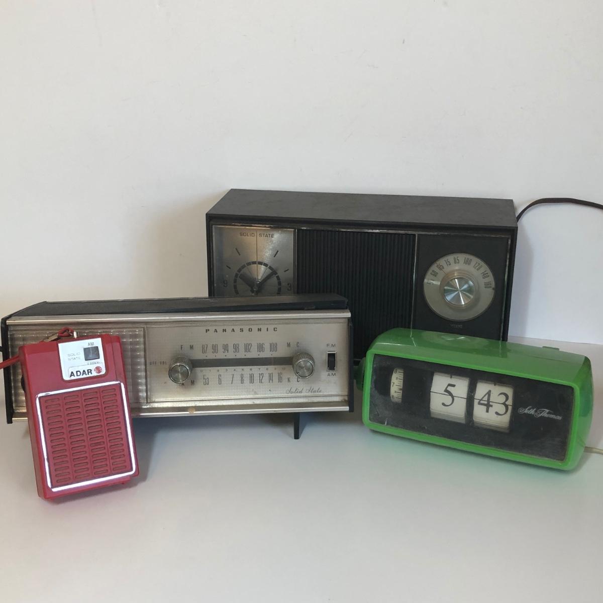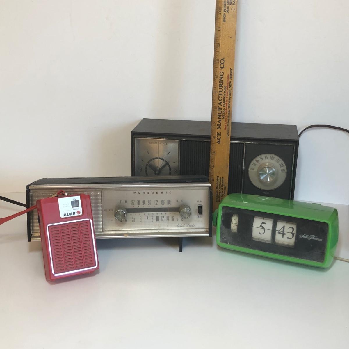 Includes an electric clock radio, an electric clock, an electric radio, and a battery operated radio. Untested.