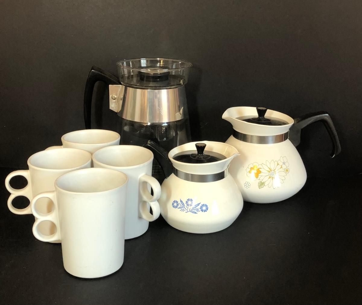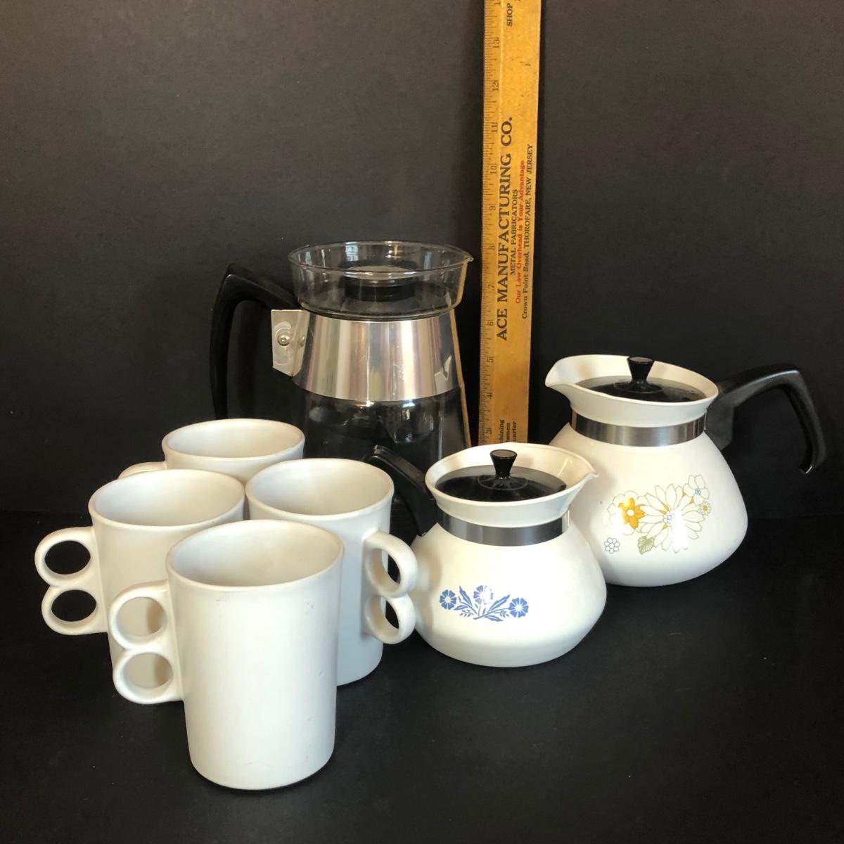 LOT 32M: Corning Ware Coffee & Tea Pots, Bennington Potters Mugs